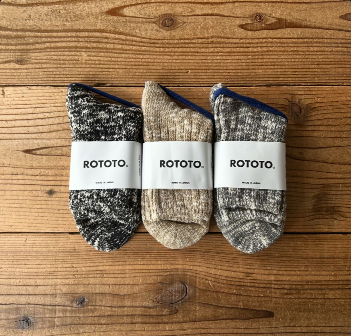 RoToToのソックスは国内一の生産量を誇る靴下産地 奈良県・広陵町を中心とした工場で生産しており、職人の方々と共に取り組み、話し合う事で生まれる現場(工場)での「ものづくり」を大切にしています。あまり知られてはいませんが靴下編み機には実は沢山種類があり、編み機によって編めるソックスは様々です。世界でも台数の限られた珍しい特殊編み機や、昔ながらのコンピューター化されていない旧式編み機、また最新鋭の編み機などを使い分け、無数にある糸の中からイメージする履き心地に適した糸を選定、工場で直接職人の方と話し合いながら何度も細やかな調整を経てひとつのソックスを作り上げていきます。編み機・糸・人が一つとなってはじめてRoToToのソックスは出来上がります。