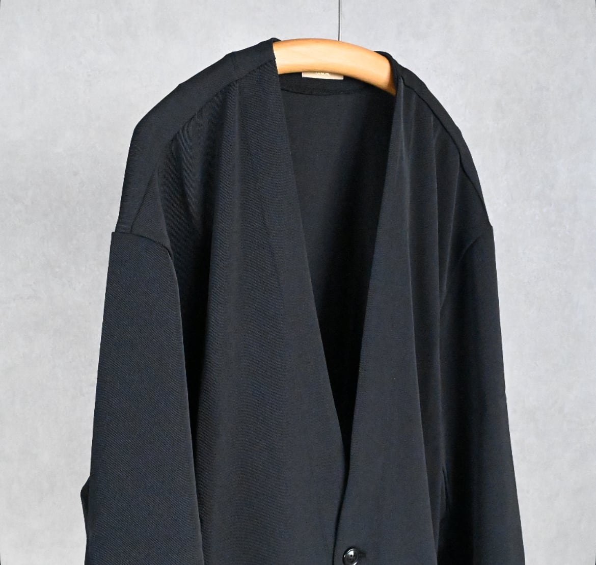 《25AW》【LA MOND】TWILL TWIST CARDIGAN CENTER SEAM PANTS ラモンド ストレッチツイル ノーカラーカーディガンジャケット & センターシームパンツ※セットアップ販売 | comoda.com
