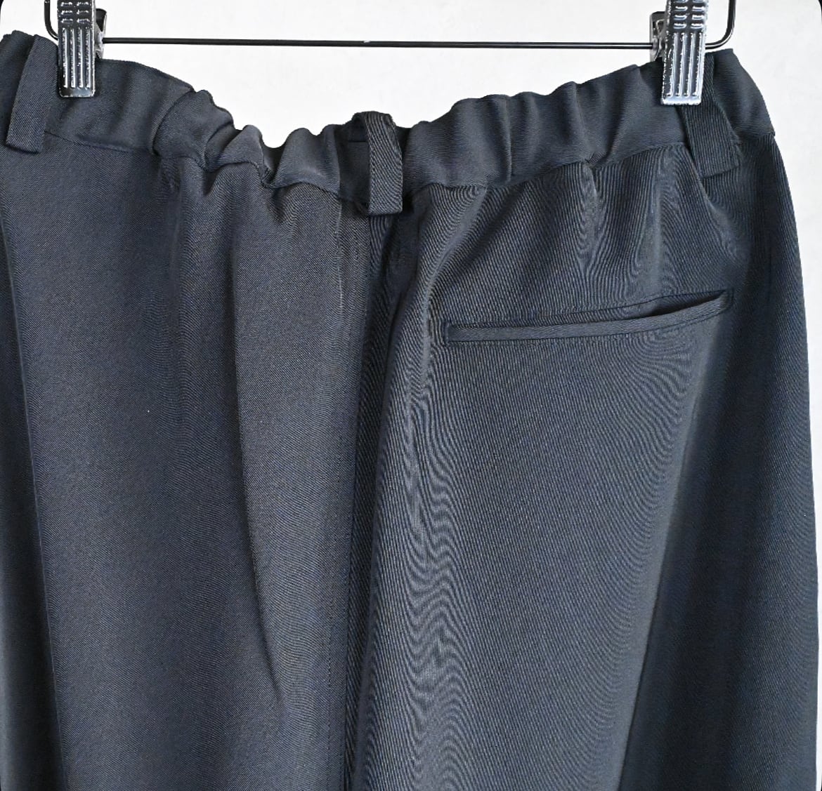 ジャケットはボタンを止めずにラフに着ることをイメージしてデザイン。パンツはワイドシルエットながら、生地のオチ感により張り過ぎず使いやすいシルエットです。パンツのセンターにシームがあるデザインもさりげないアクセントに。