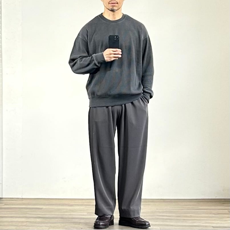 実際トロミのある落ち感や袖リブによって生まれるたるみがニットを彷彿させまん?