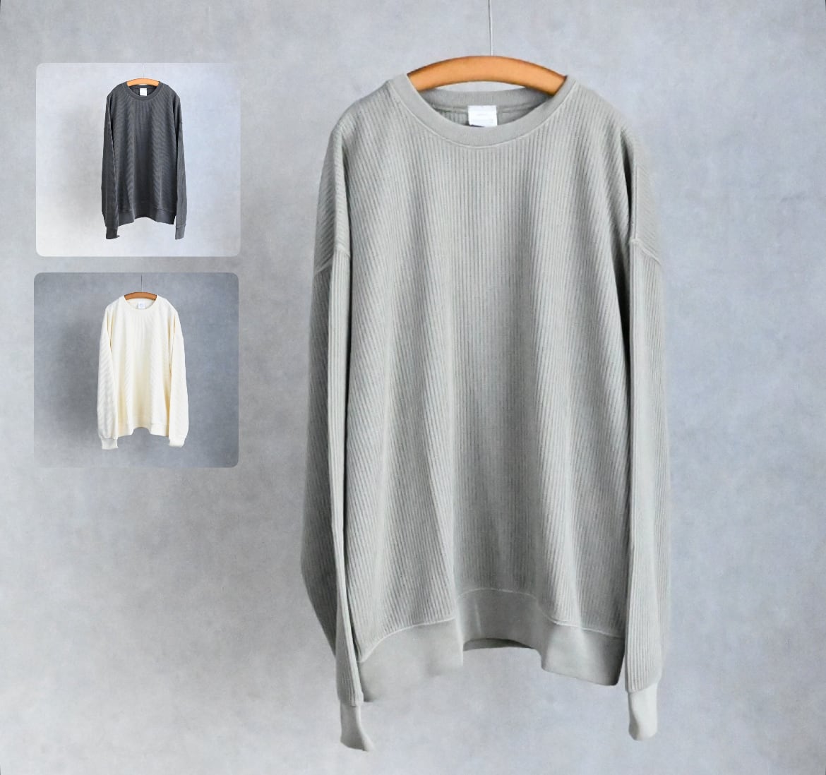 カラーは今回着用しているグレーと、他にブラックとアイボリーでのご用意。