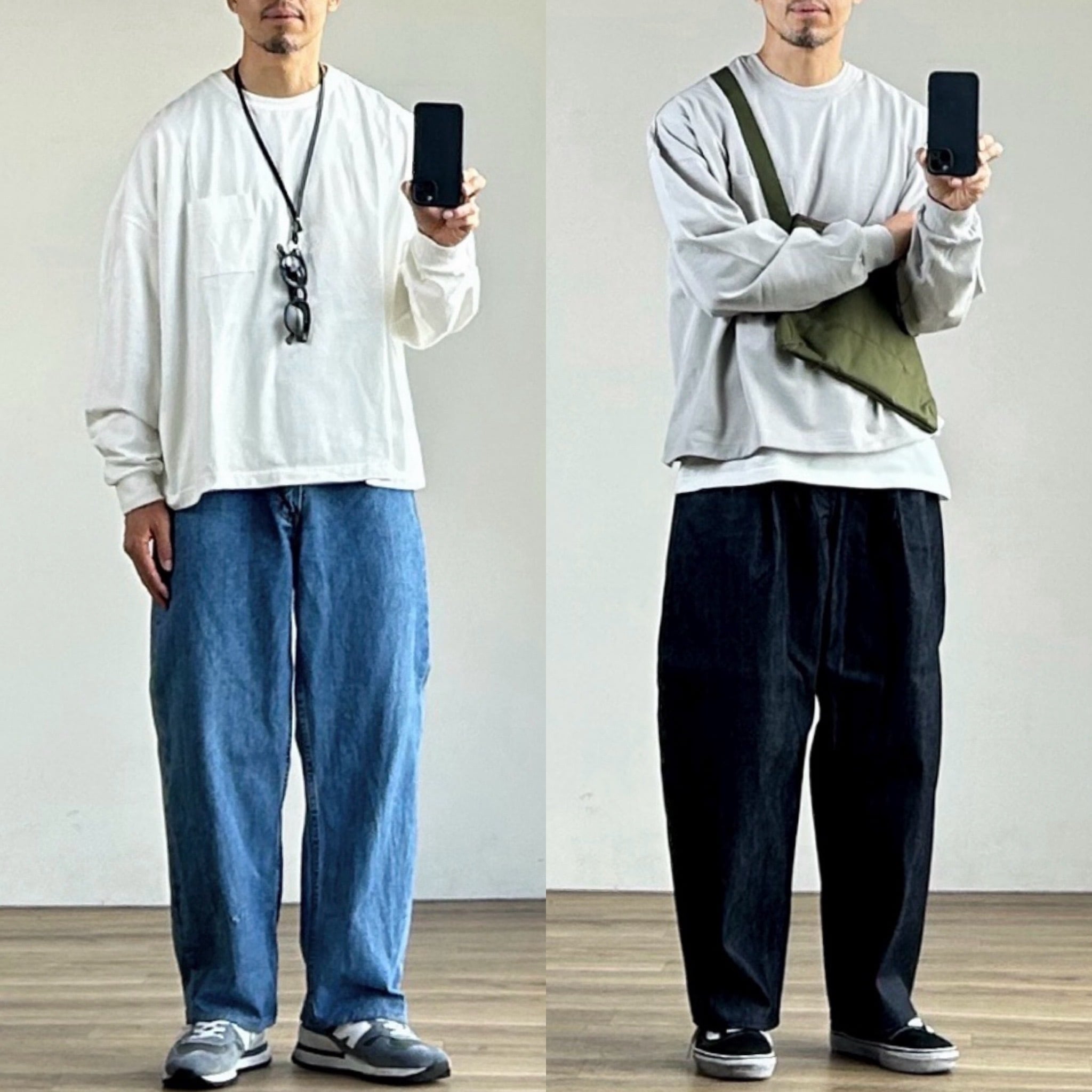 まだまだワイドシルエットのトレンドが続いていますが、一方で着丈はジャスト丈、つまりはスッキリな印象で着こなせる丈感が好まれつつある気がします。