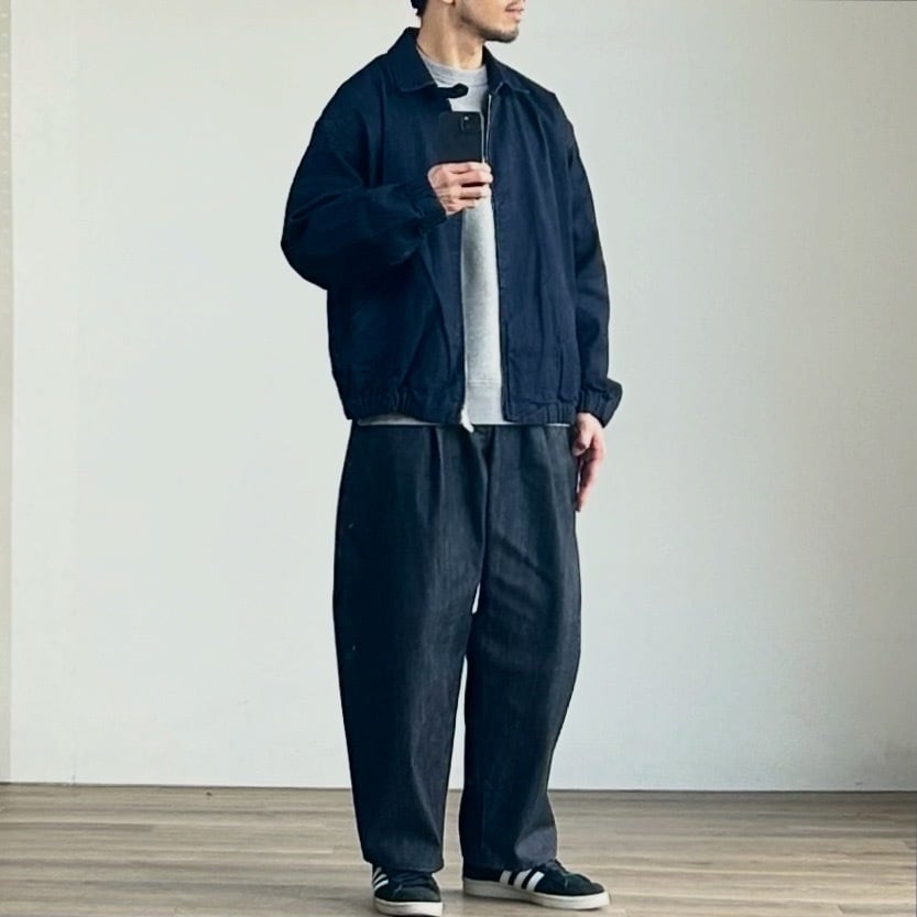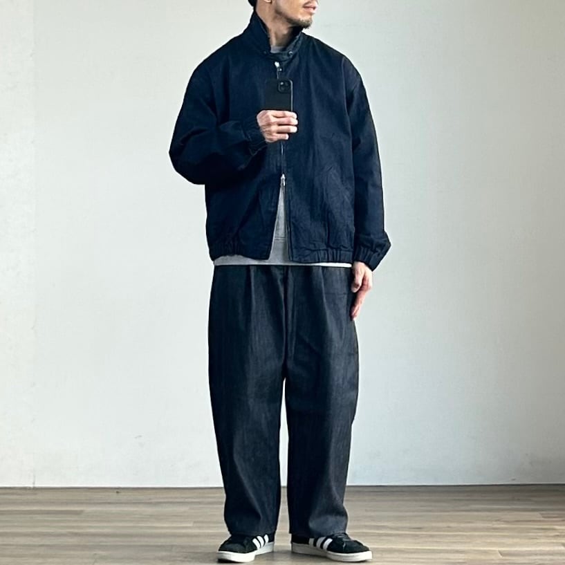 馴染みは少ないかもしれませんが、デニム仕立てのスウィングトップの格好よさは、ハンガーに掛かった状態からでもしっかり伝わるはず。