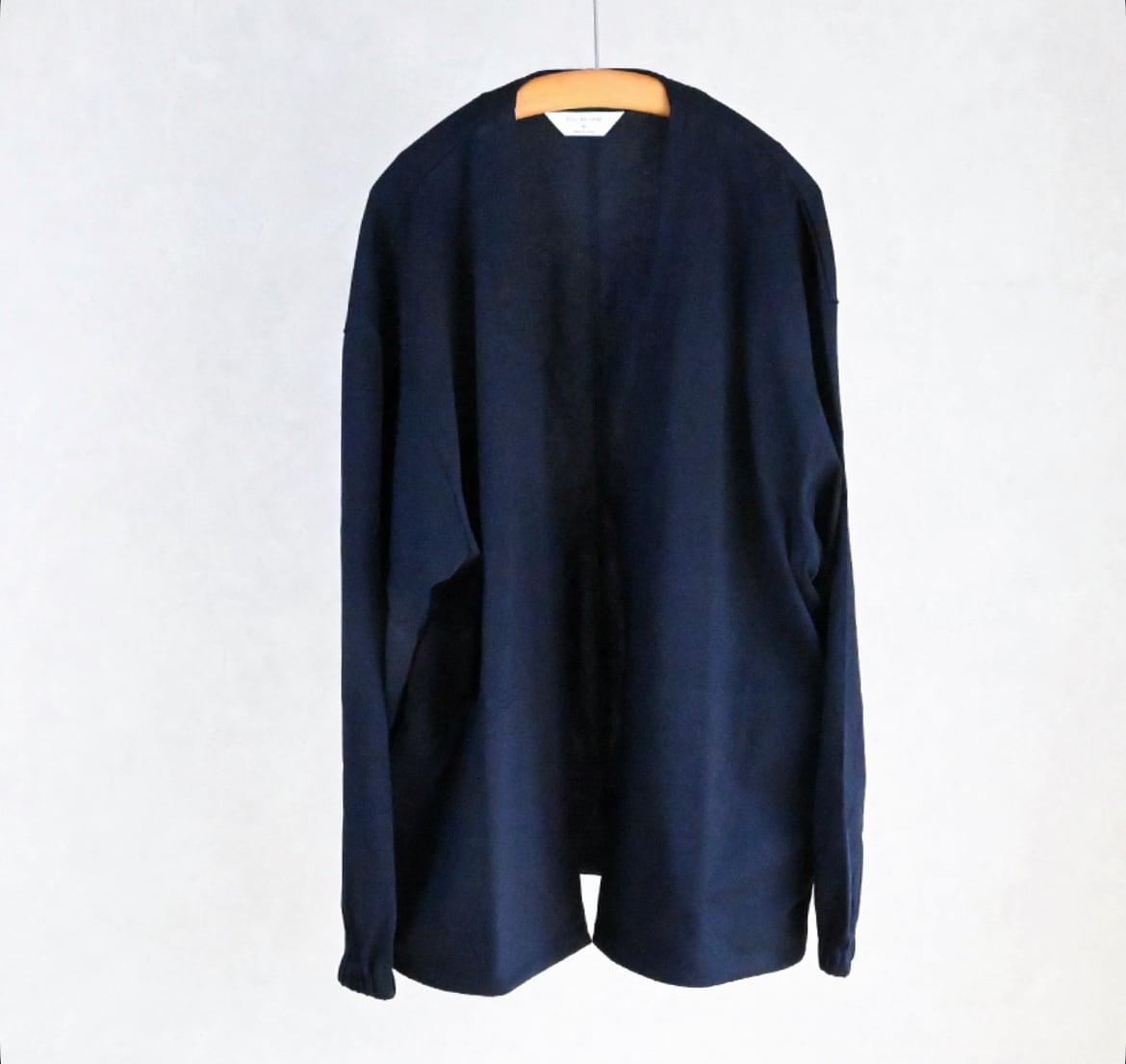フロントはボタンレスのミニマルデザイン。白Tシャツやシャツにさらっと重ねるだけで、大人の余裕を感じさせるスタイルに仕上がります。