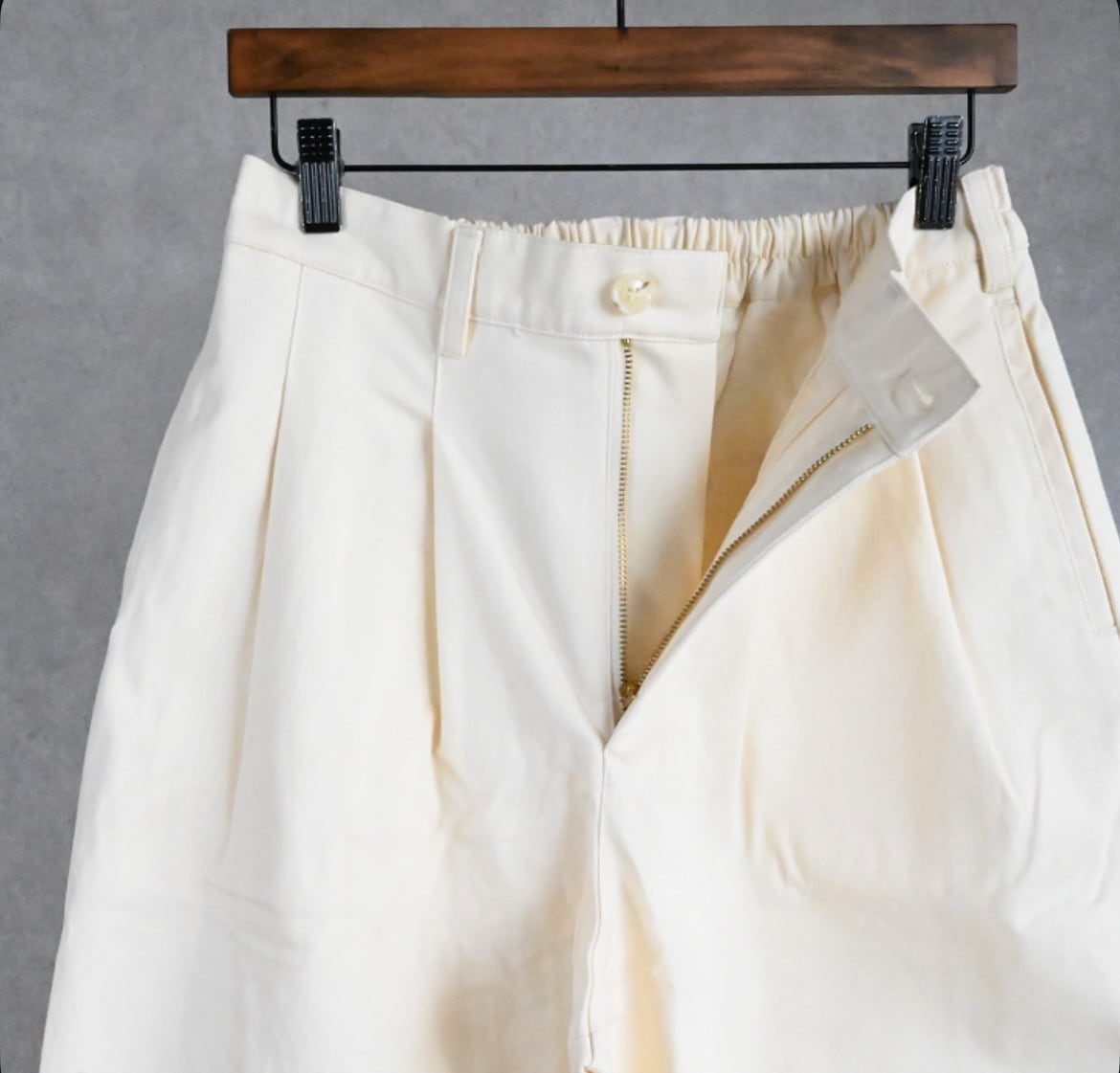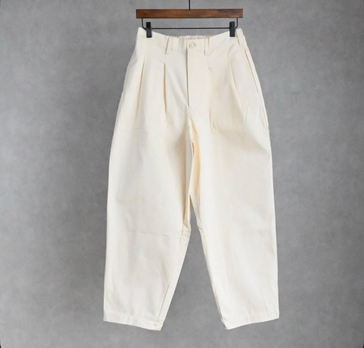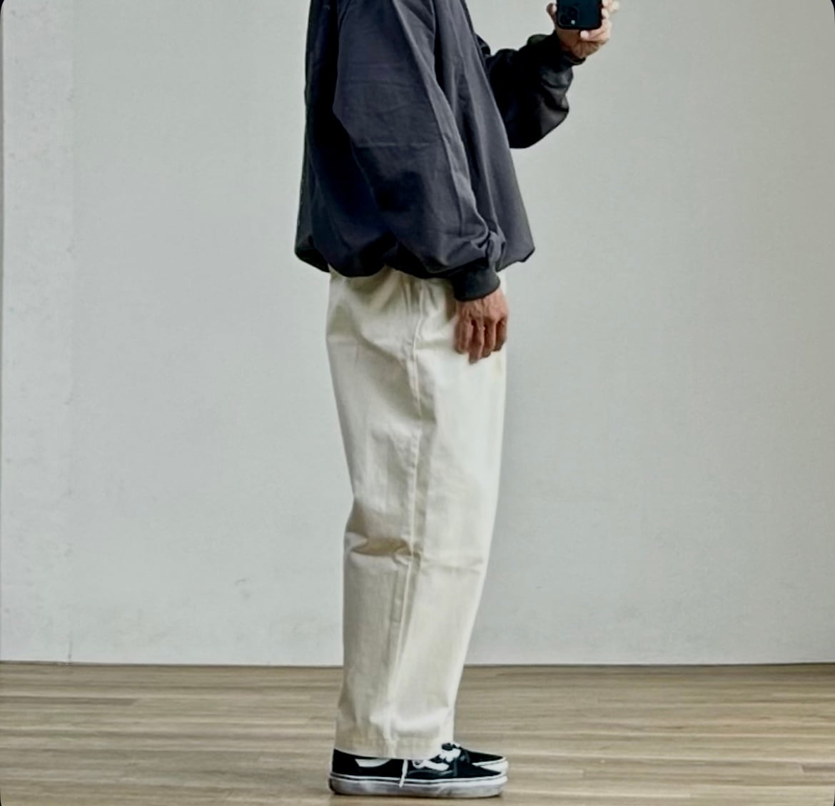 清潔感のある軽やかさを備えつつ、真っ白特有の「汚れやすさ」や「気負い感」を和らげ、日常にぐっと馴染む絶妙なトーン。これまで白パンツを敬遠してきた方にもぜひ取り入れていただきたい一本です。