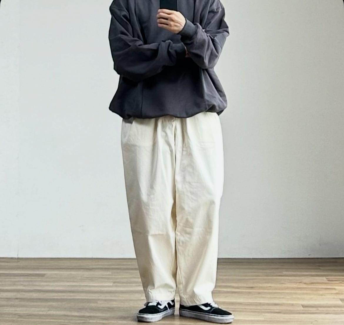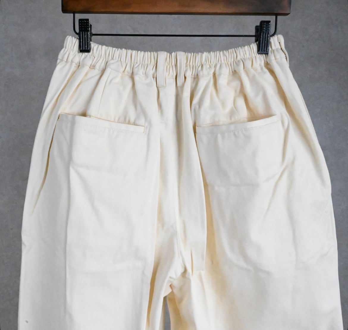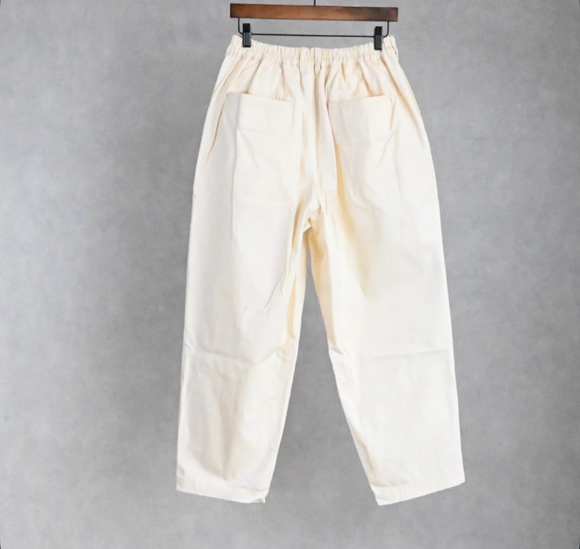 清潔感のある軽やかさを備えつつ、真っ白特有の「汚れやすさ」や「気負い感」を和らげ、日常にぐっと馴染む絶妙なトーン。これまで白パンツを敬遠してきた方にもぜひ取り入れていただきたい一本です。