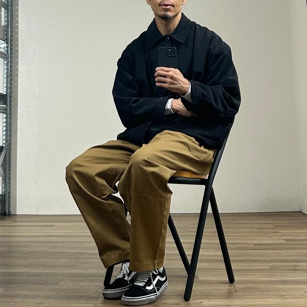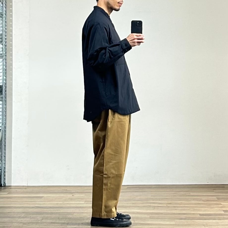 まさに「コクーン=繭」という言葉どおり、優しく包み込むようなシルエット。張りすぎず落ちすぎない、ほどよい肉感のコットンツイルがその魅力をさらに引き立てます。