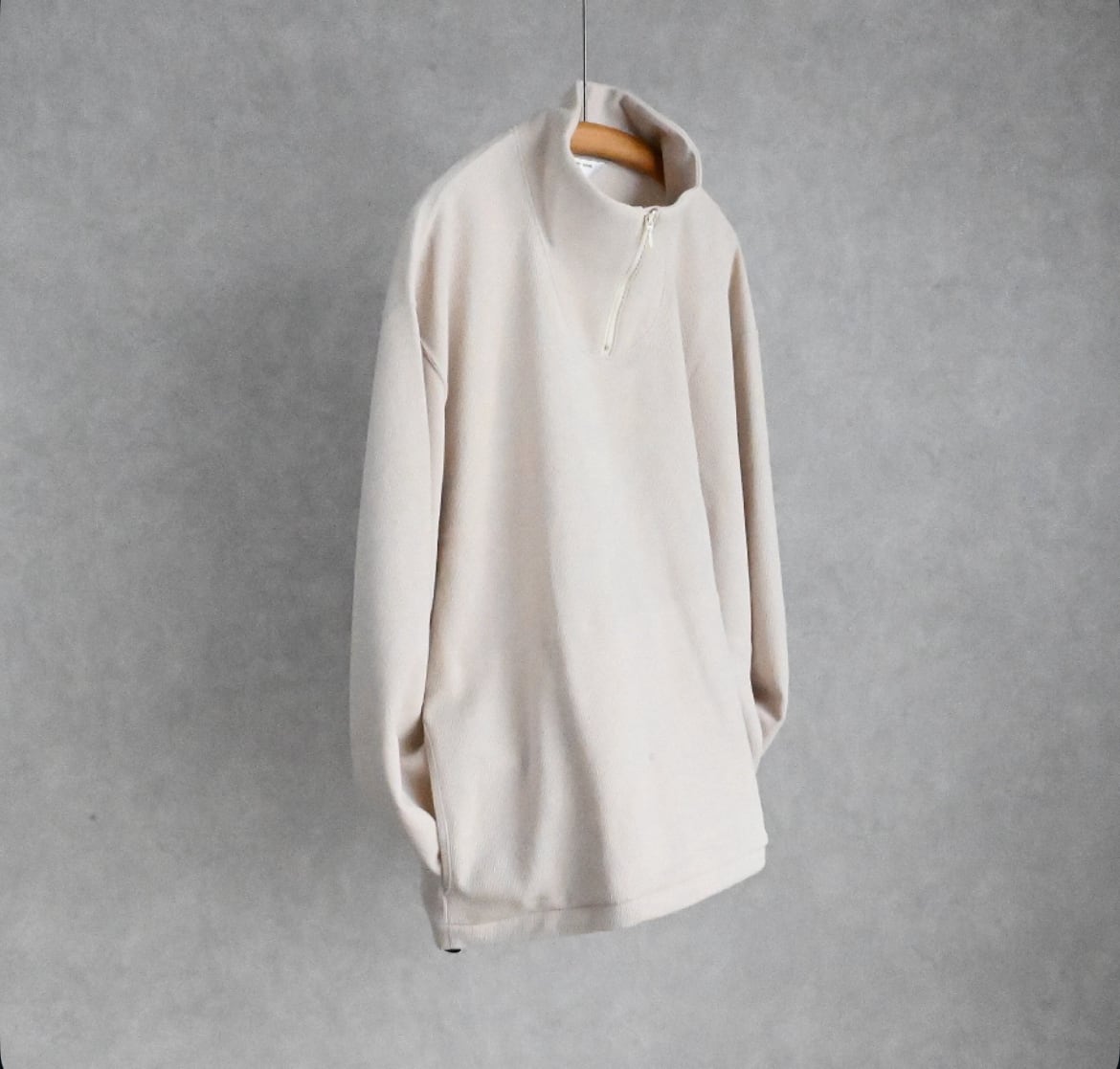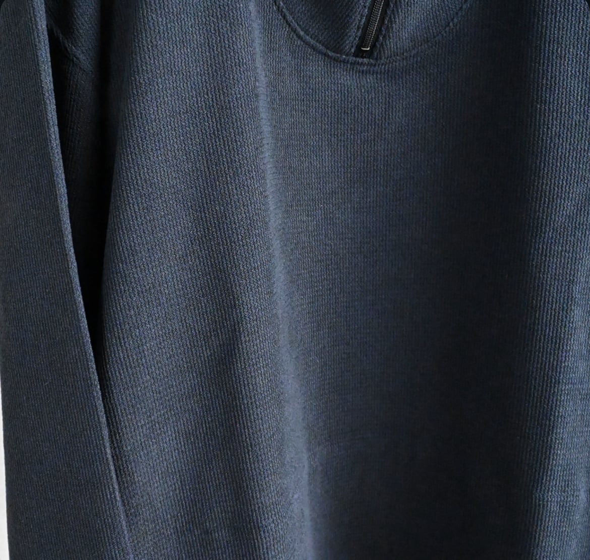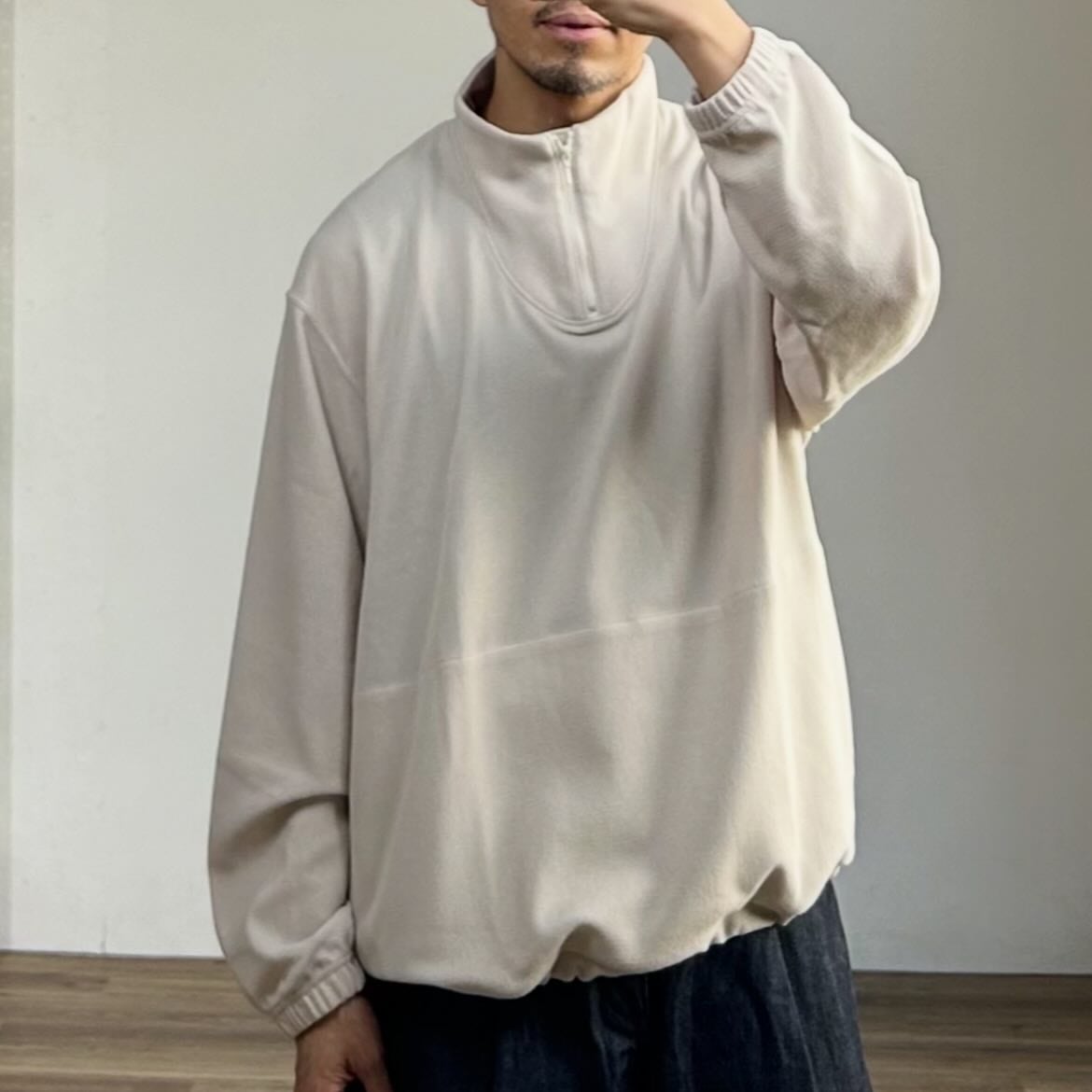 アウトドア由来のアノラックデザインをベースに、ポリエステルニット素材で上品に仕立てたハーフジップのハイネックプルオーバー。