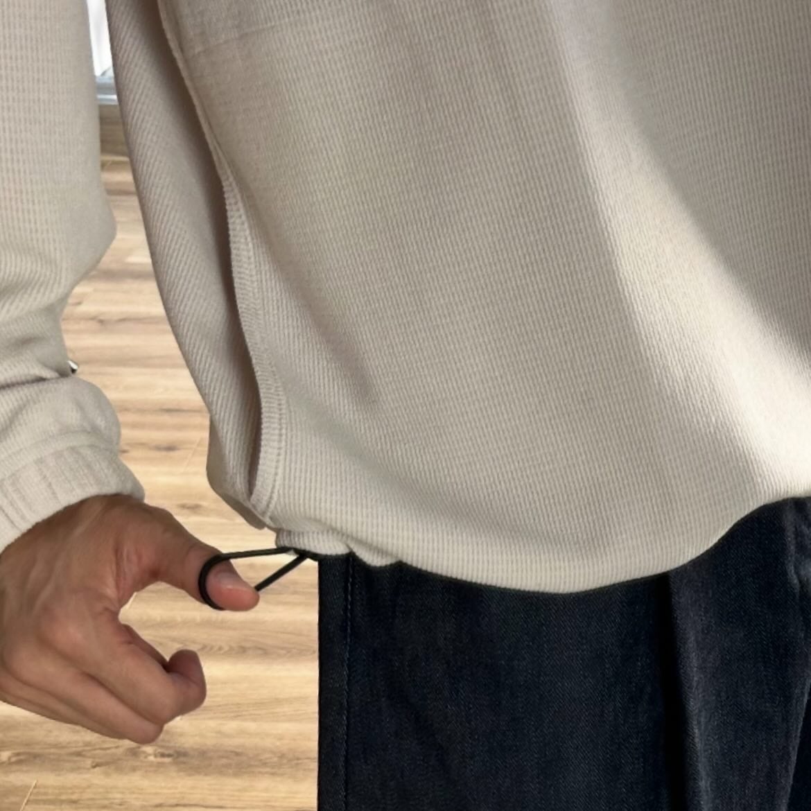1枚で着ても様になり、インナーとしても抜群の存在感を発揮する——まさに秋冬のレイヤードスタイルに欠かせない一着です。
