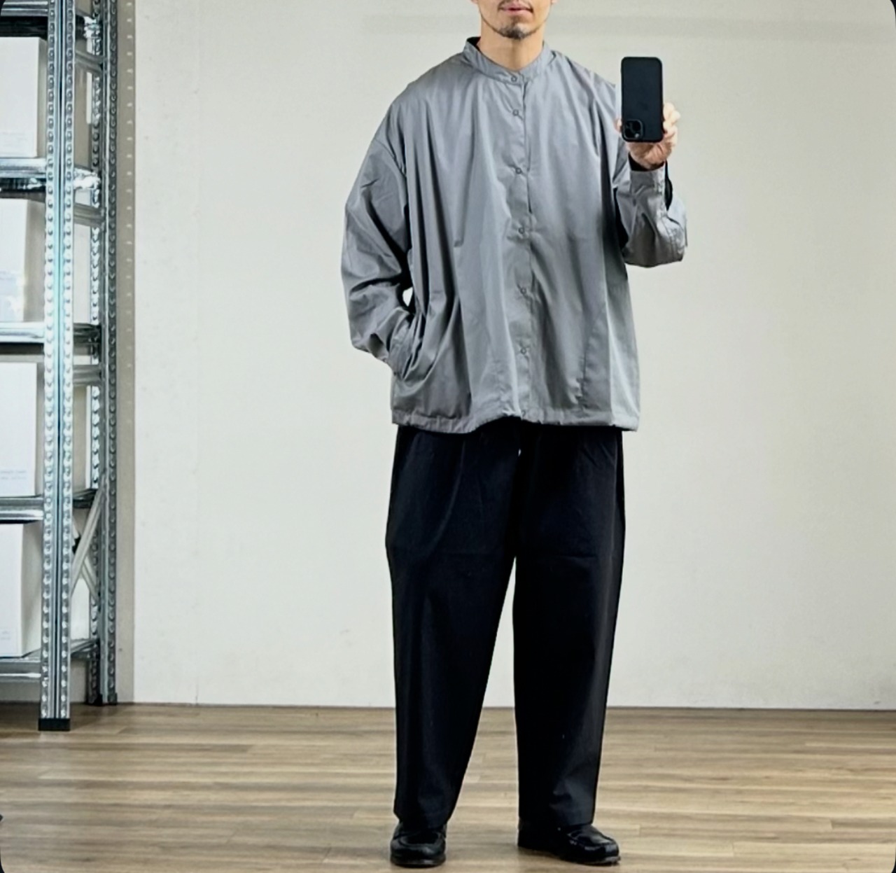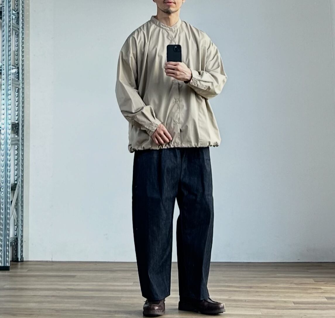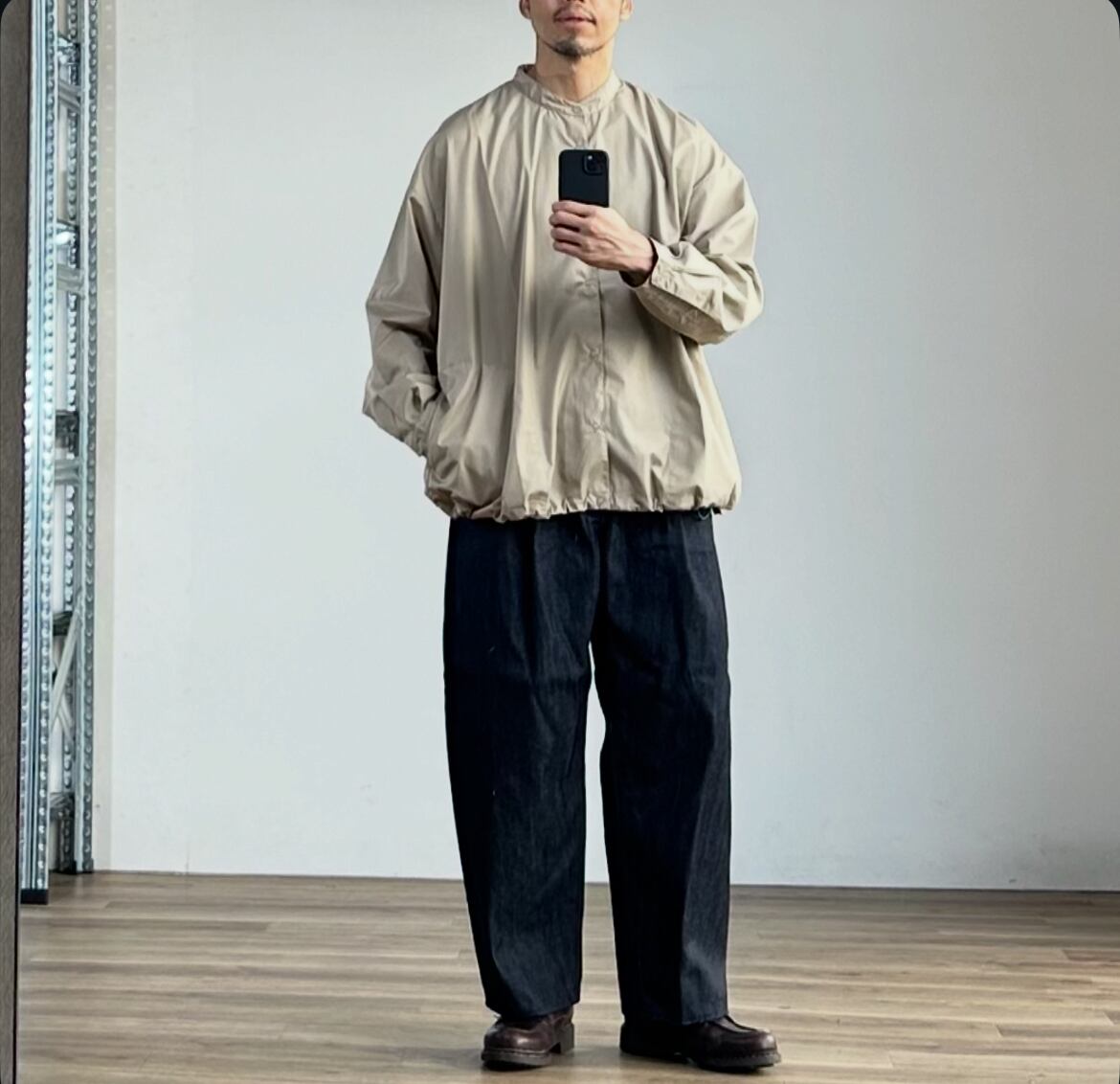 ワイドスクエアのシルエットに、両裾のドローコードを効かせれば一瞬でバルーンシルエットに変化。
