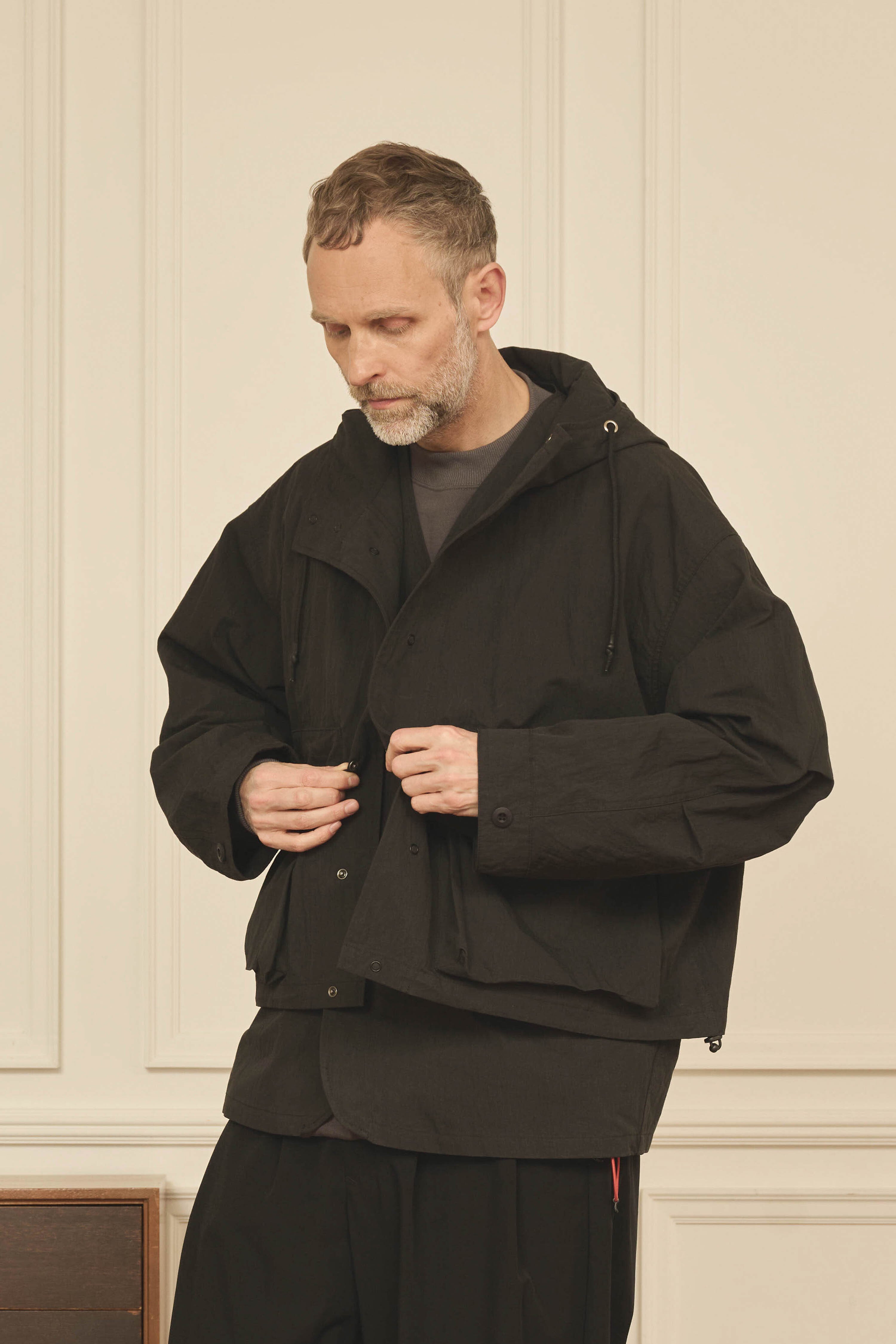 ショート丈でバランスの取りやすいフードジャケットは、ビッグサイズのポケットを備えたデザイン。