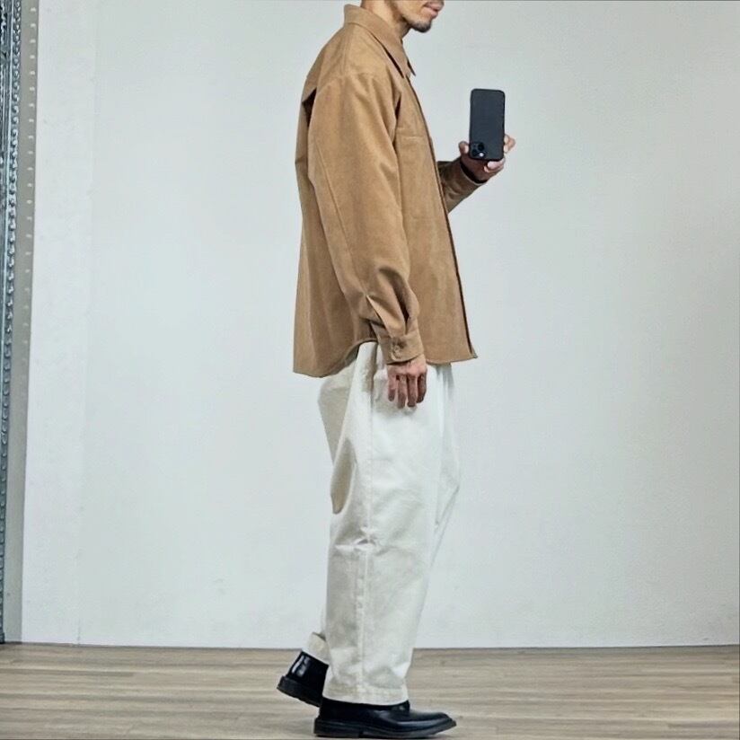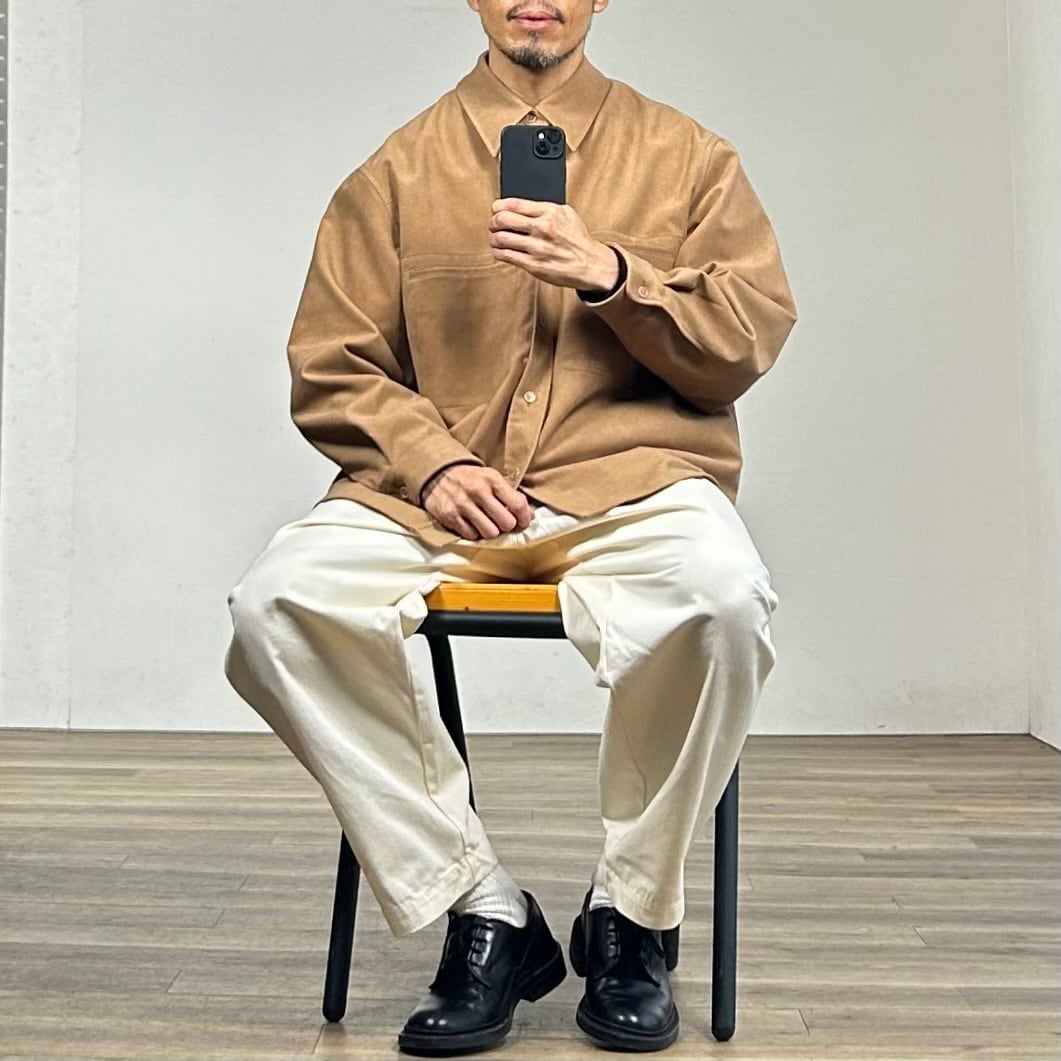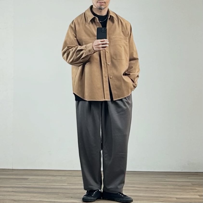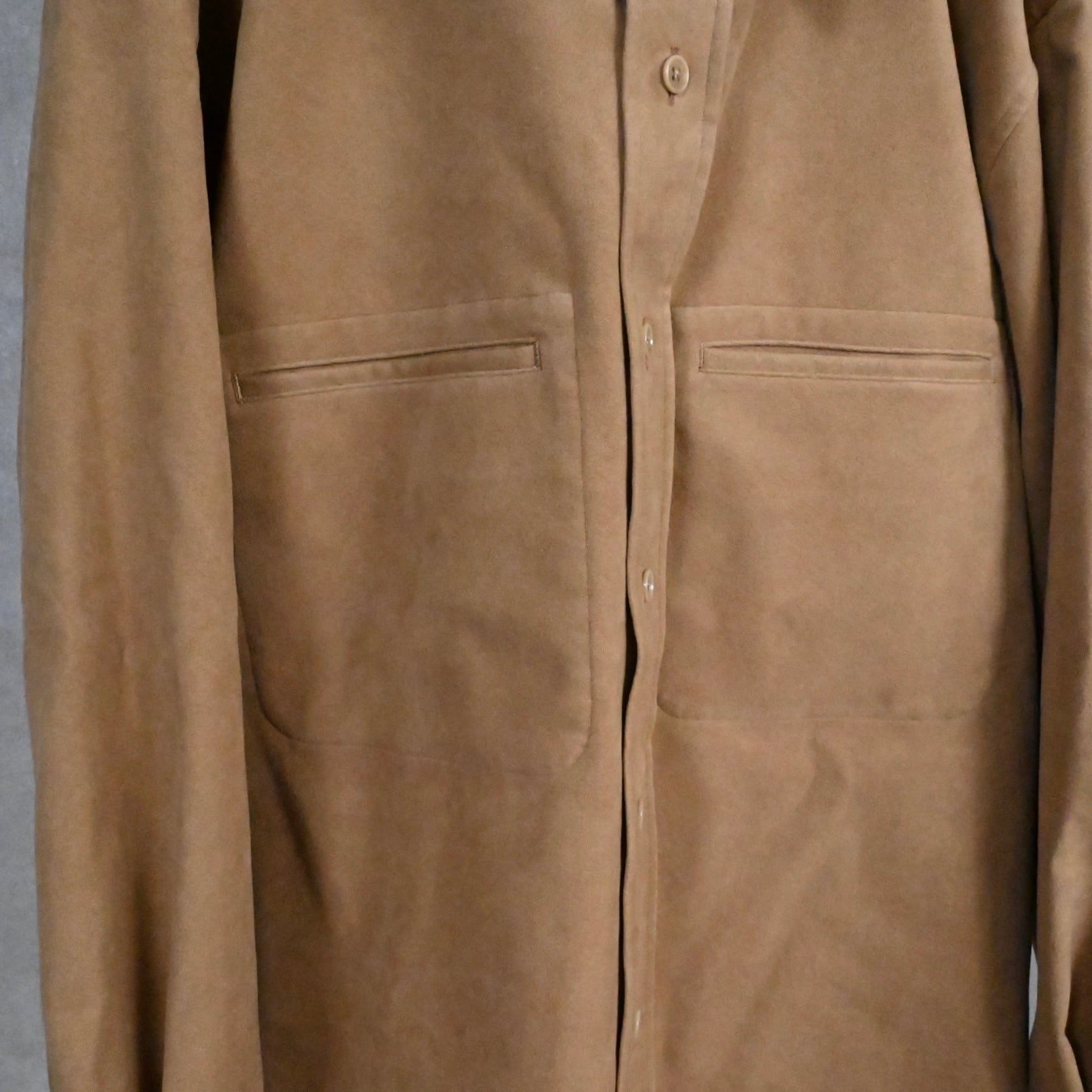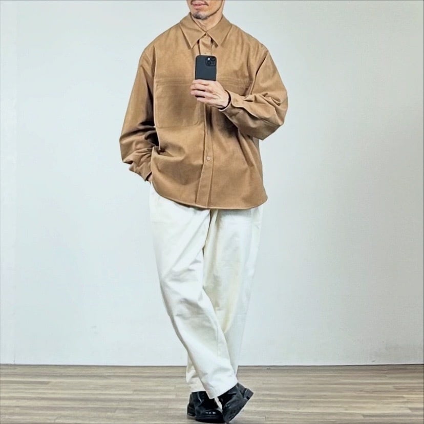 リアルスエードを彷彿させる上品なフェイクスエード素材を使用した、レギュラーカラー&Wポケットデザインのシャツブルゾン。