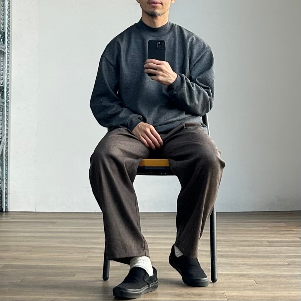 シルエットは、ウール特有の落ち感を活かした太めのテーパード。太すぎない絶妙なバランスで、リラックス感がありながらも上品に穿きこなせる一本。