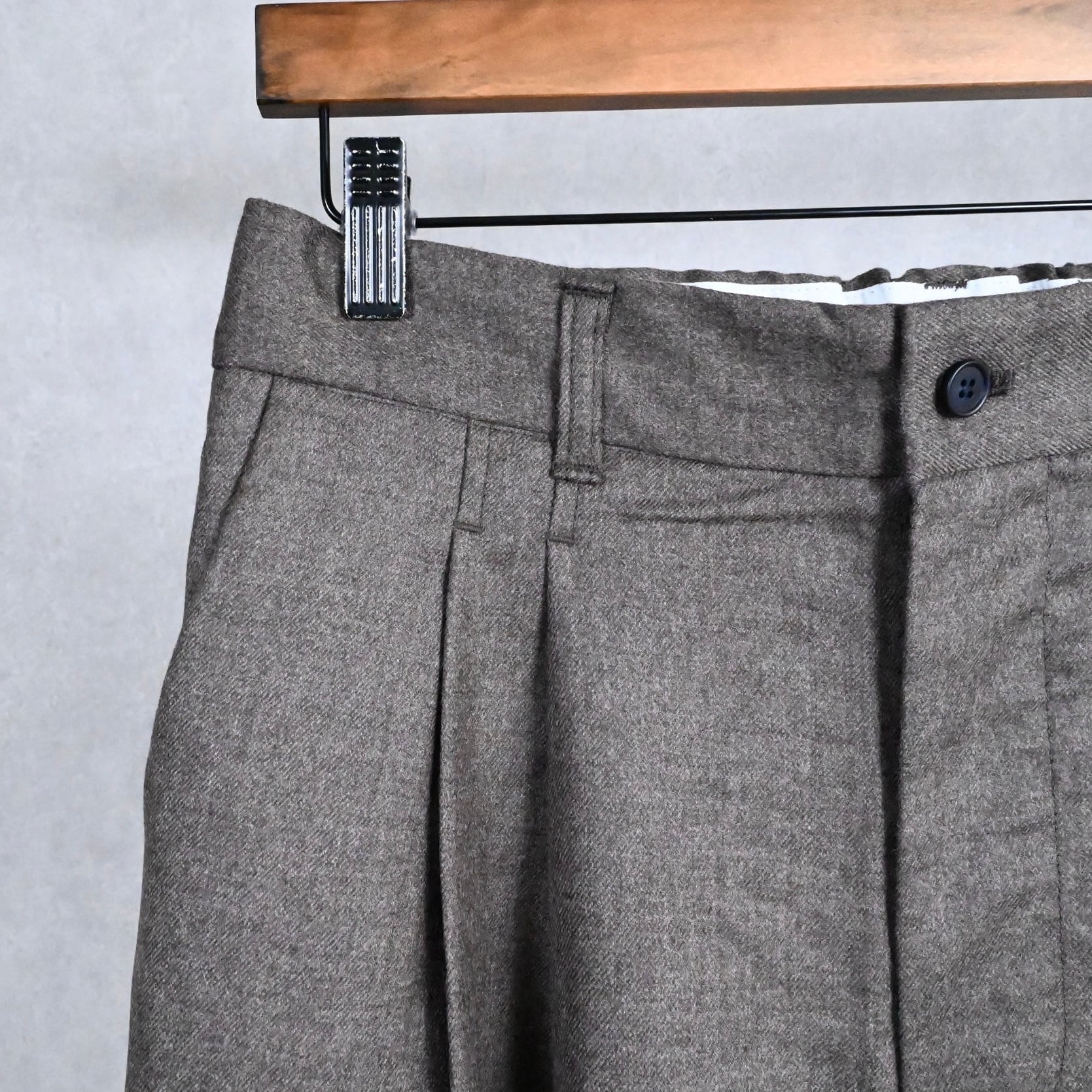 今季はSTILL BY HANDのウールパンツを色々とご用意していますが、こちらはウォッシャブルのウールサキソニー素材を使用した、上品さと扱いやすさを兼ね備えたイージースラックスです。