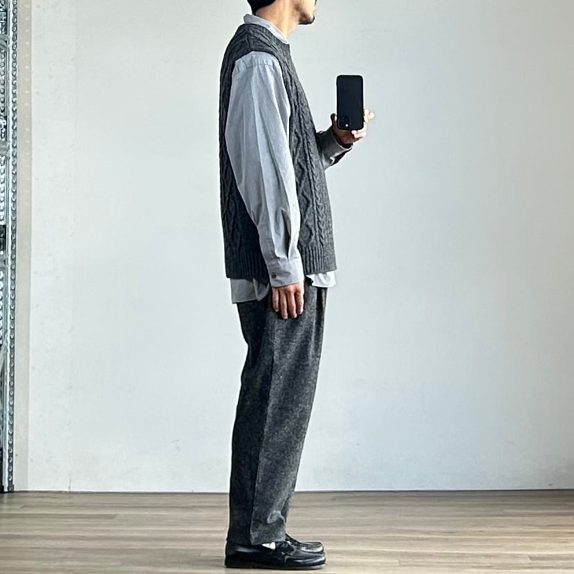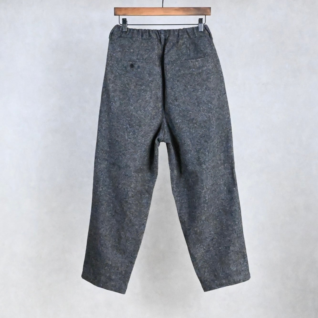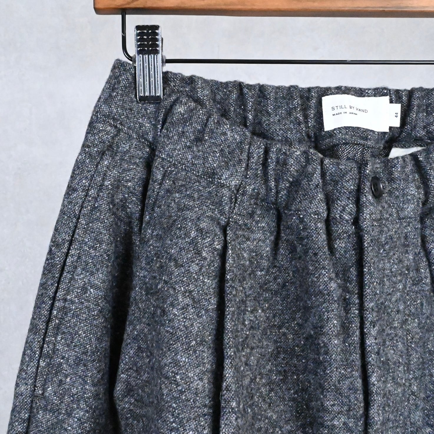 STILL BY HANDの新作、シルクネップ混のウール素材を使用した暖かみのあるテーパードパンツです。