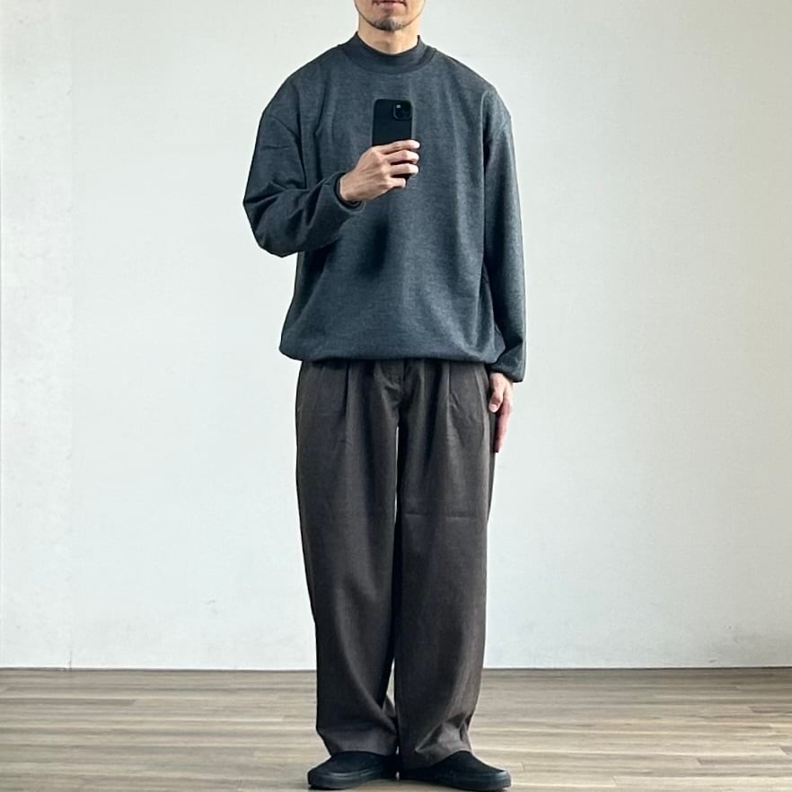 上質なウールのぬくもりと洗練されたデザインが、大人のリラックススタイルに上品な季節感を添えてくれます。