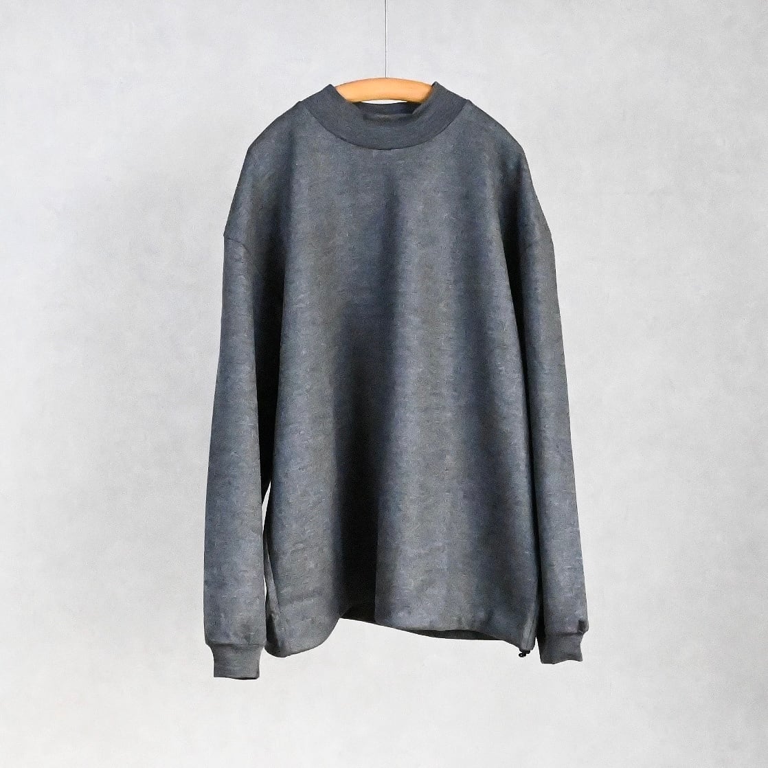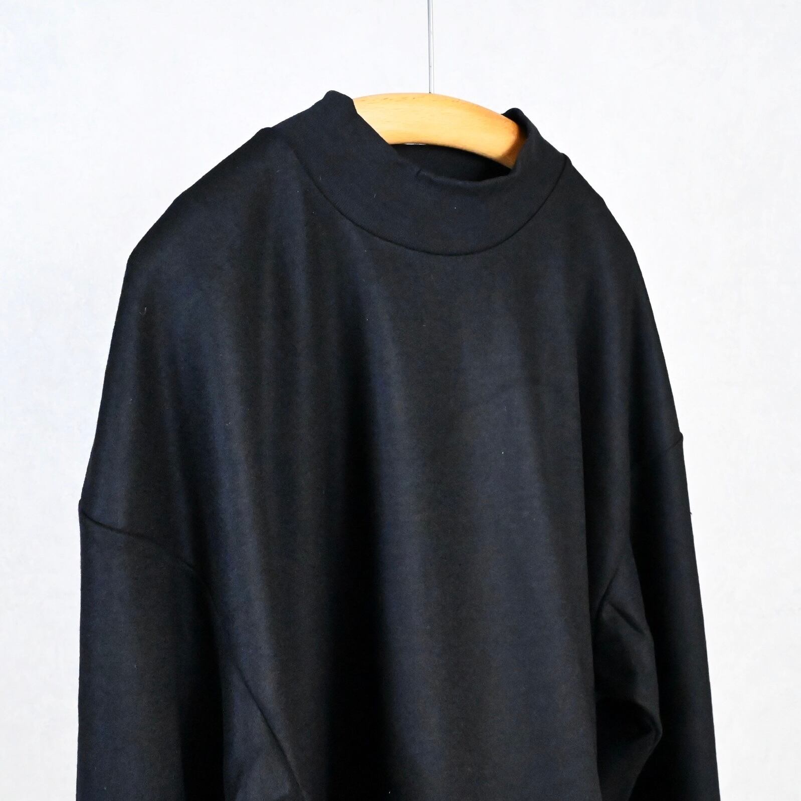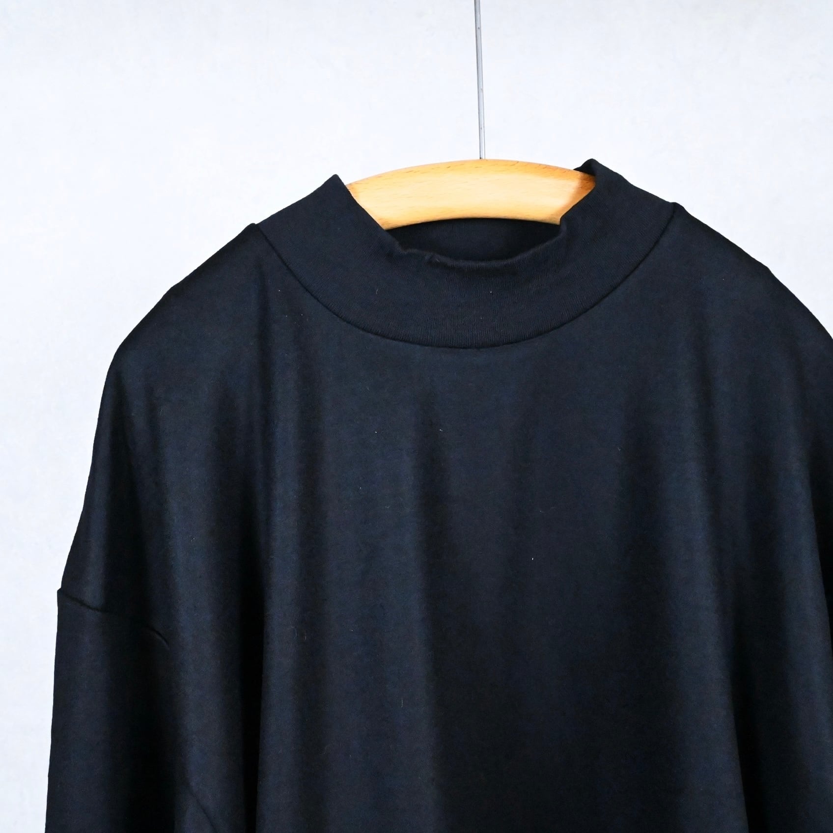 ほんの少し高さを持たせた控えめなモックネックは、首まわりをすっきり見せつつ自然な上品さをプラス。