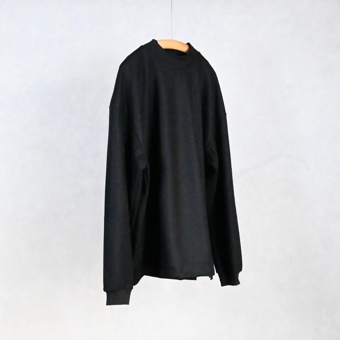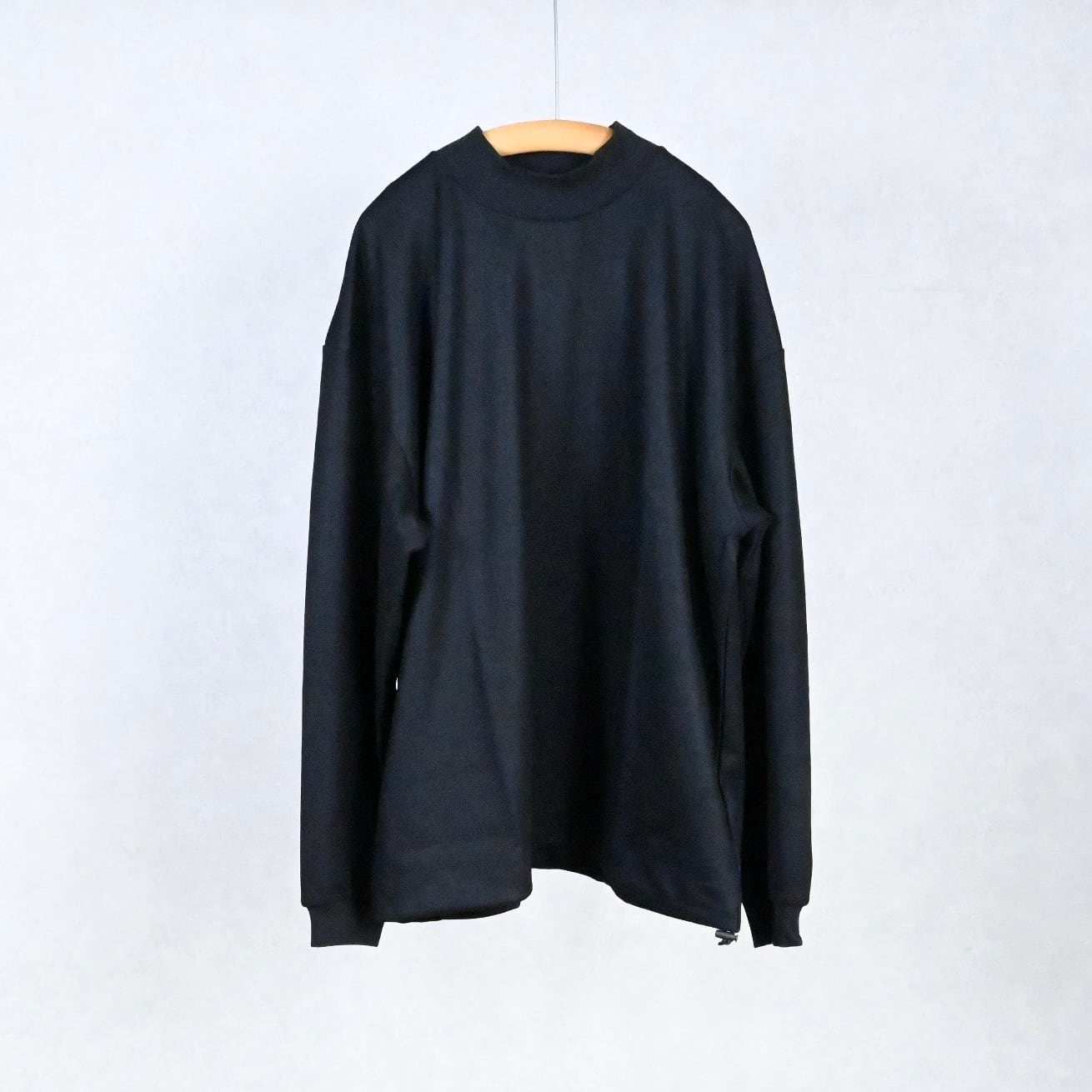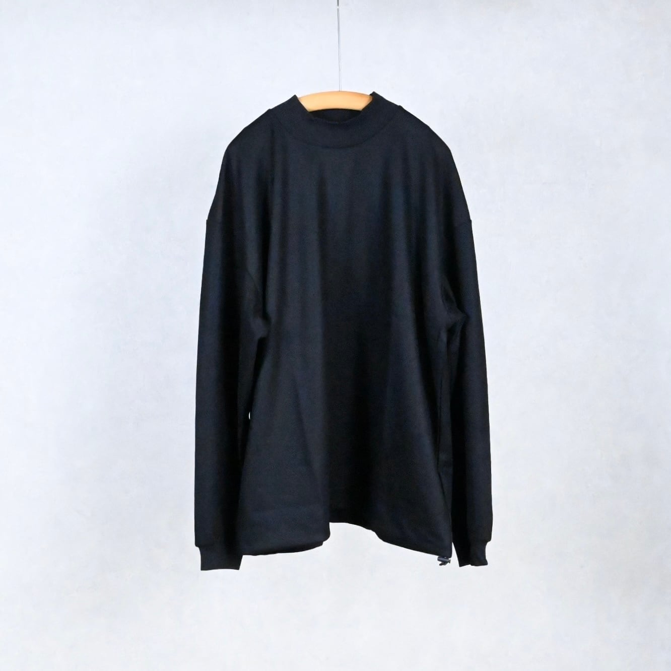 ほんの少し高さを持たせた控えめなモックネックは、首まわりをすっきり見せつつ自然な上品さをプラス。
