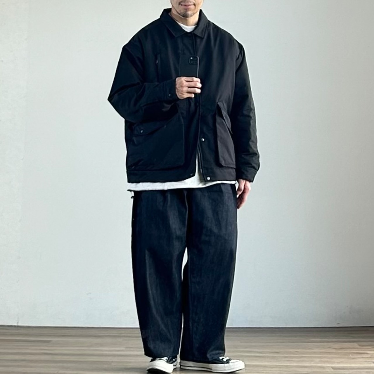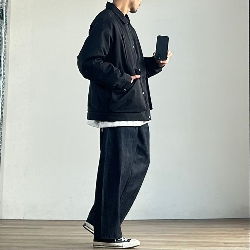 ショートジャケットという名前ですが、着丈は約68cmと、僕の身長だとショートというより“程よいスタンダード丈”といった感じで、インナーとのレイヤードもしやすいバランスです。