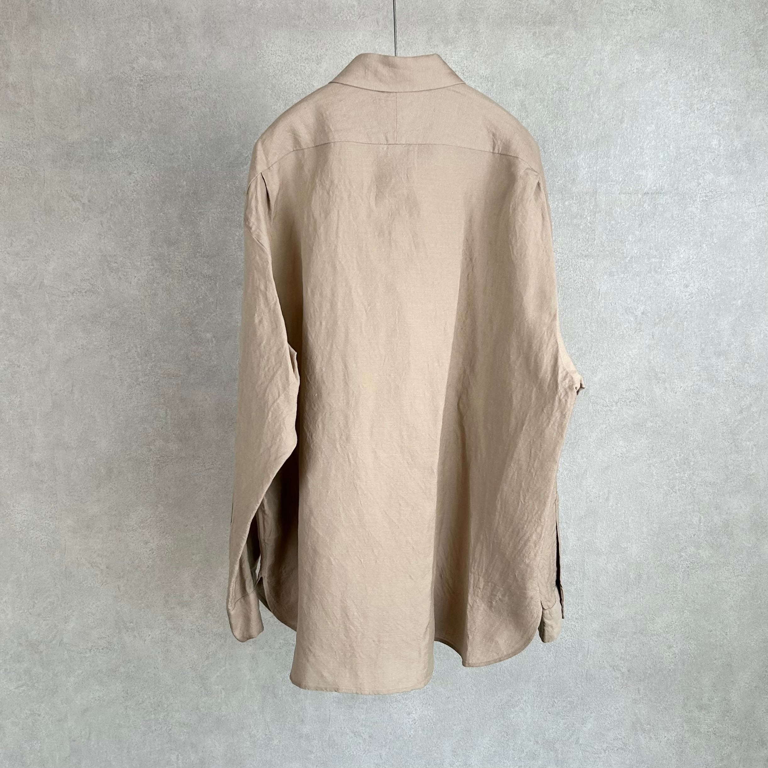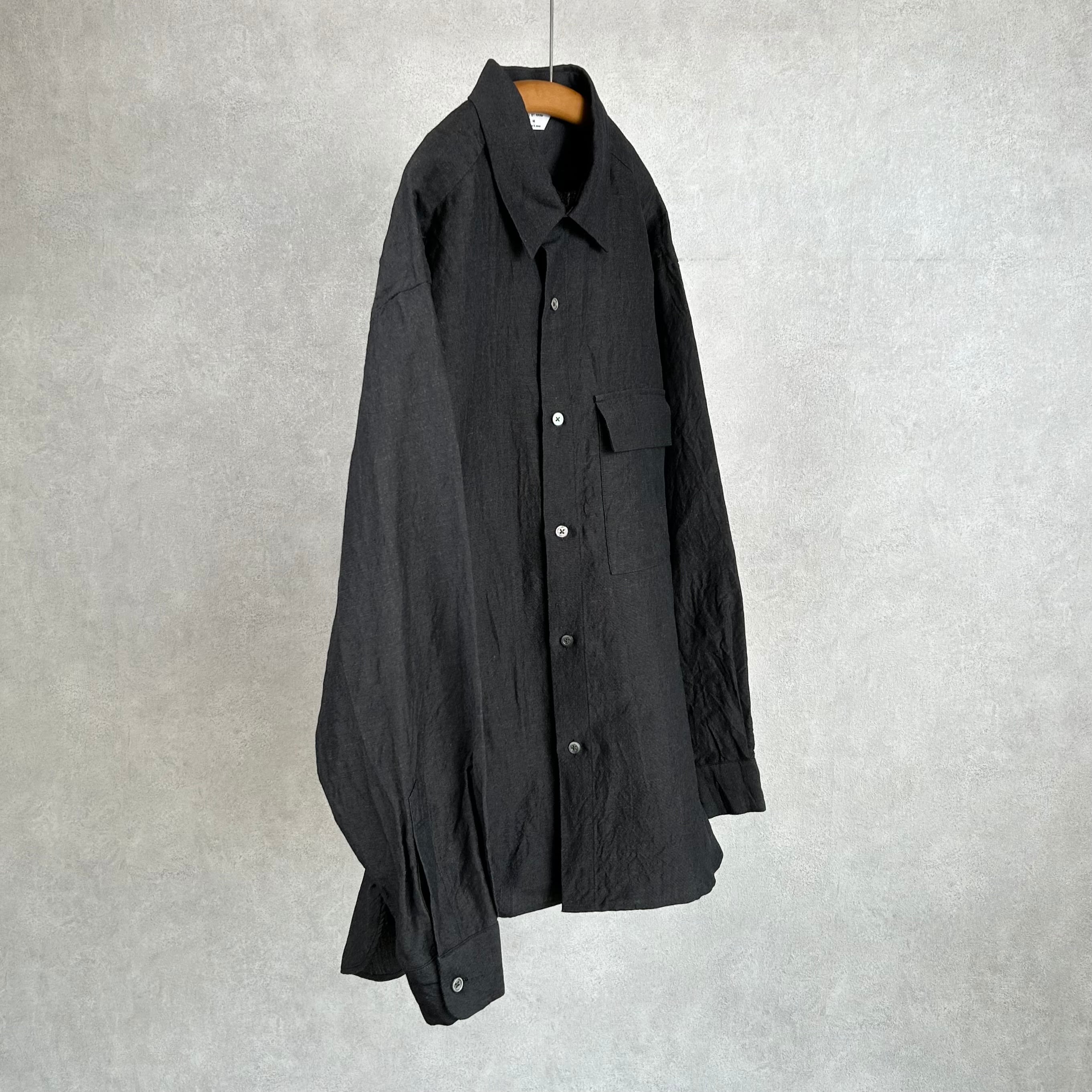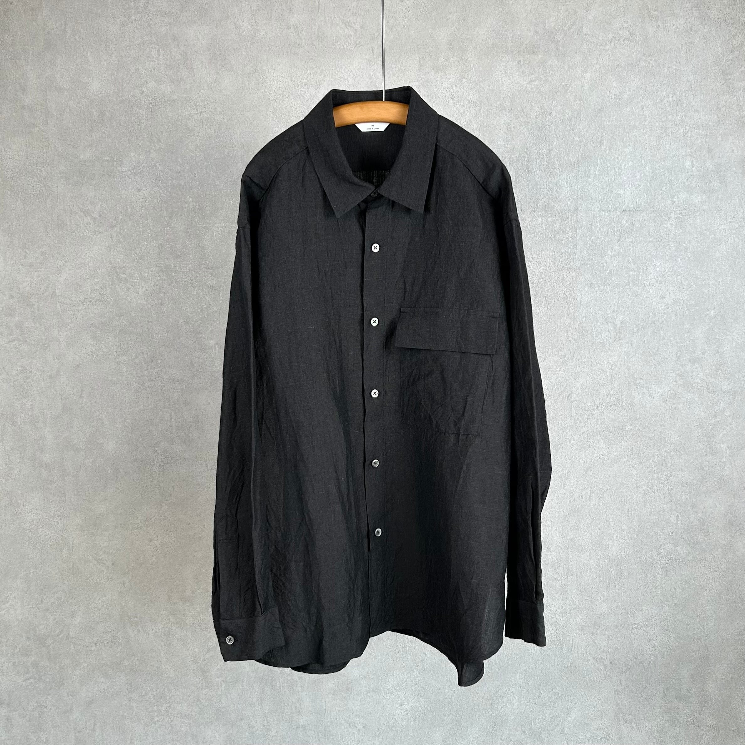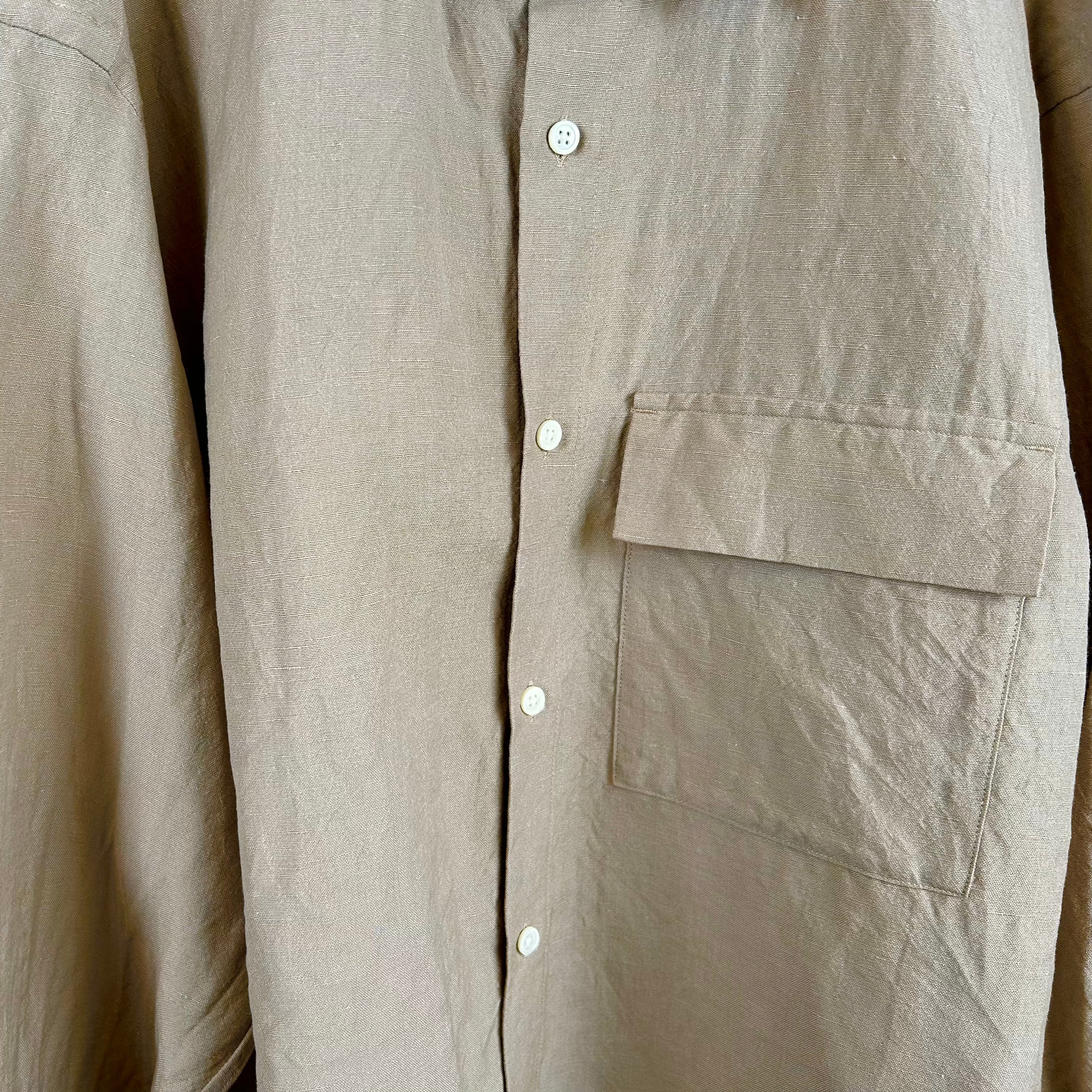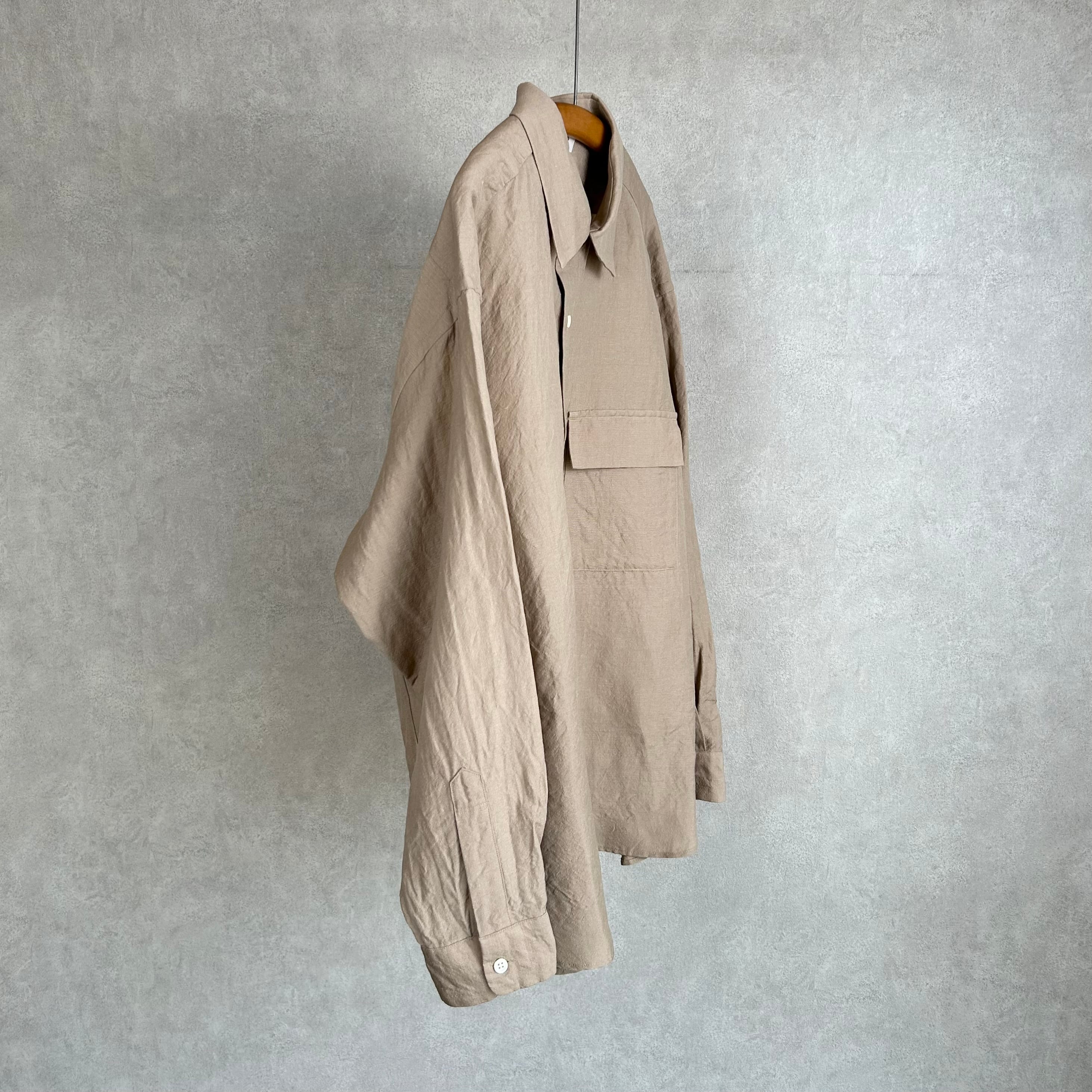 ウール/リネン素材を使用した、フラップポケット付きのレギュラーカラーシャツ。