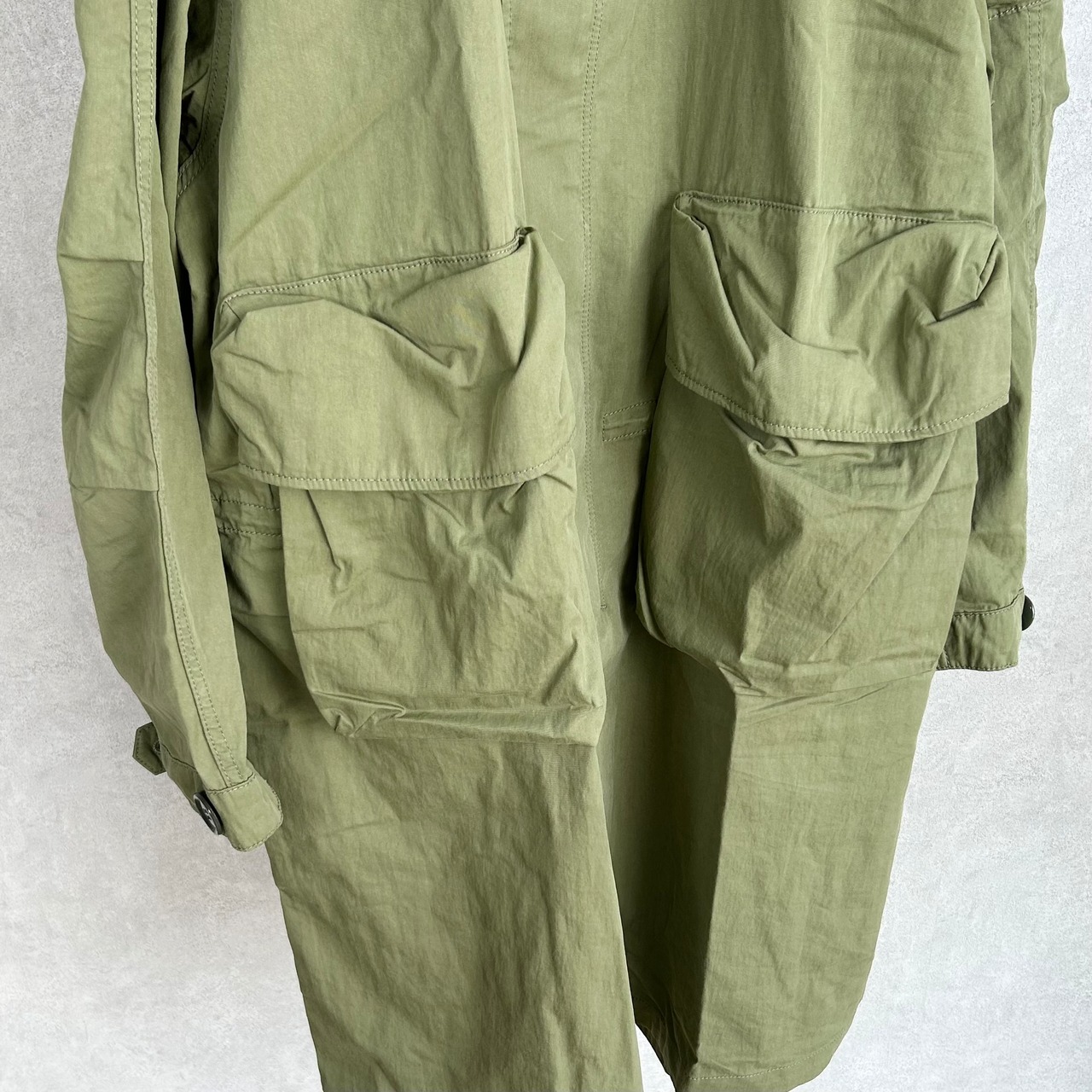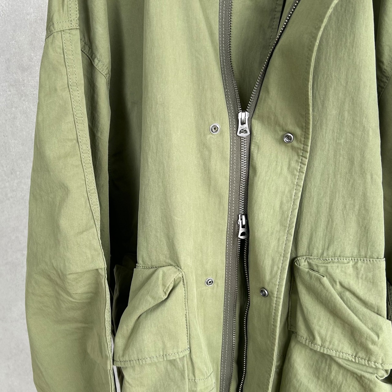 袖口の大きなボタンや、腕部分に設けたイヤホン・小物用ポケットも特徴的。