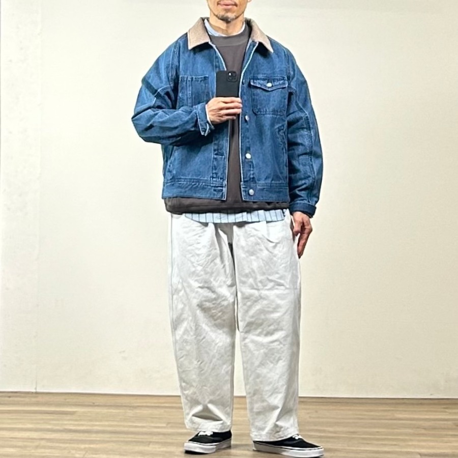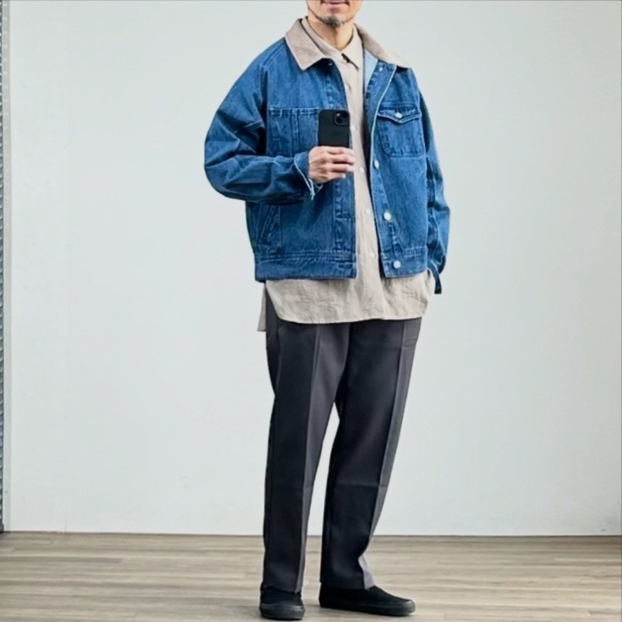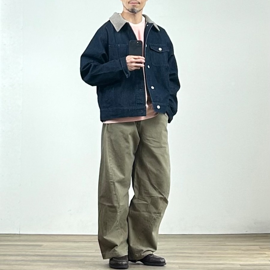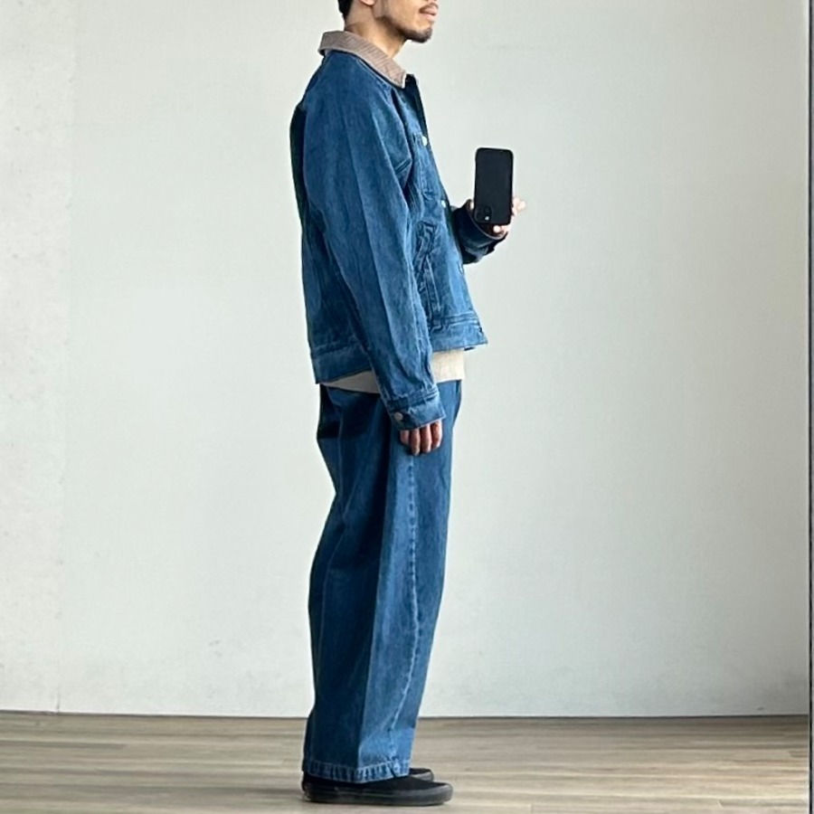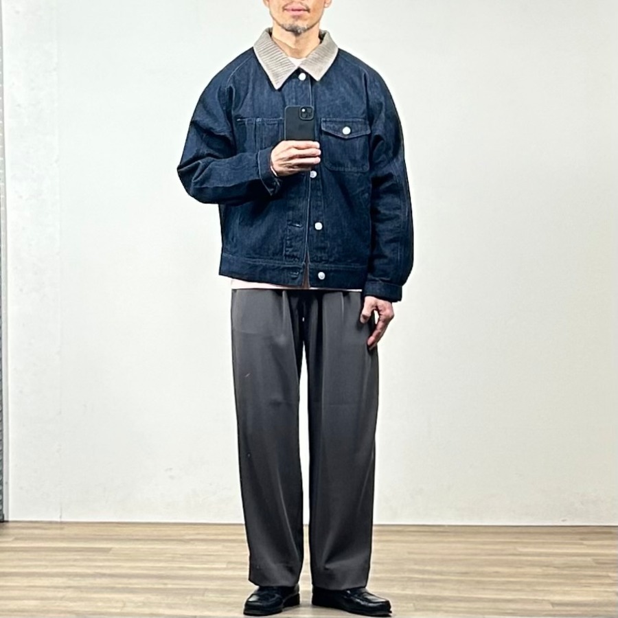昨年から展開しているカーブデニムトラウザーと同じデニムを使用しているため、セットアップでの着こなしもおすすめです。