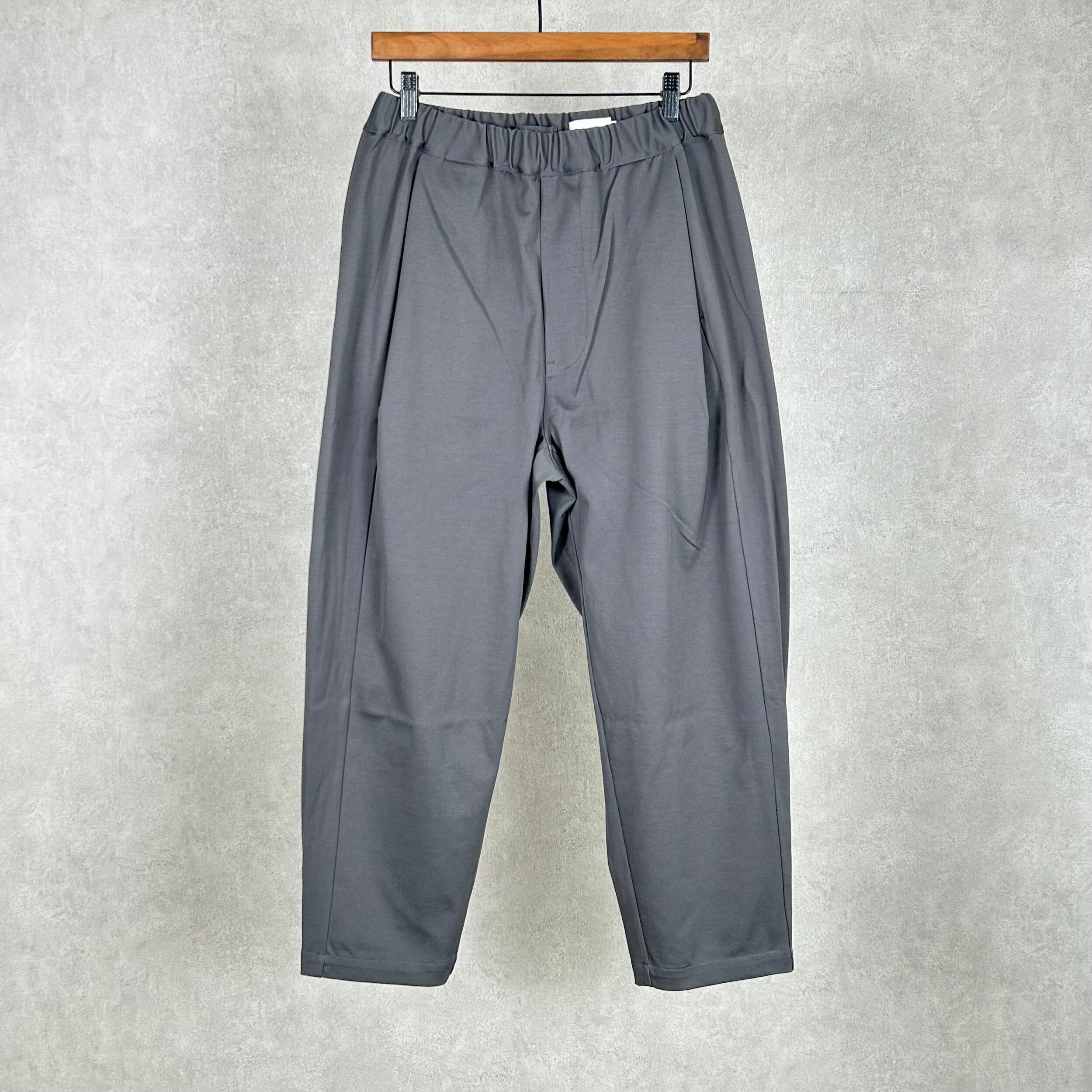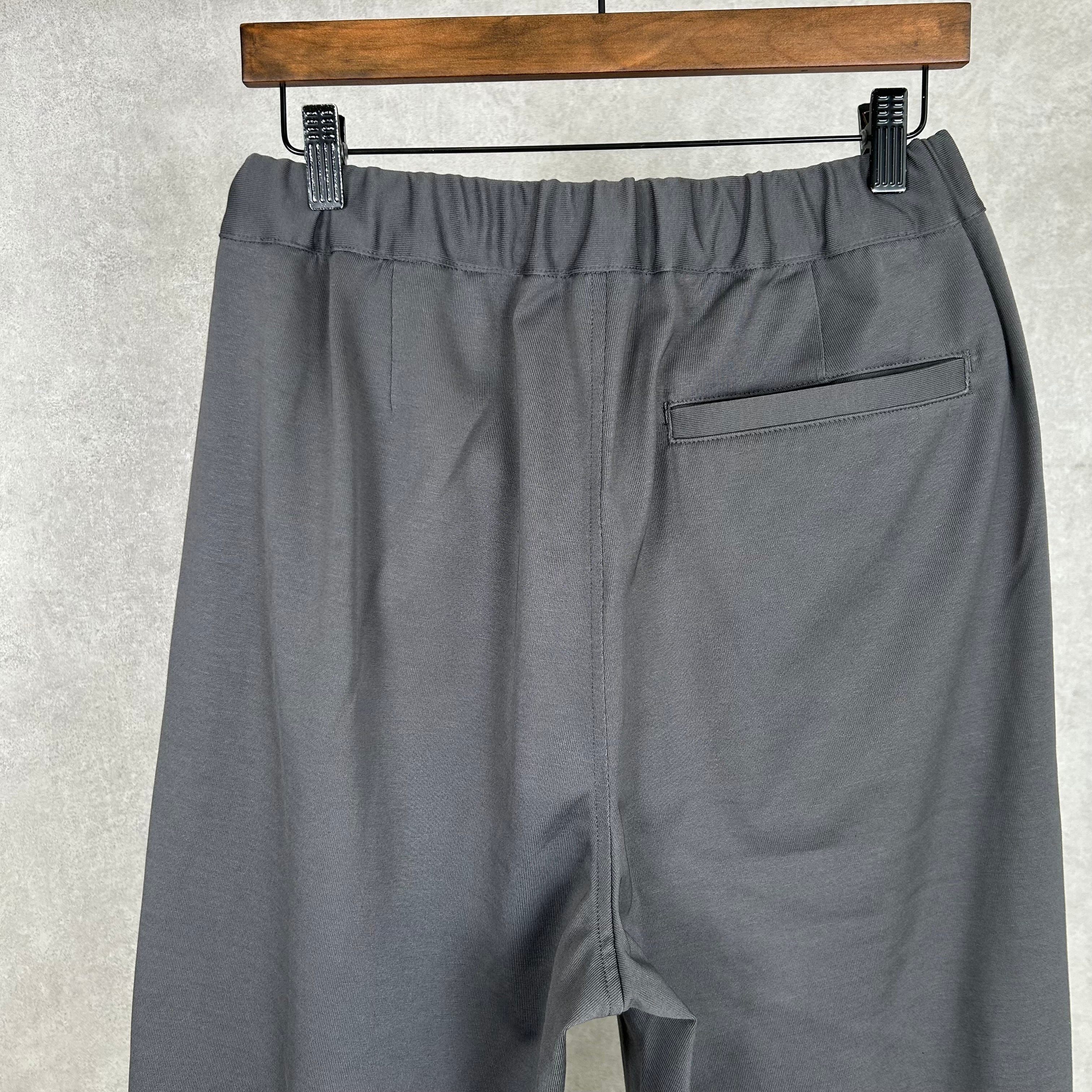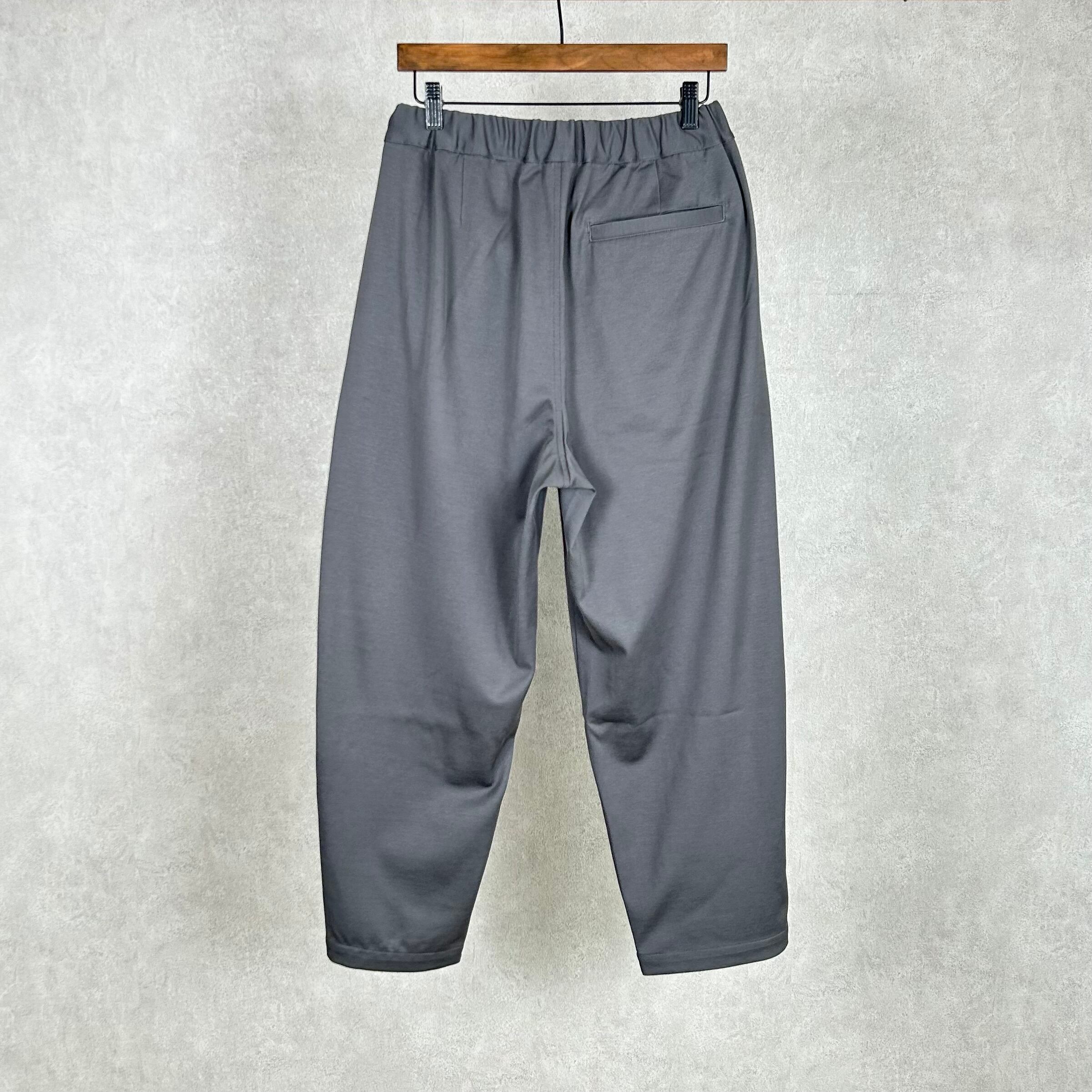 強撚のコットンジャージー素材を使用したカットソーパンツ。ドライタッチで肌離れが良く、カットソー特有の伸縮性も相まって、リラックス感のある快適な穿き心地です。