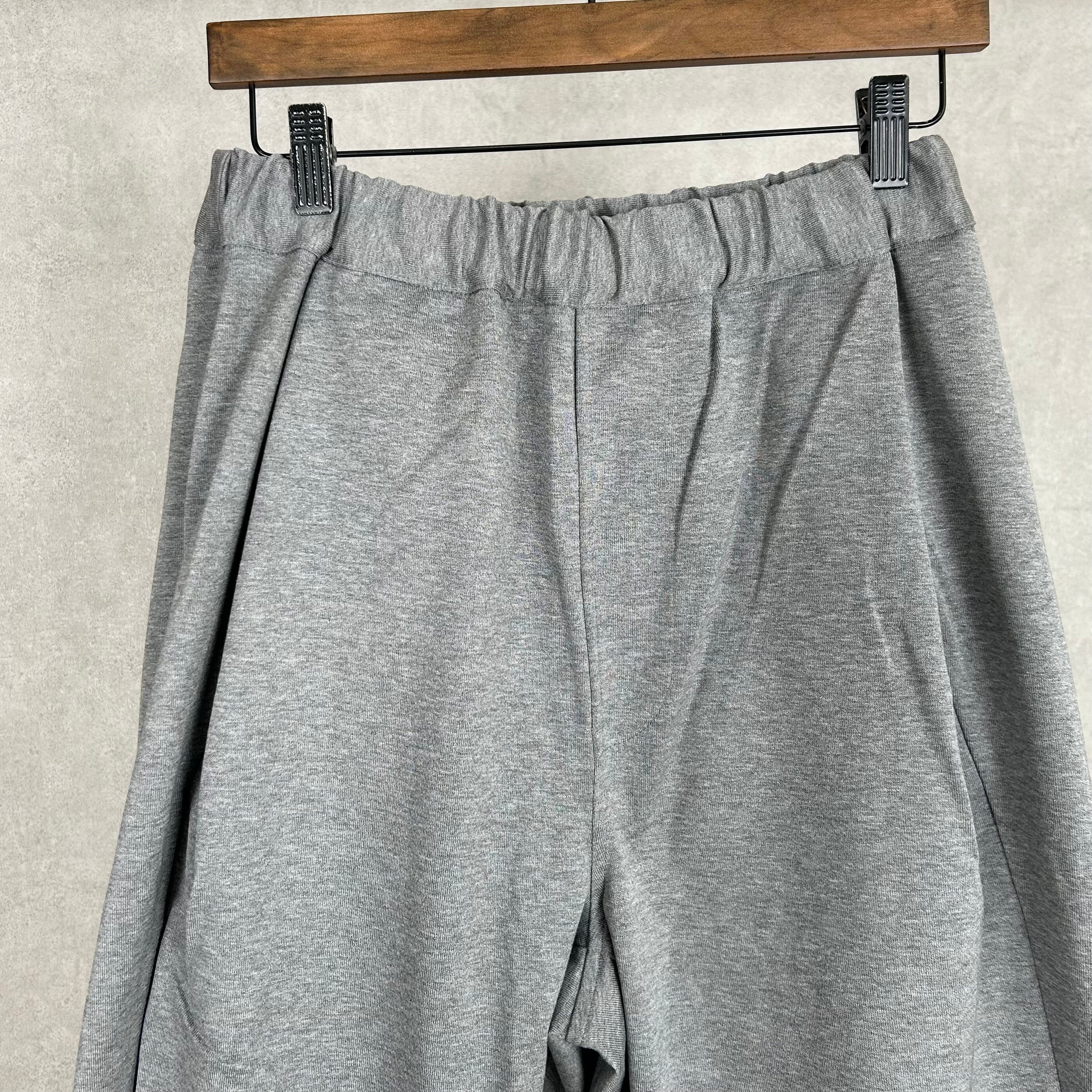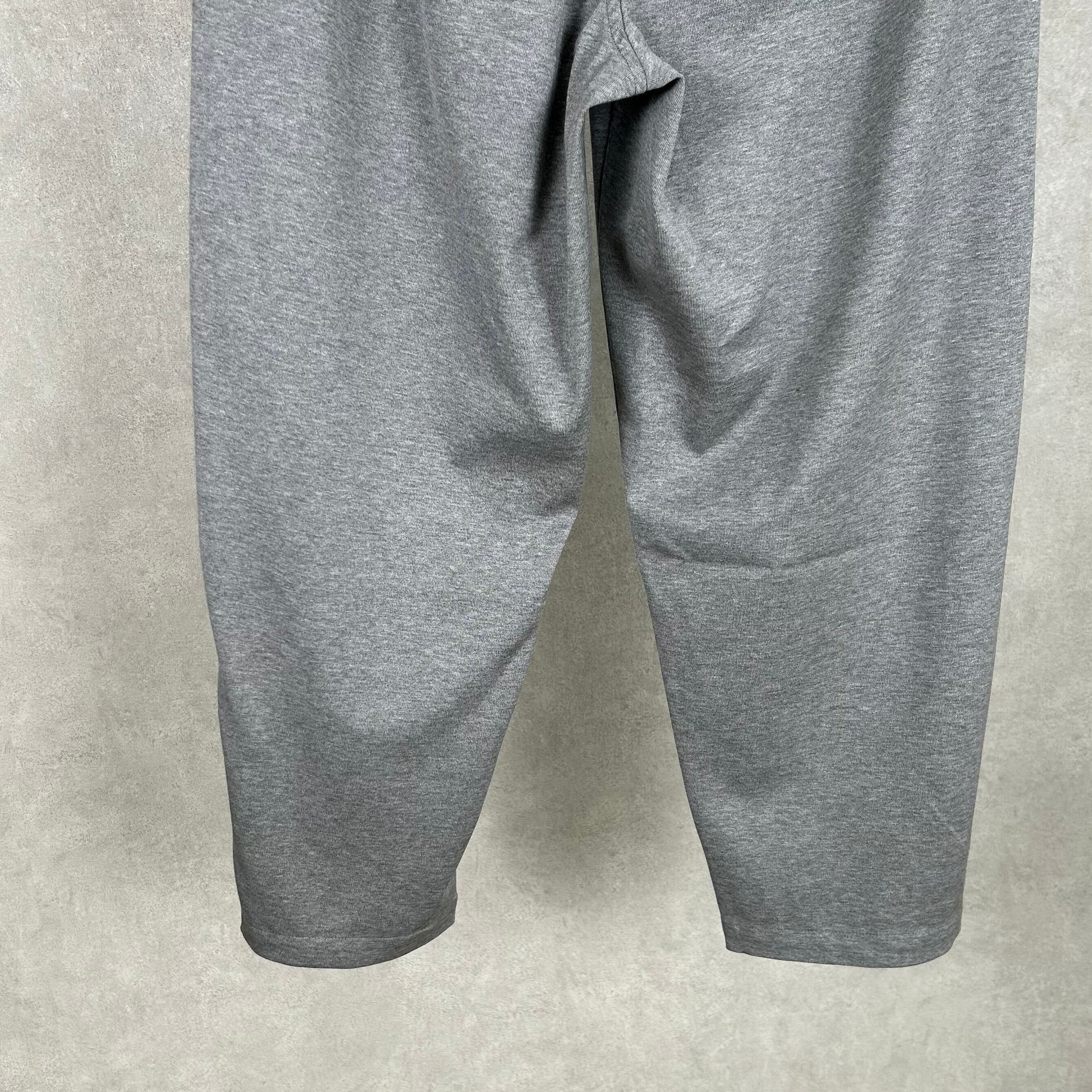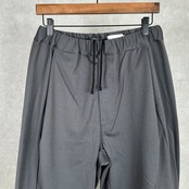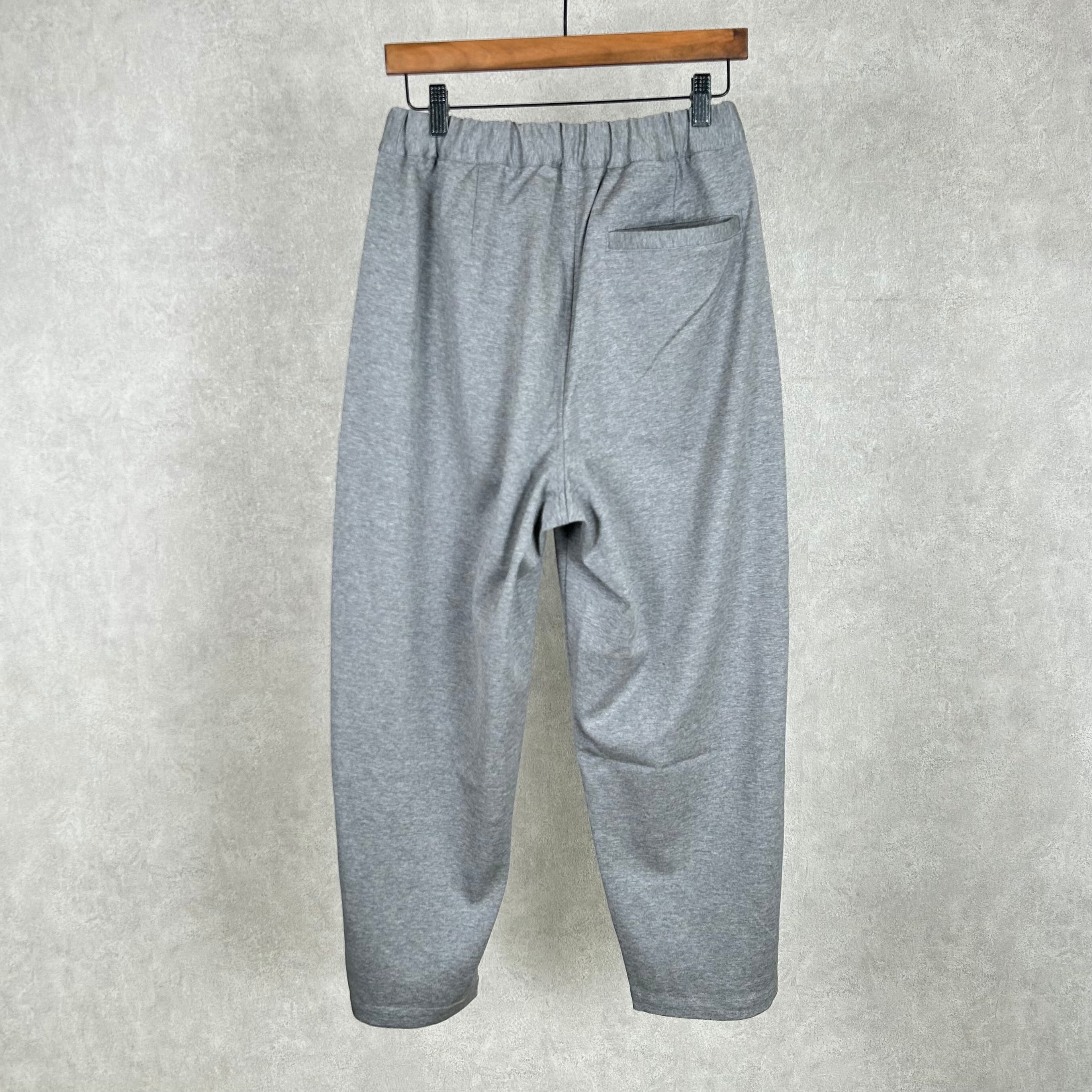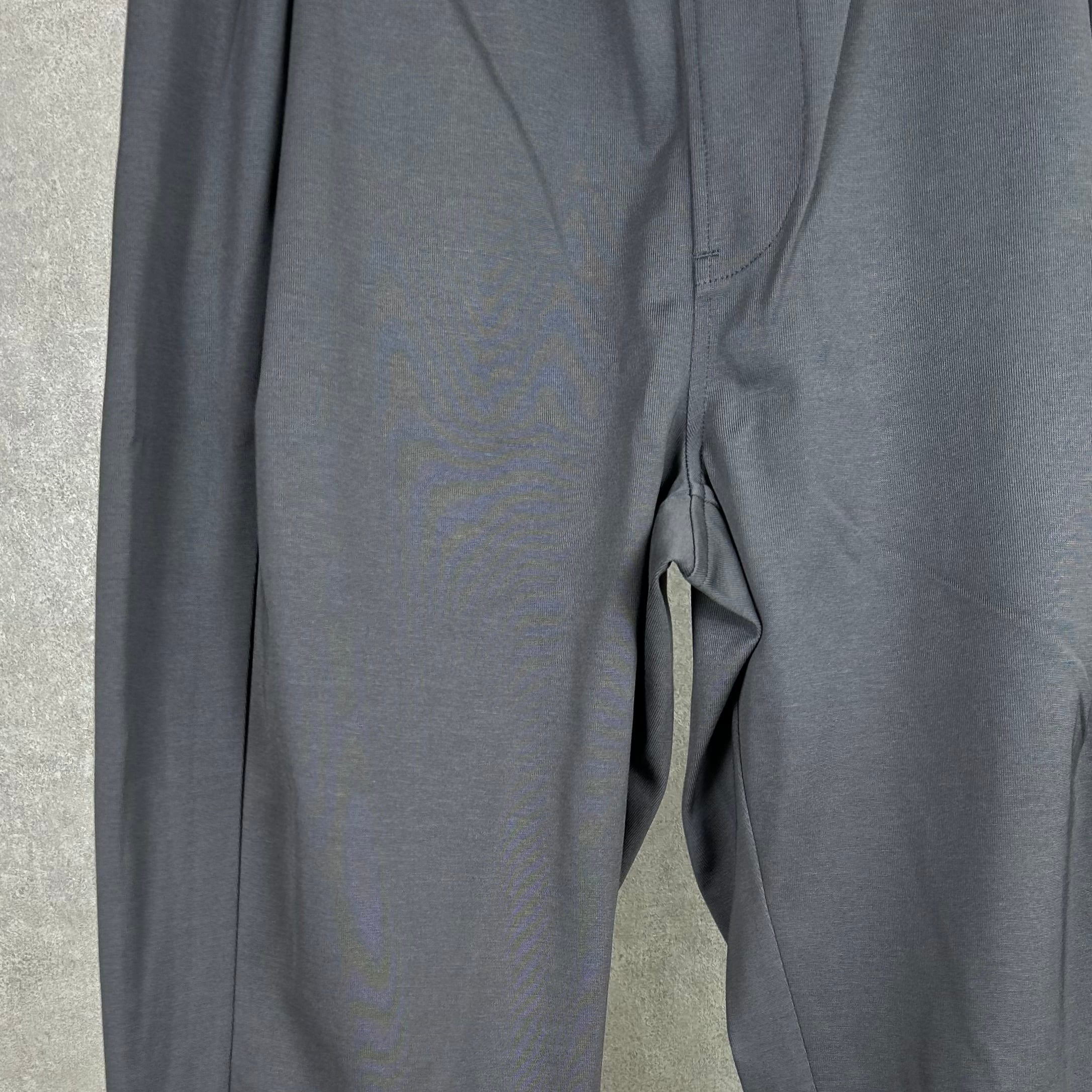 いわゆる「綺麗に穿けるスウェットパンツ」という視点で見ると、とてもバランスの良い仕上がり。カットソー素材のラフさはありつつも、すっきりとしたシルエットとクリーンな表情のおかげで、シャツやジャケットなどの綺麗めなアイテムとも自然に馴染みます。