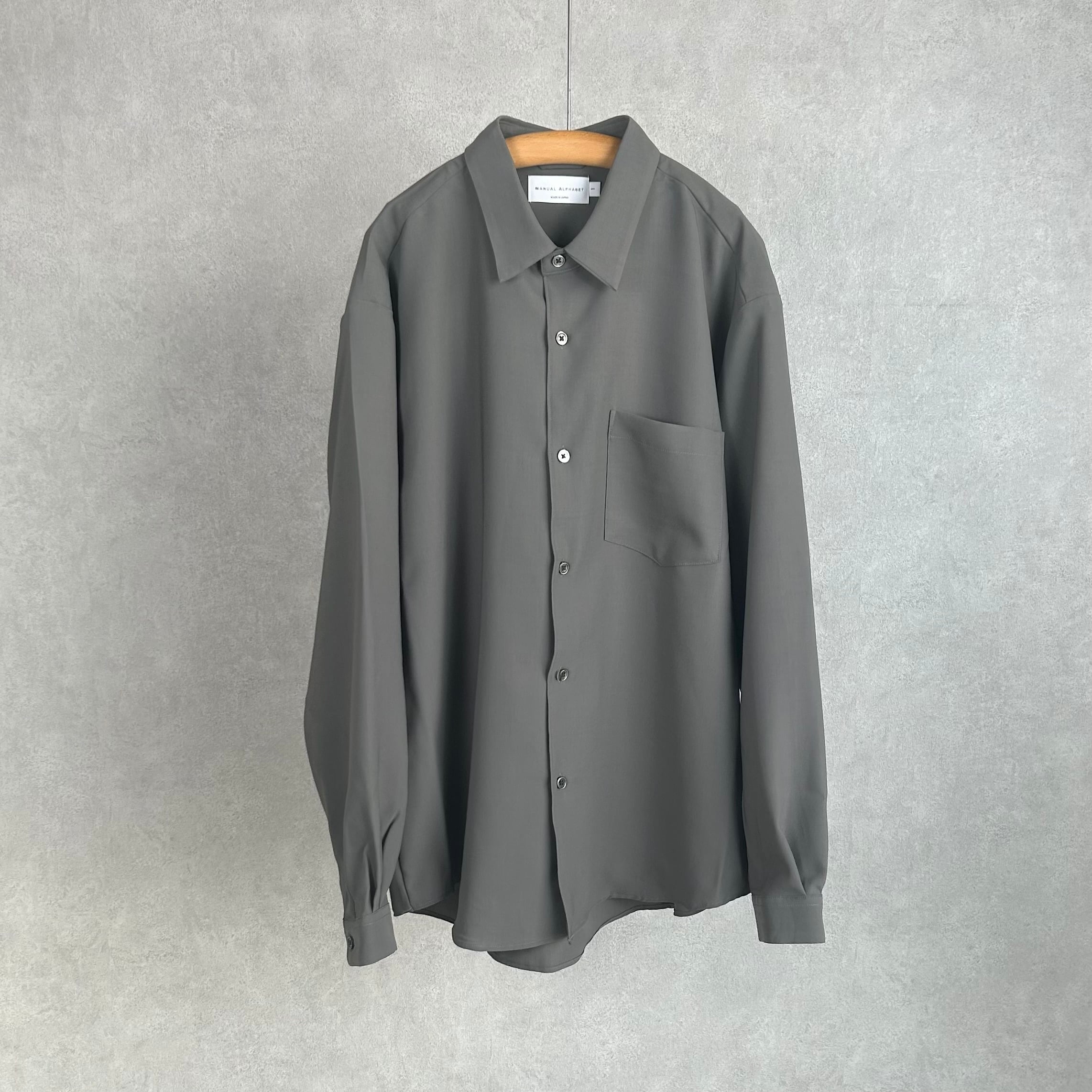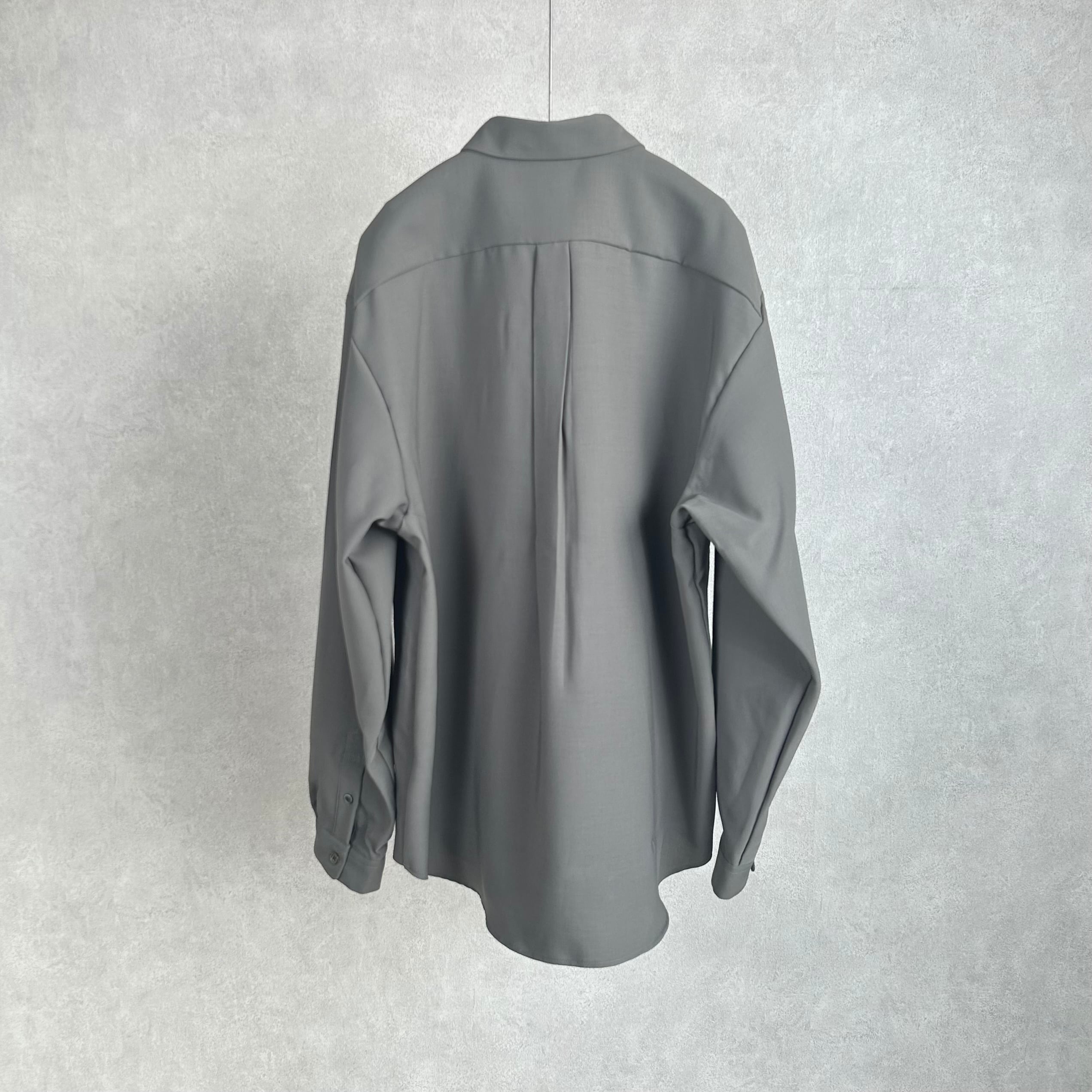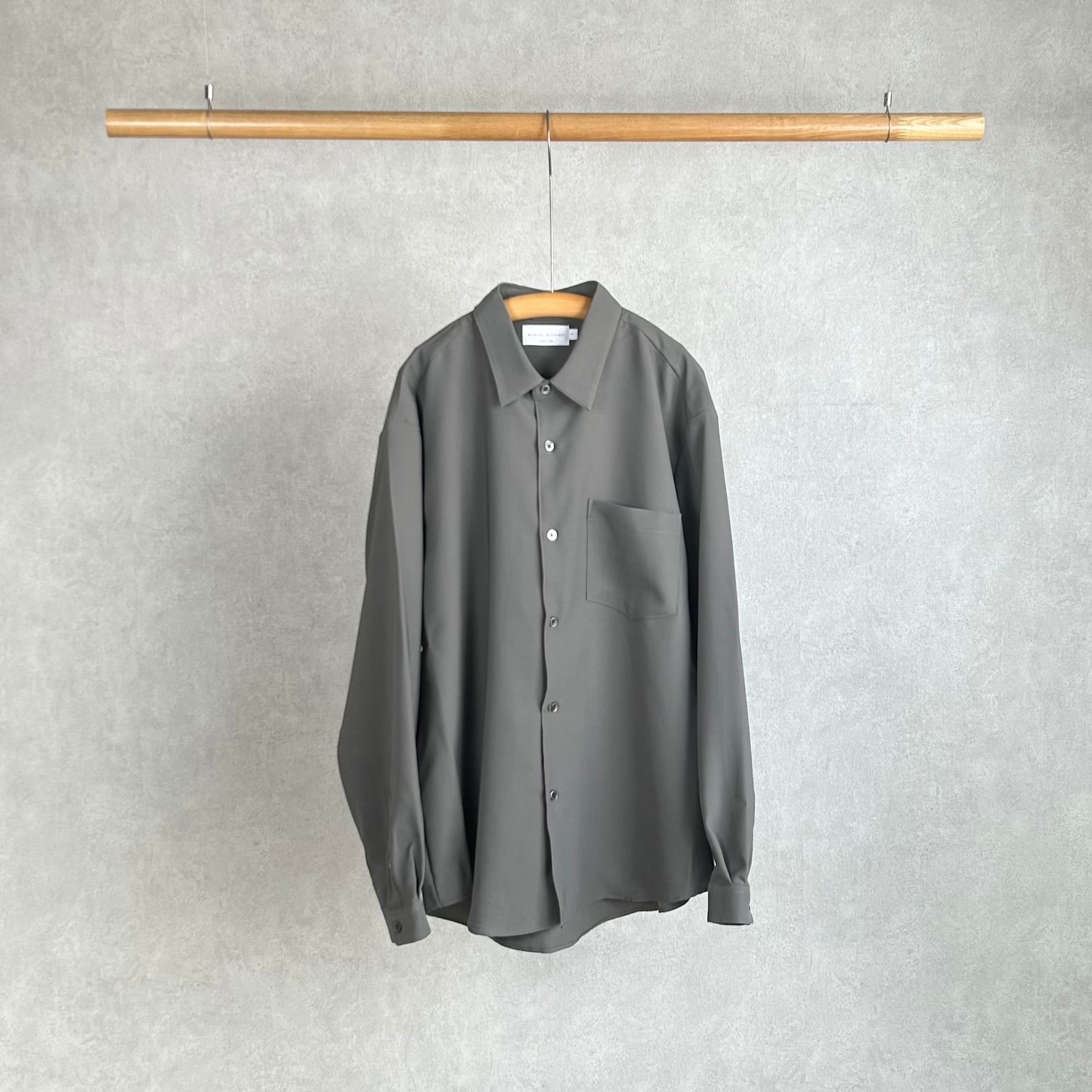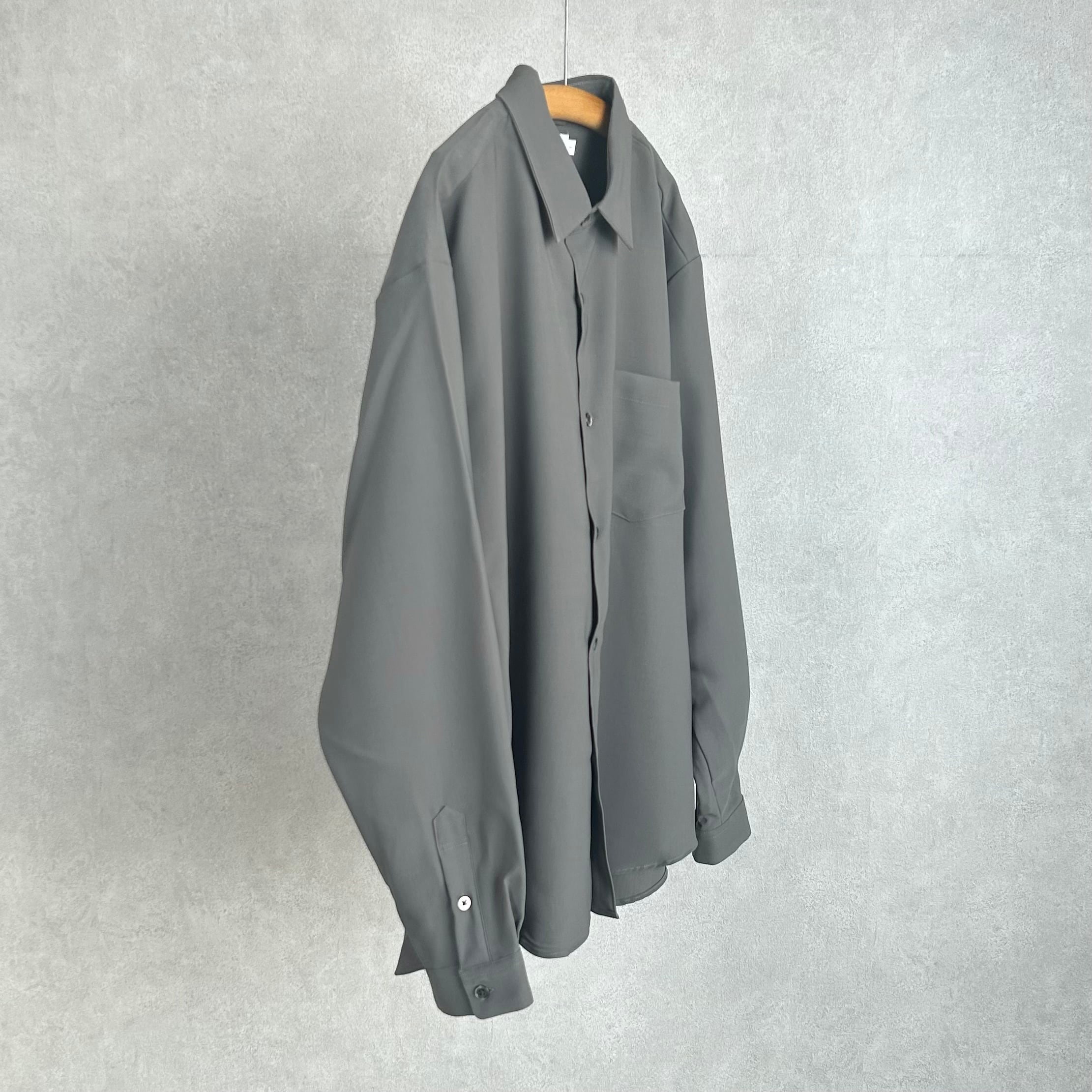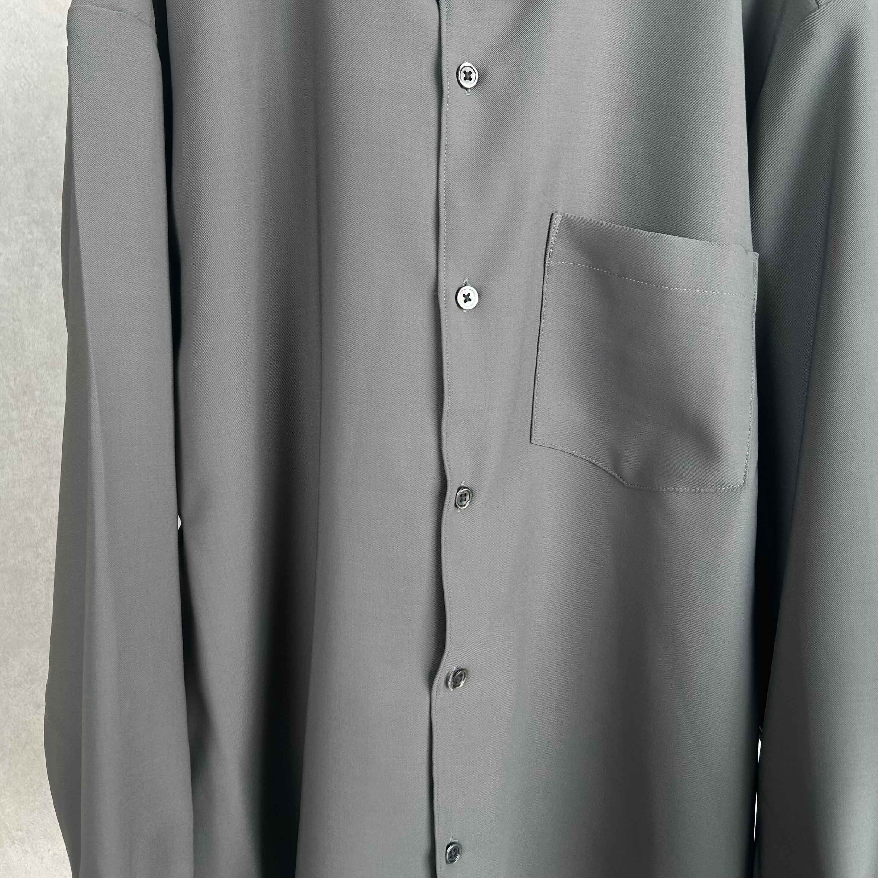 しなやかでとろみのあるウールライクなポリツイル生地を使用したワイドシャツ。