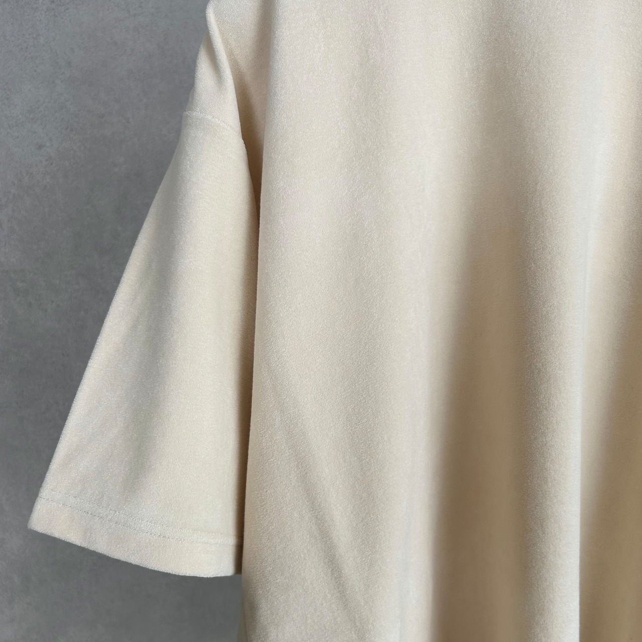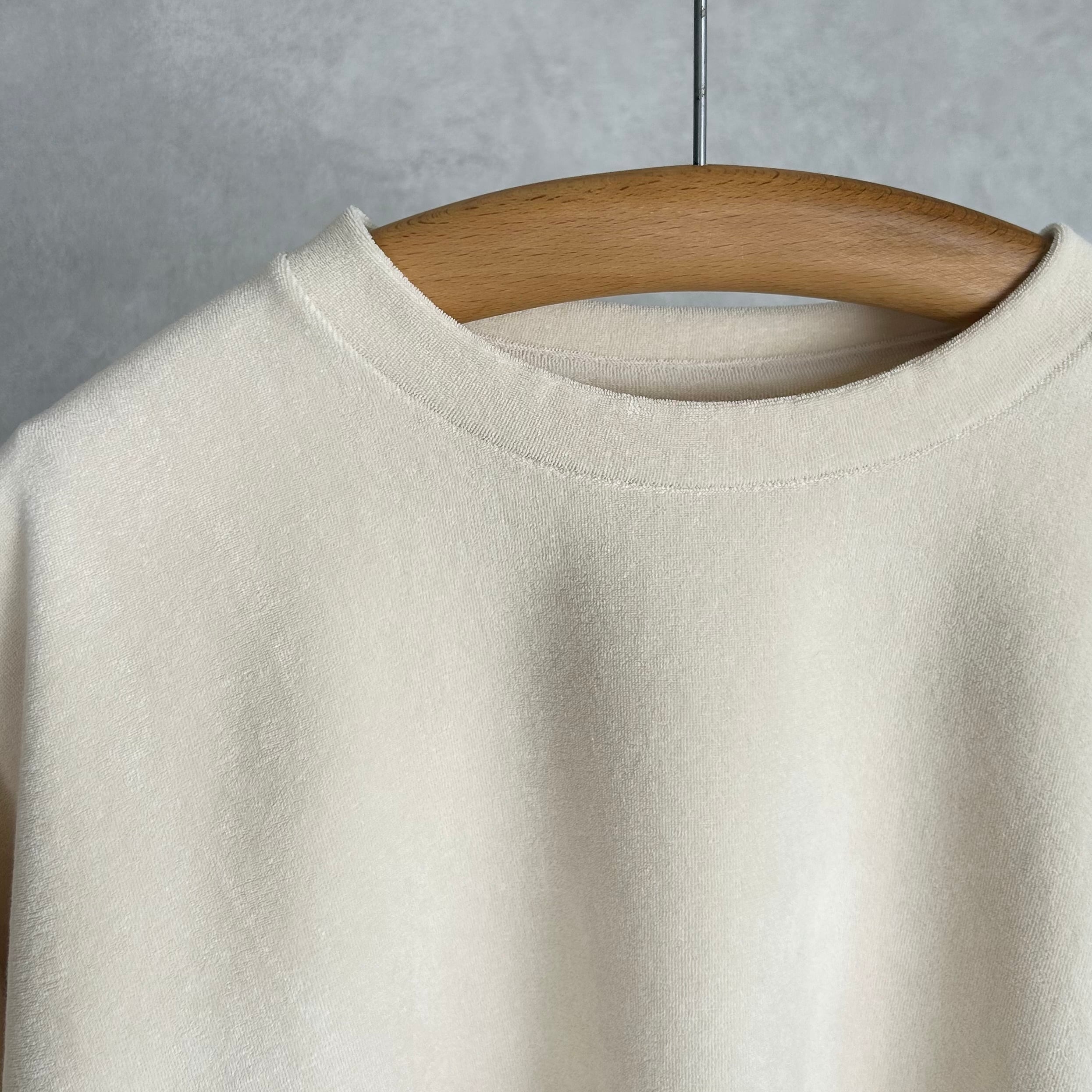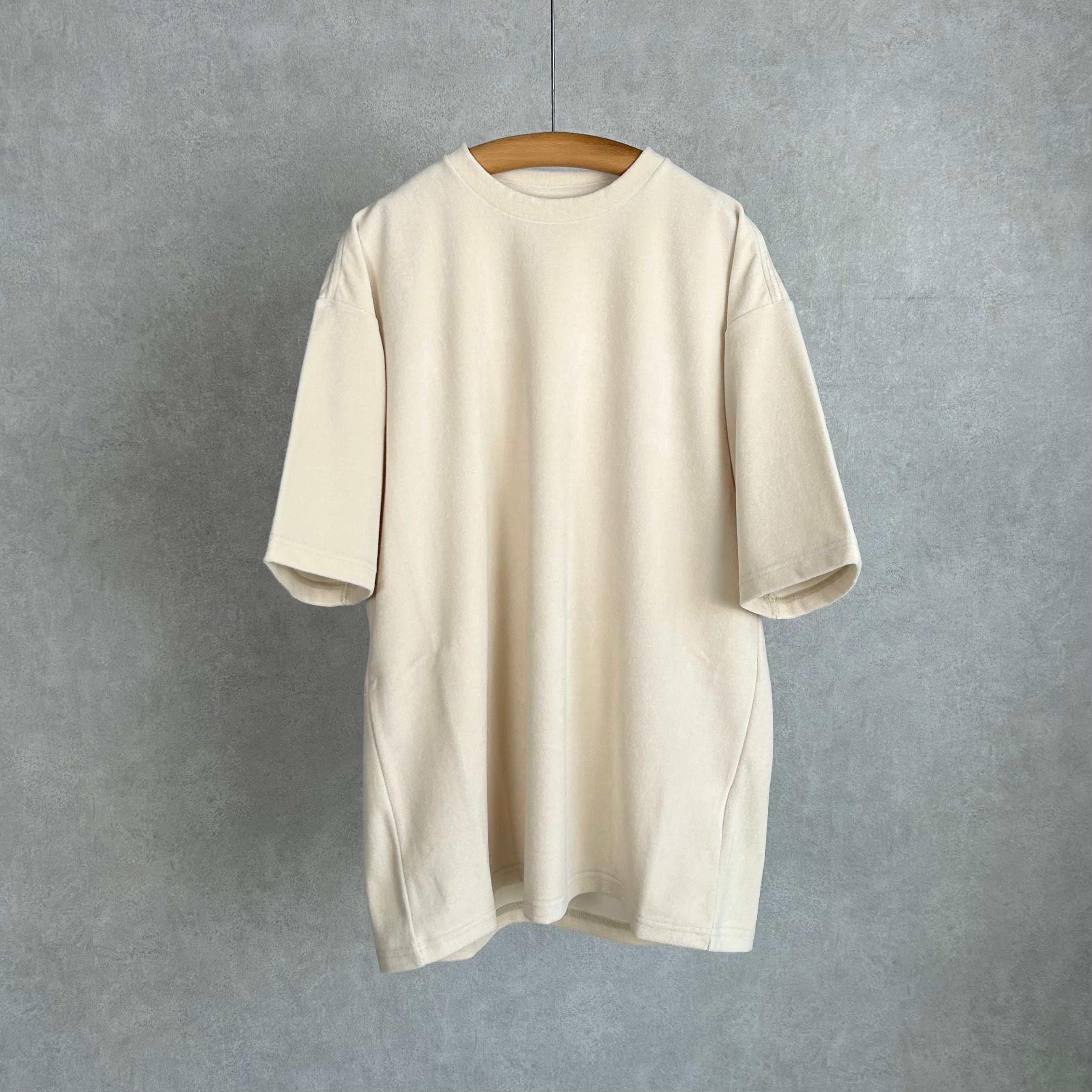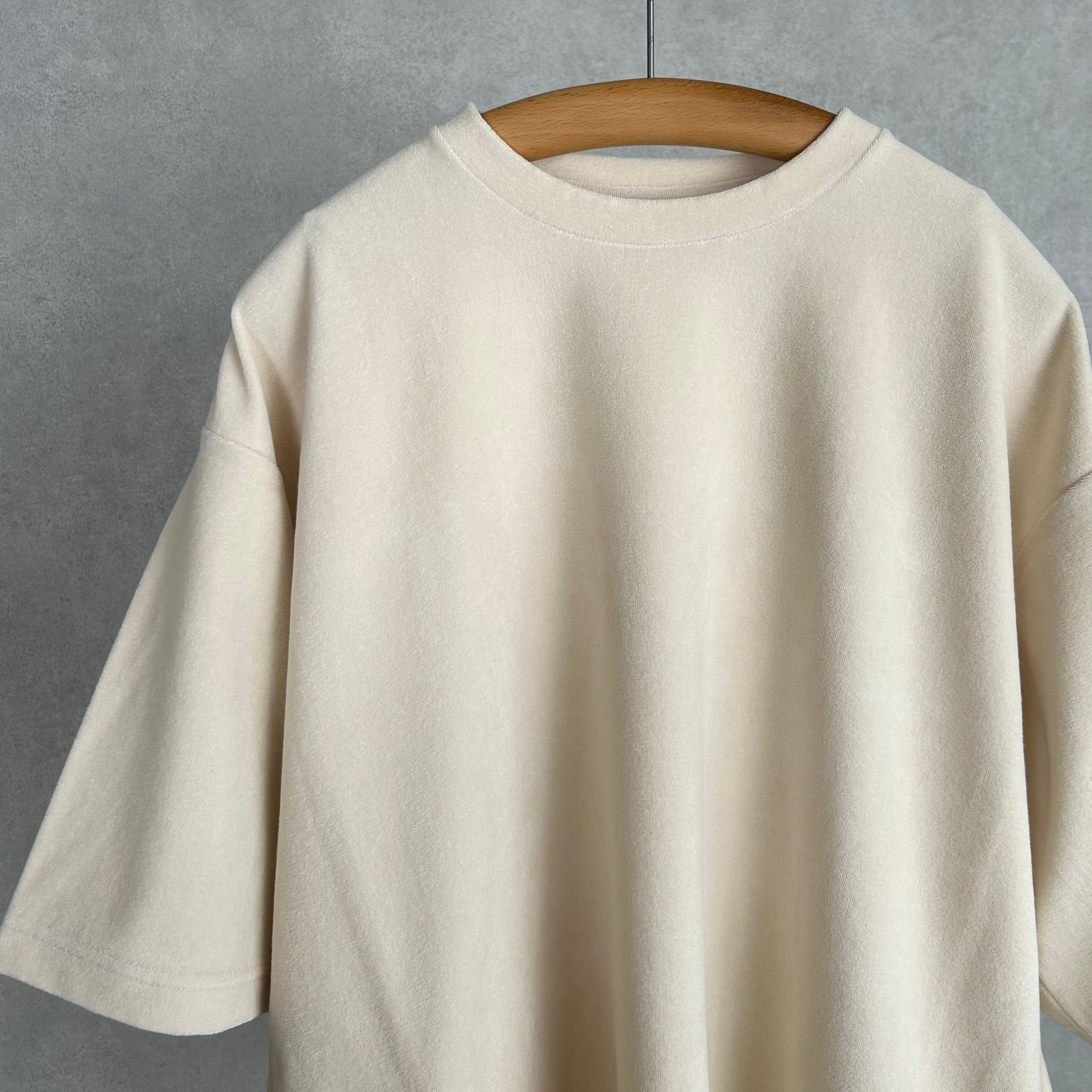 コンパクトに編み立てたハイゲージのパイル生地を使用した半袖カットソー。