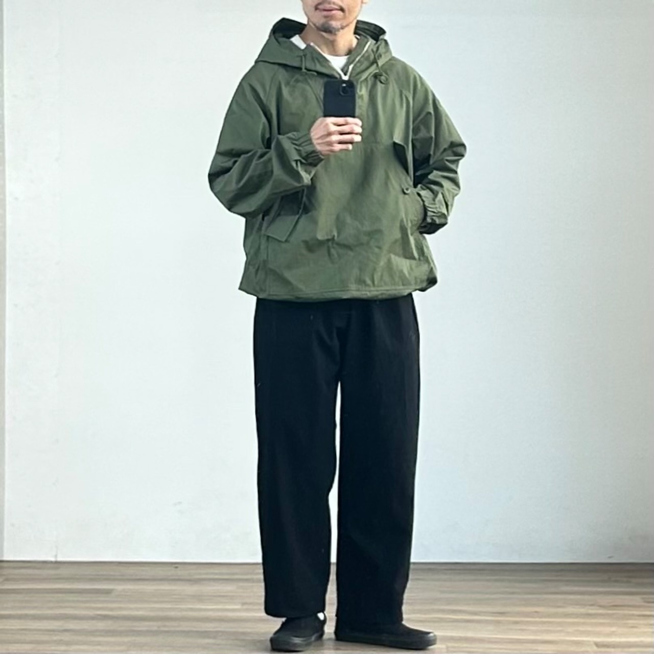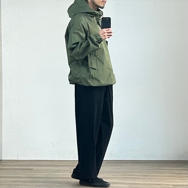 着丈はやや長めですが、裾に配したドローコードを絞ることで、シルエットと丈感の調整が可能。