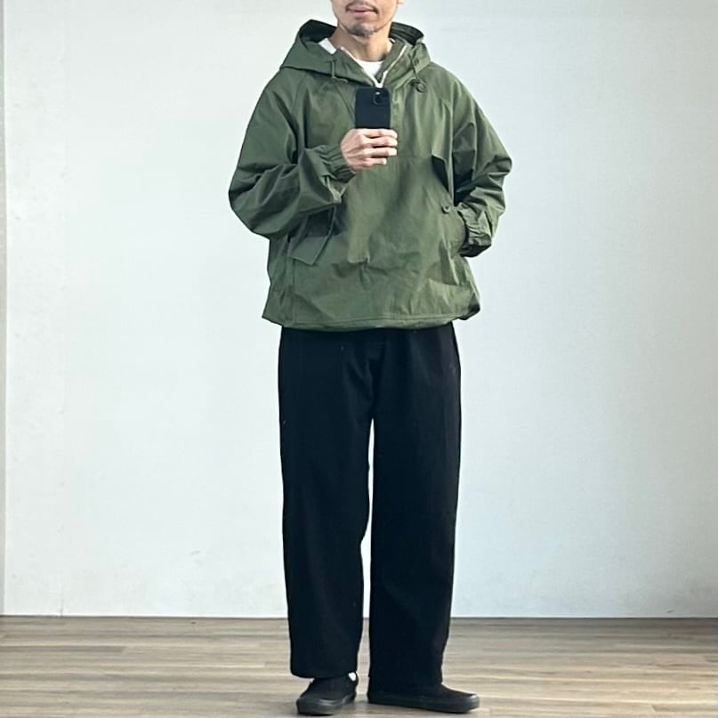 プルオーバー仕様ながら着脱のしやすさを考慮し、身幅はたっぷりと取ったオーバーシルエットに設計されています。