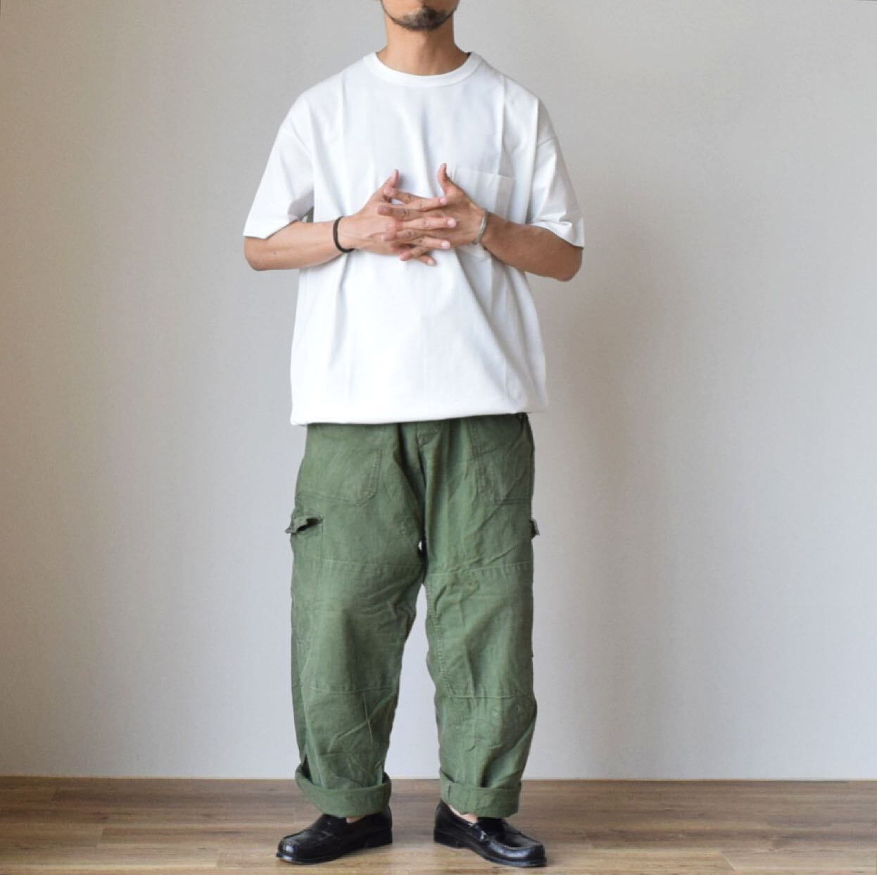 最近お気に入りの白Tとスウェーデン軍カーゴの組み合わせです。