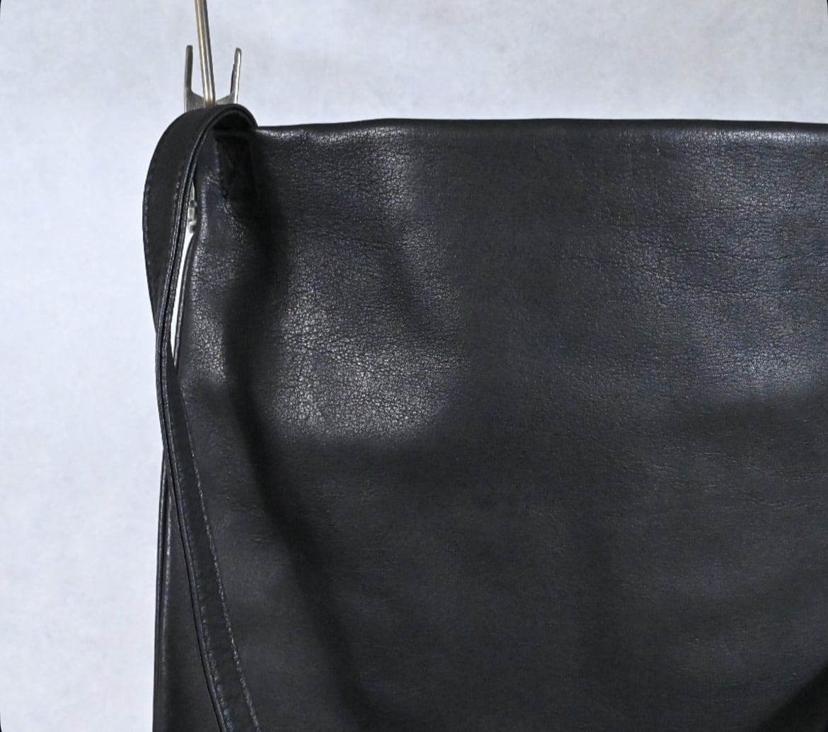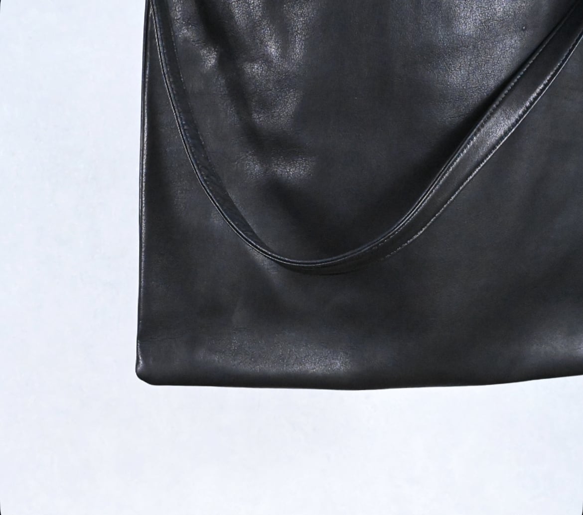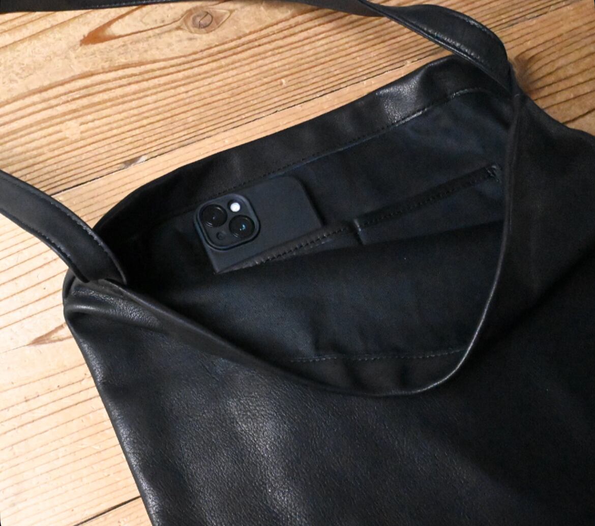 レザーとは思えない柔らかい質感がまるで体に沿うようにフィットして、さらにレザーとは思えない軽さがどんな持ち方もしやすい理由の一つです。