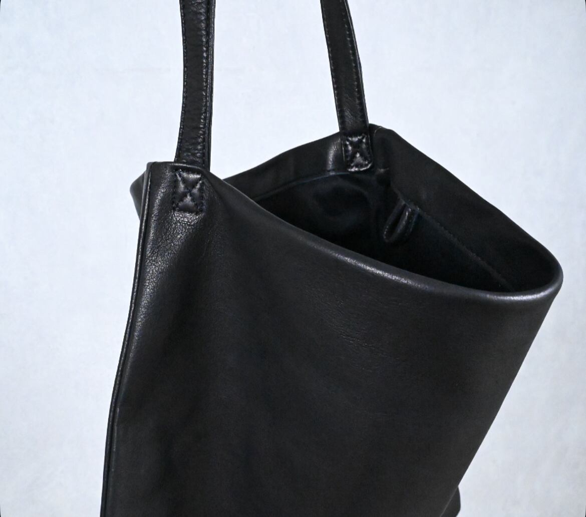 まずマチ無し縦横40㎝弱のスクエアシルエットのサイズ感がすごく使い勝手が良しです。