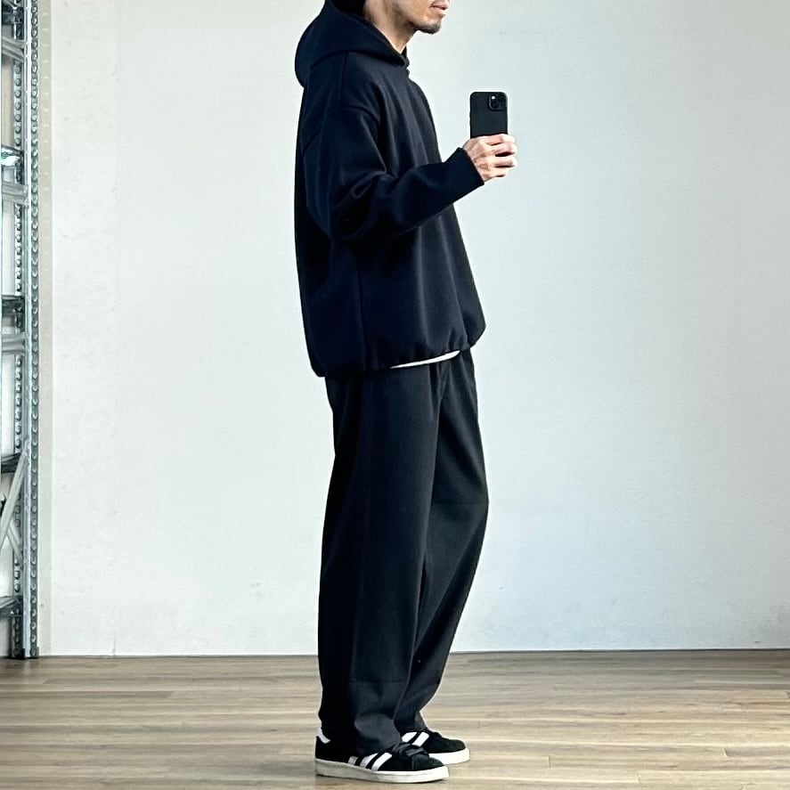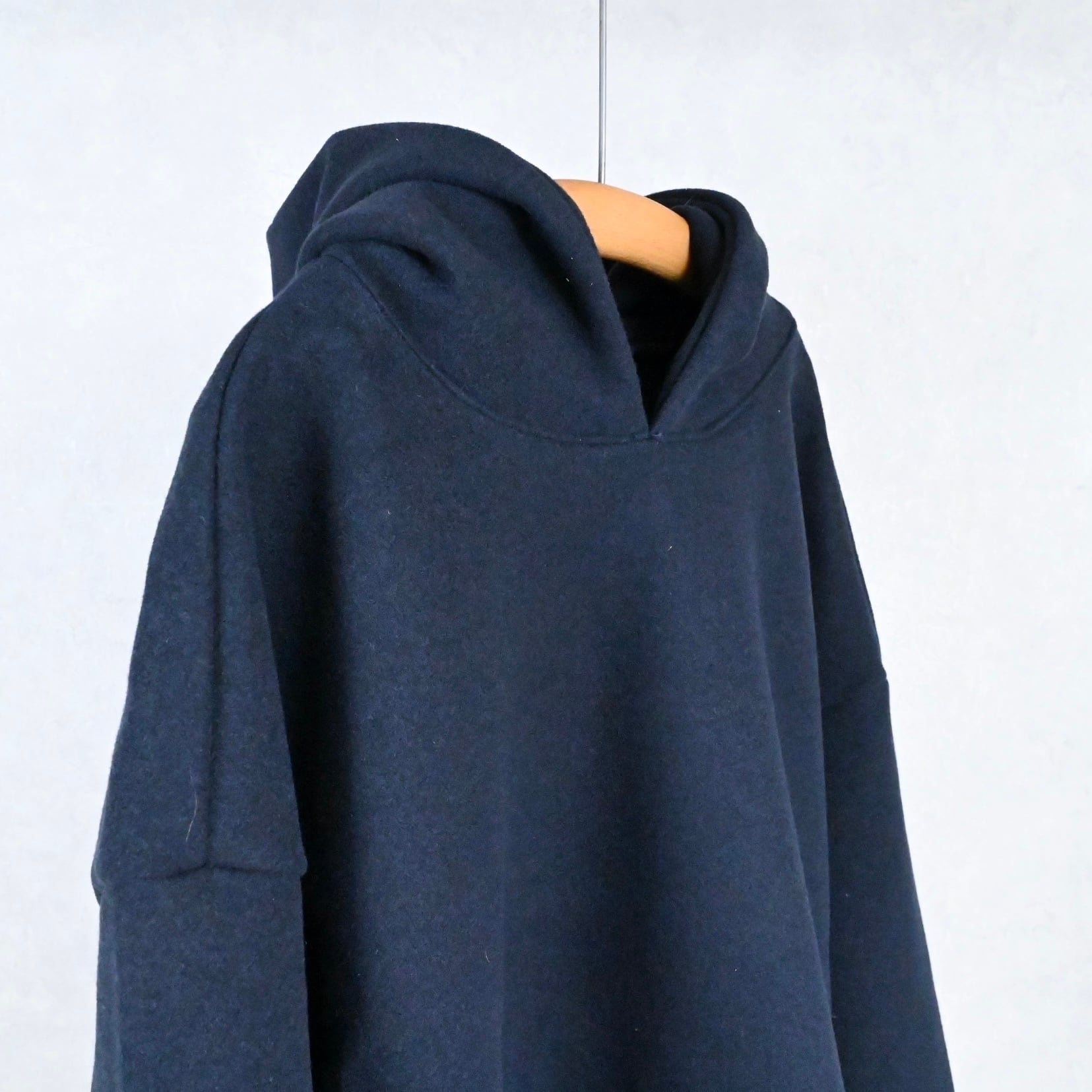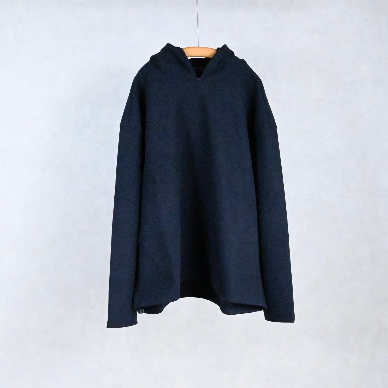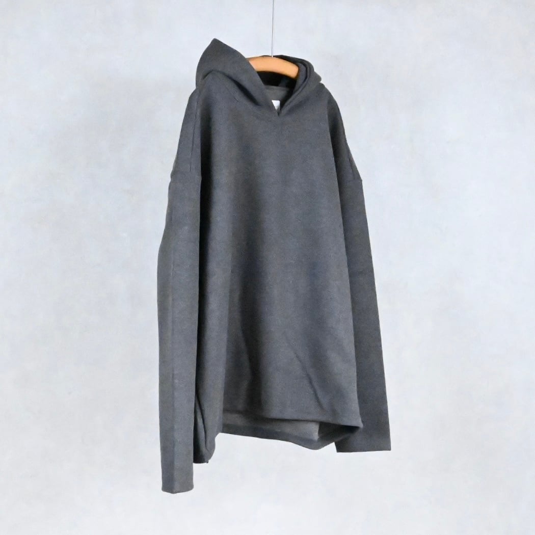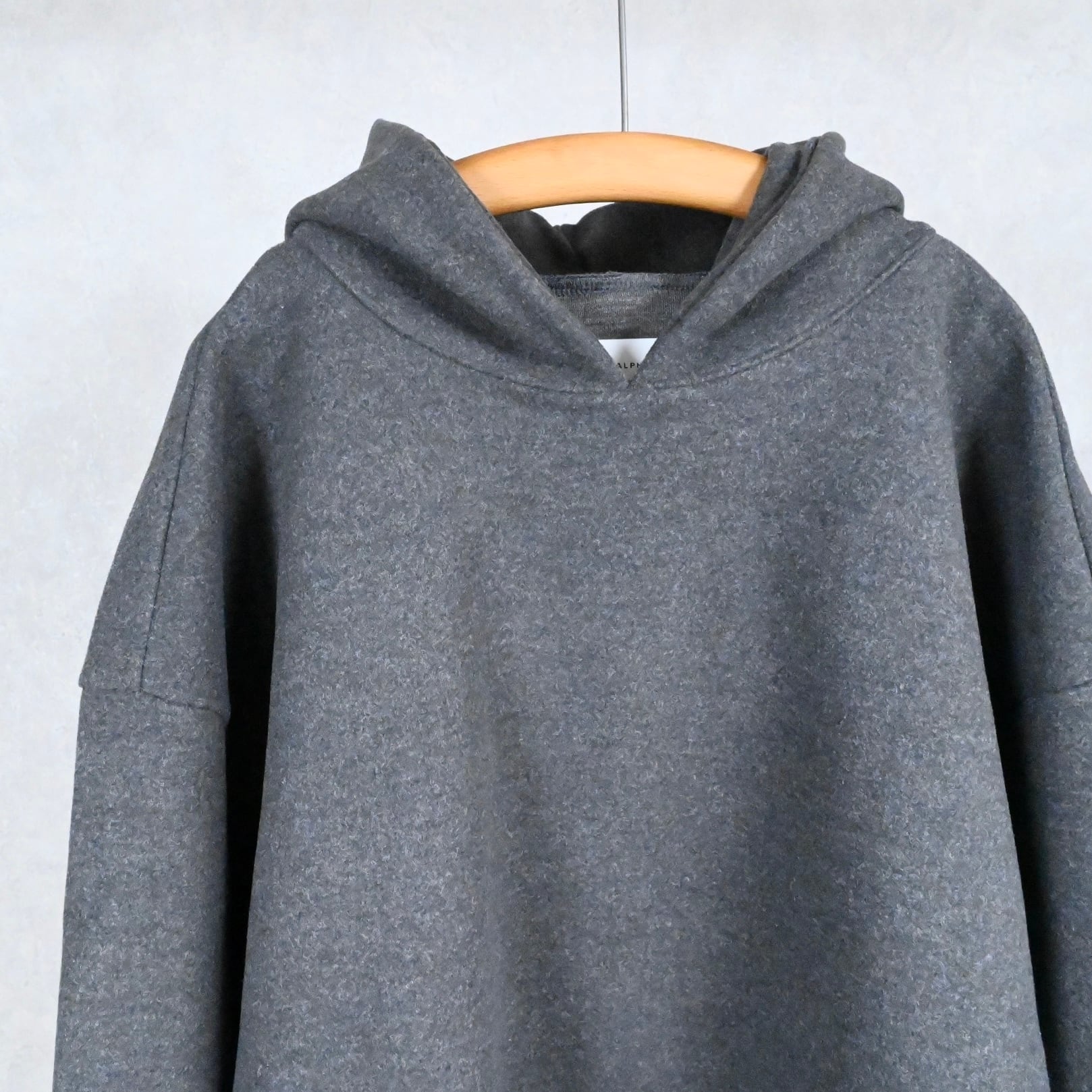 その間を絶妙に埋めてくれるのが、このウールライク・メルトンジャージーのプルオーバーパーカーです。