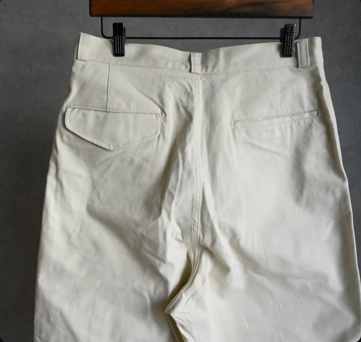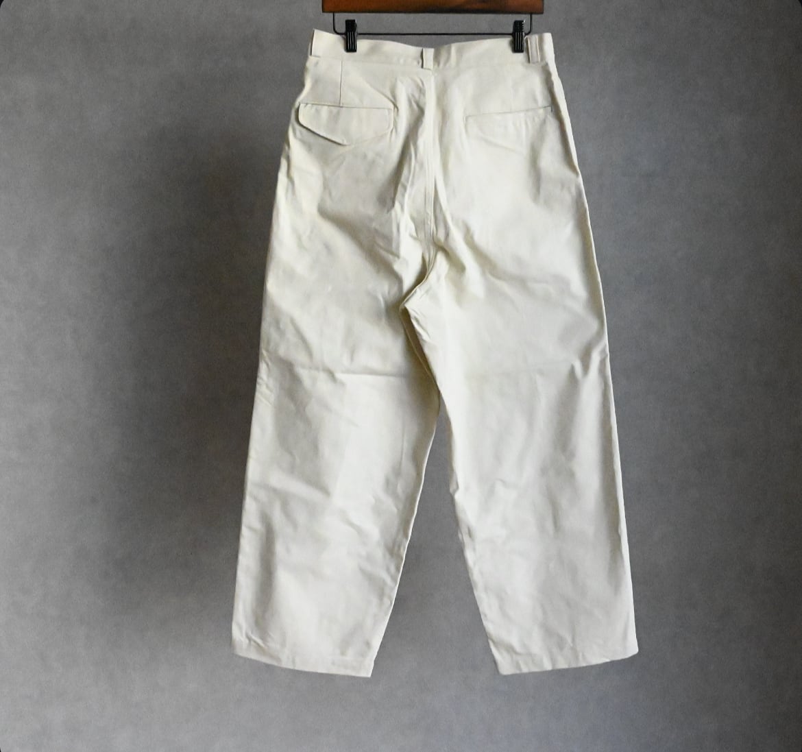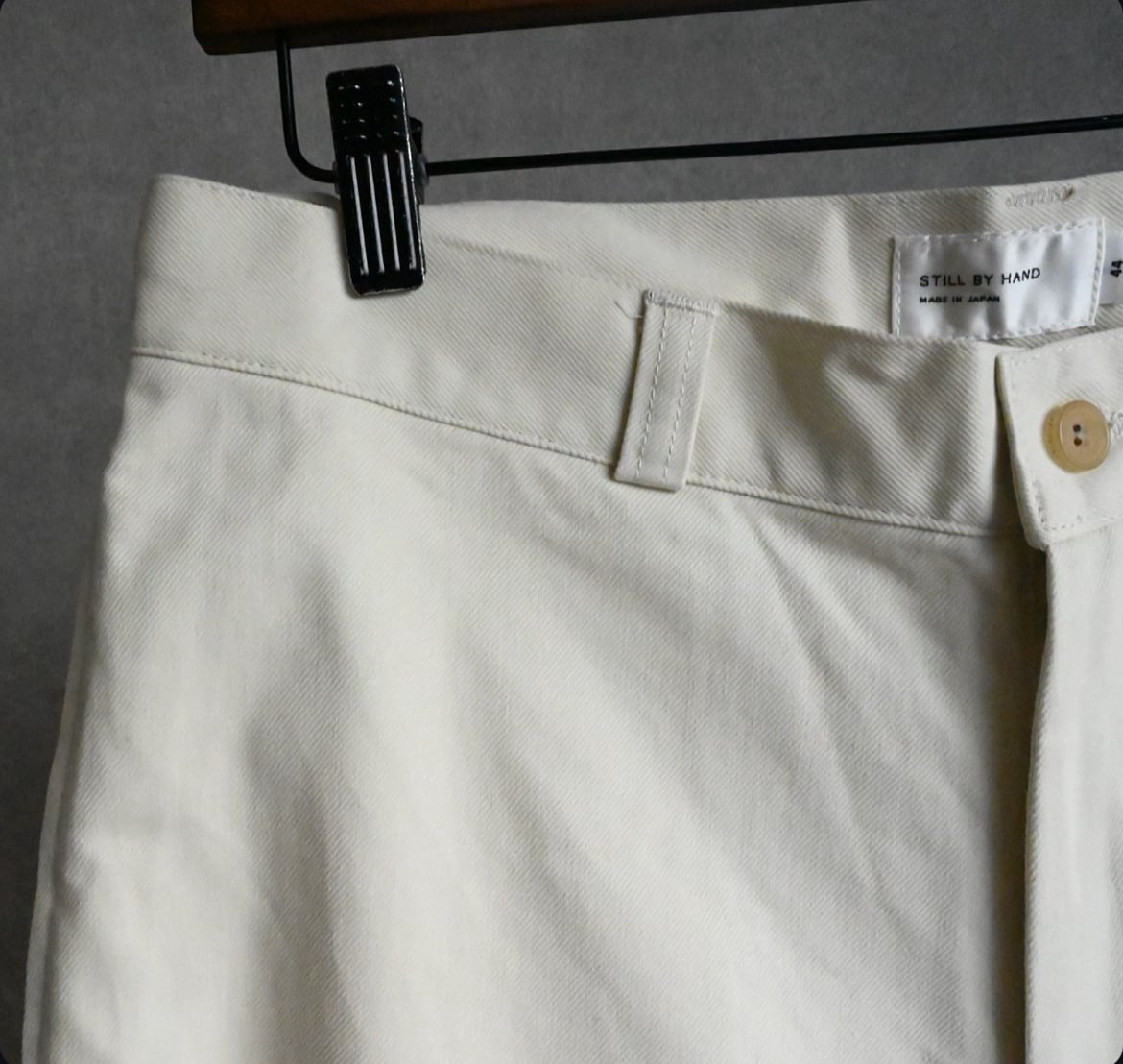 STILL BY HANDのデザイナーはワンタックから多い時には3タックまで使い分けてふんわりとしたワイドシルエットを作り出すのがとても上手いので「タックの魔術師」と僕は勝手に命名してるくらいですが、今回は敢えてのノータック仕立て。