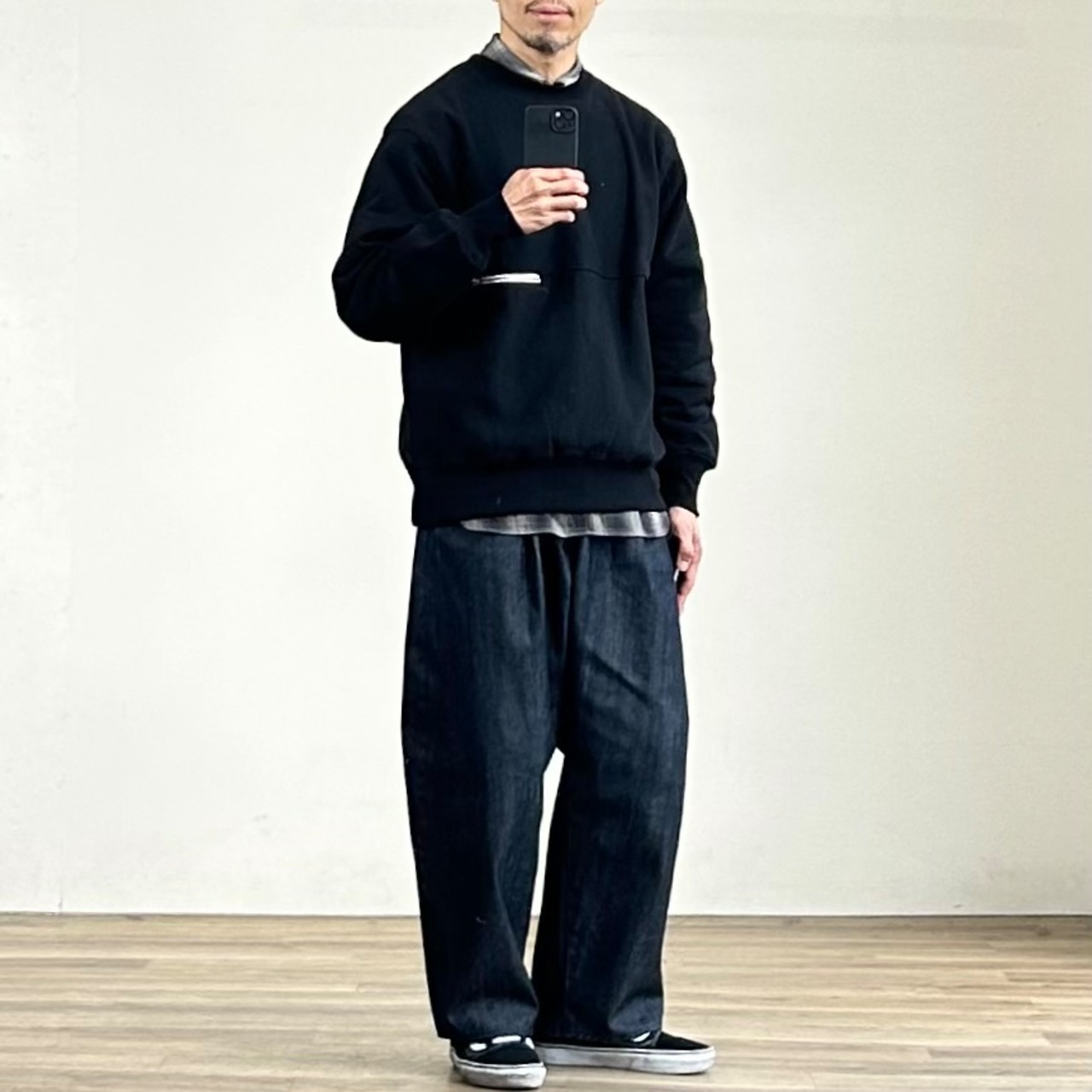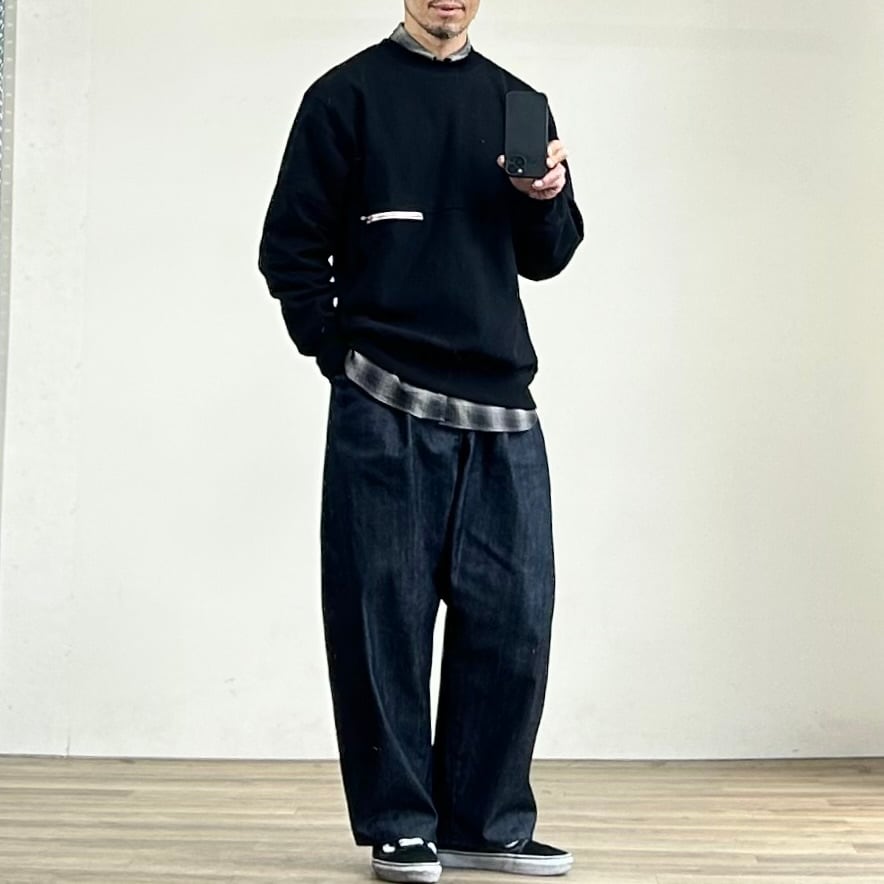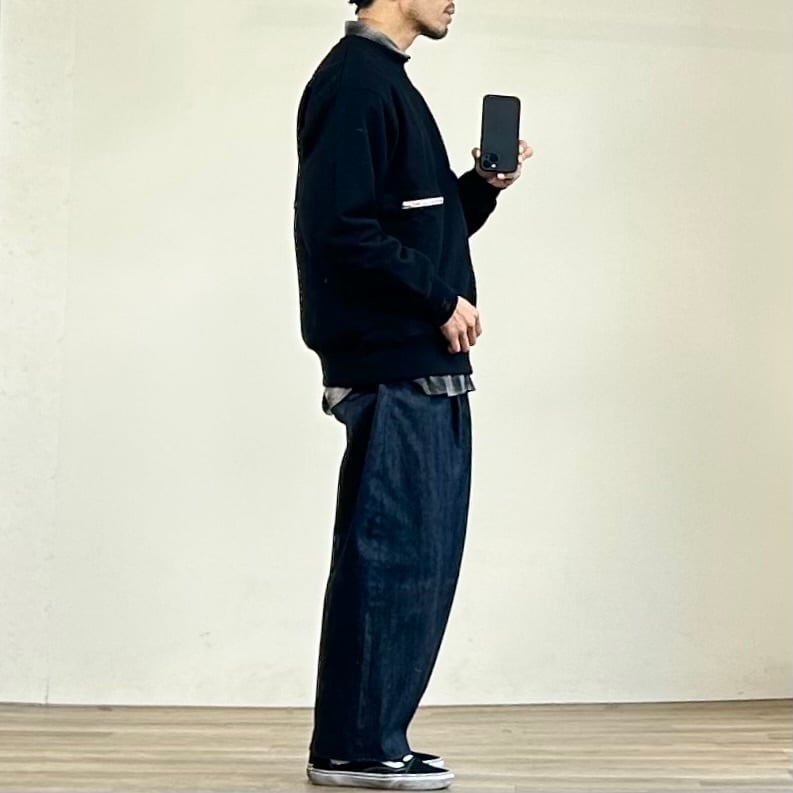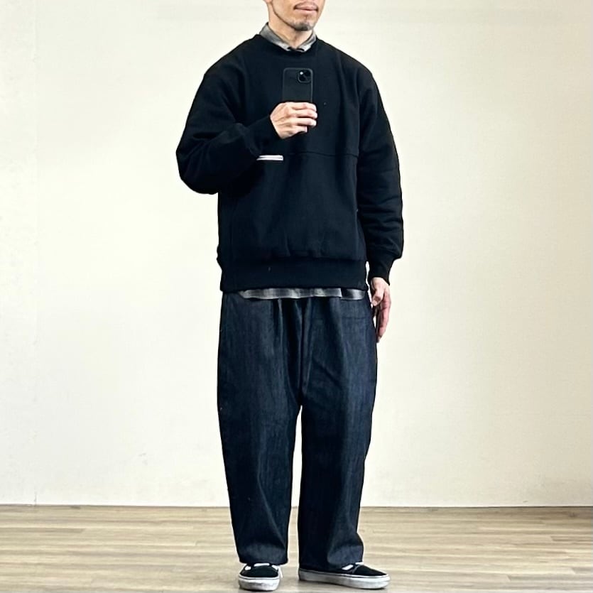 洗濯で若干の縮みがあるんですが、それを踏まえても基本はいつものサイズで程よく緩いスウェットらしいシルエットで着こなせるかと。