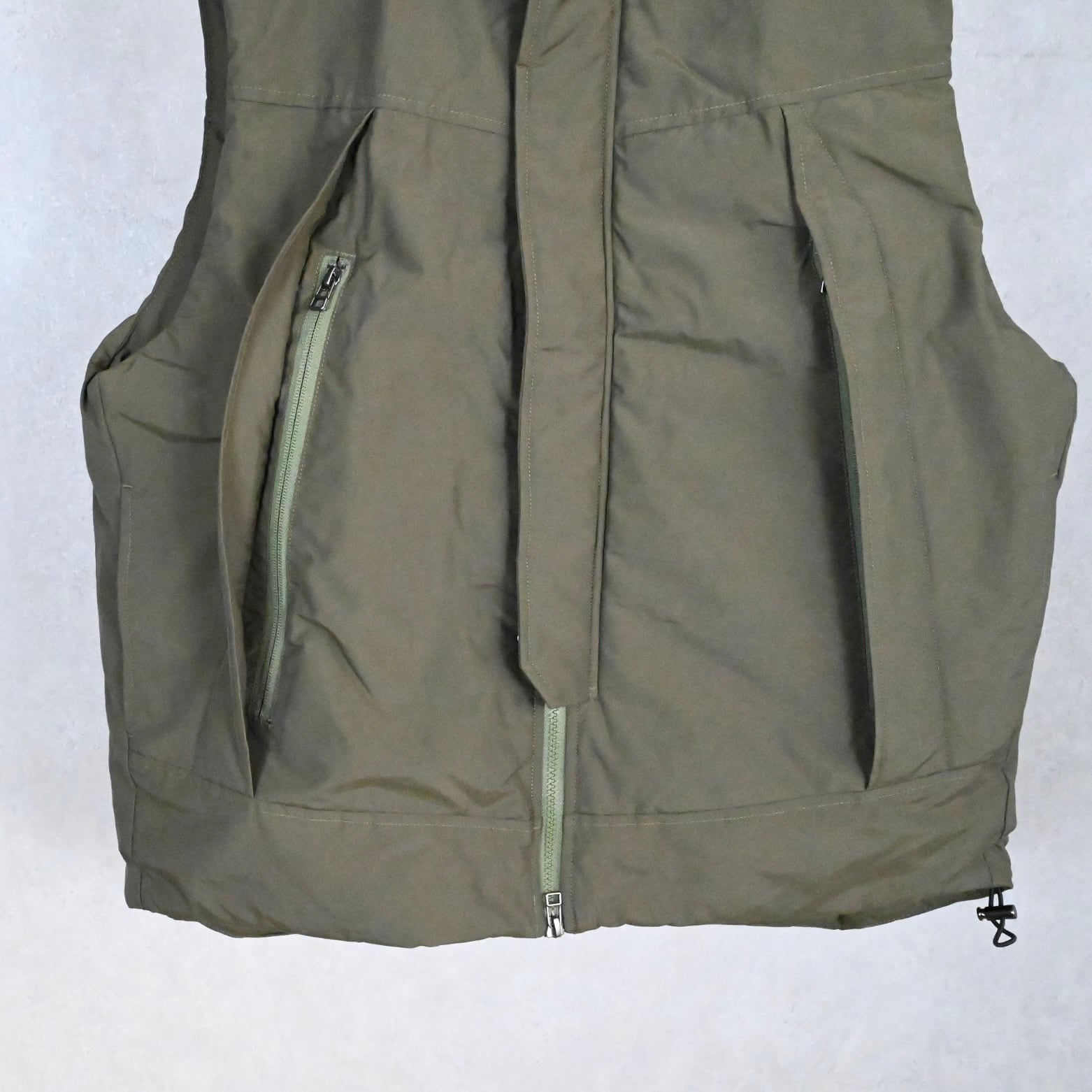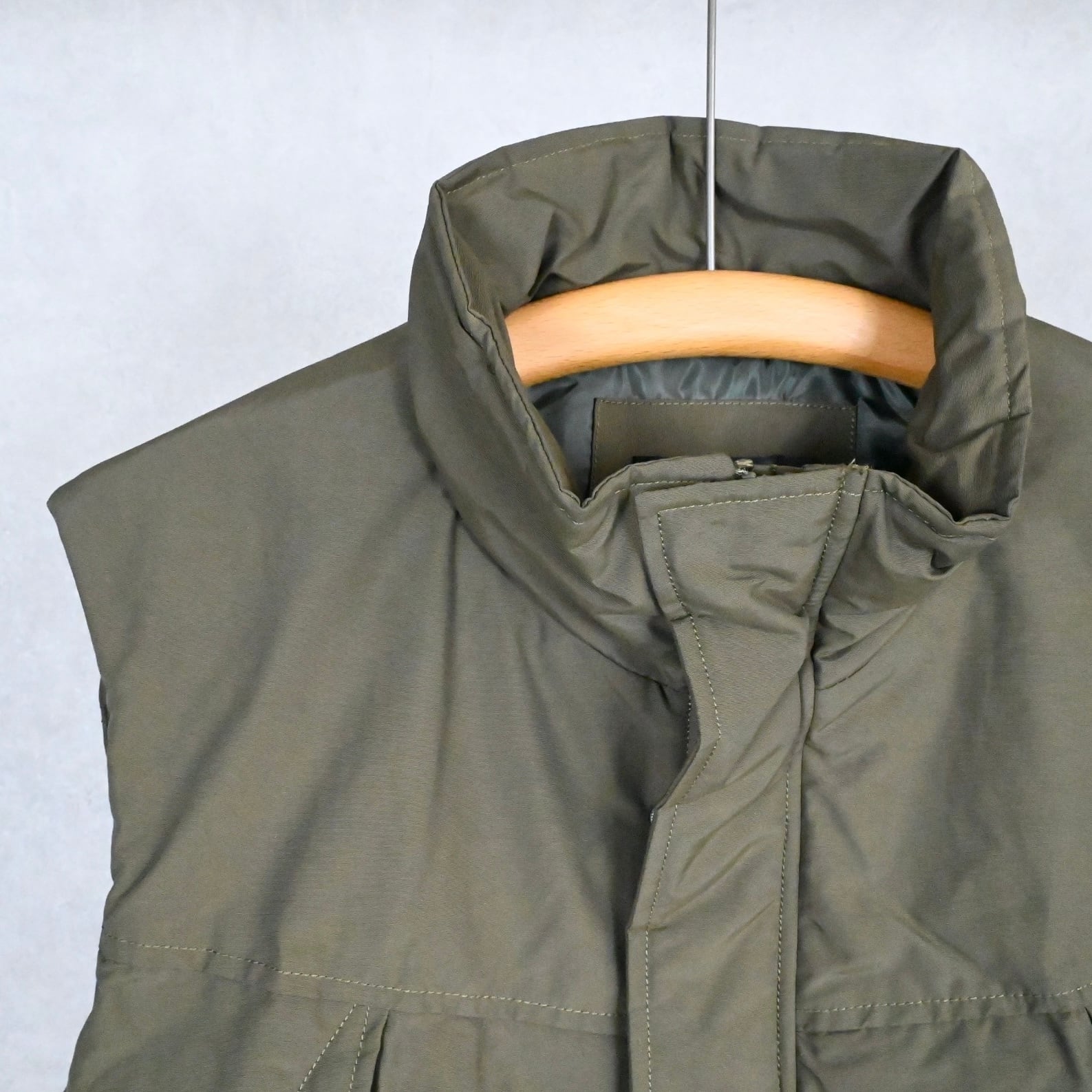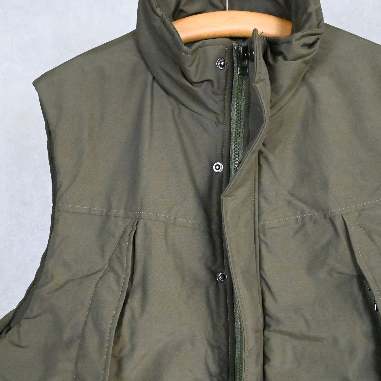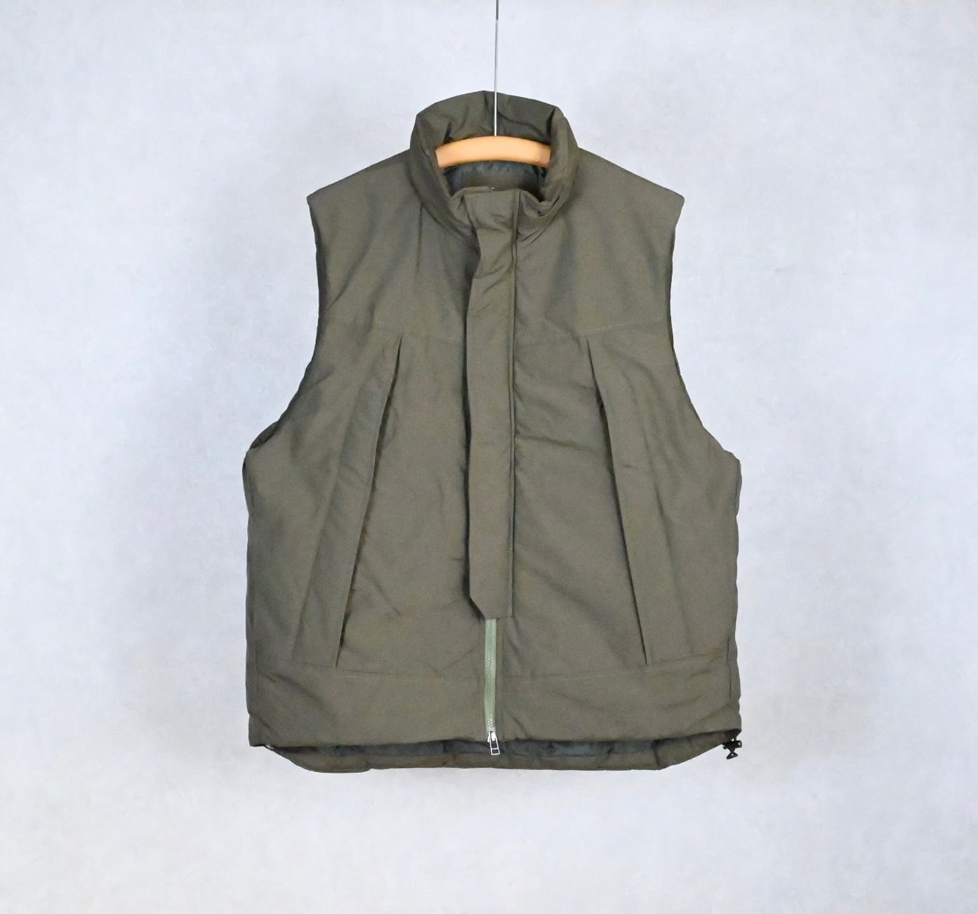 ミドルレイヤー使いを想定しての設計ではなく、あくまでアウターとしての提案のオーバーサイズベスト。