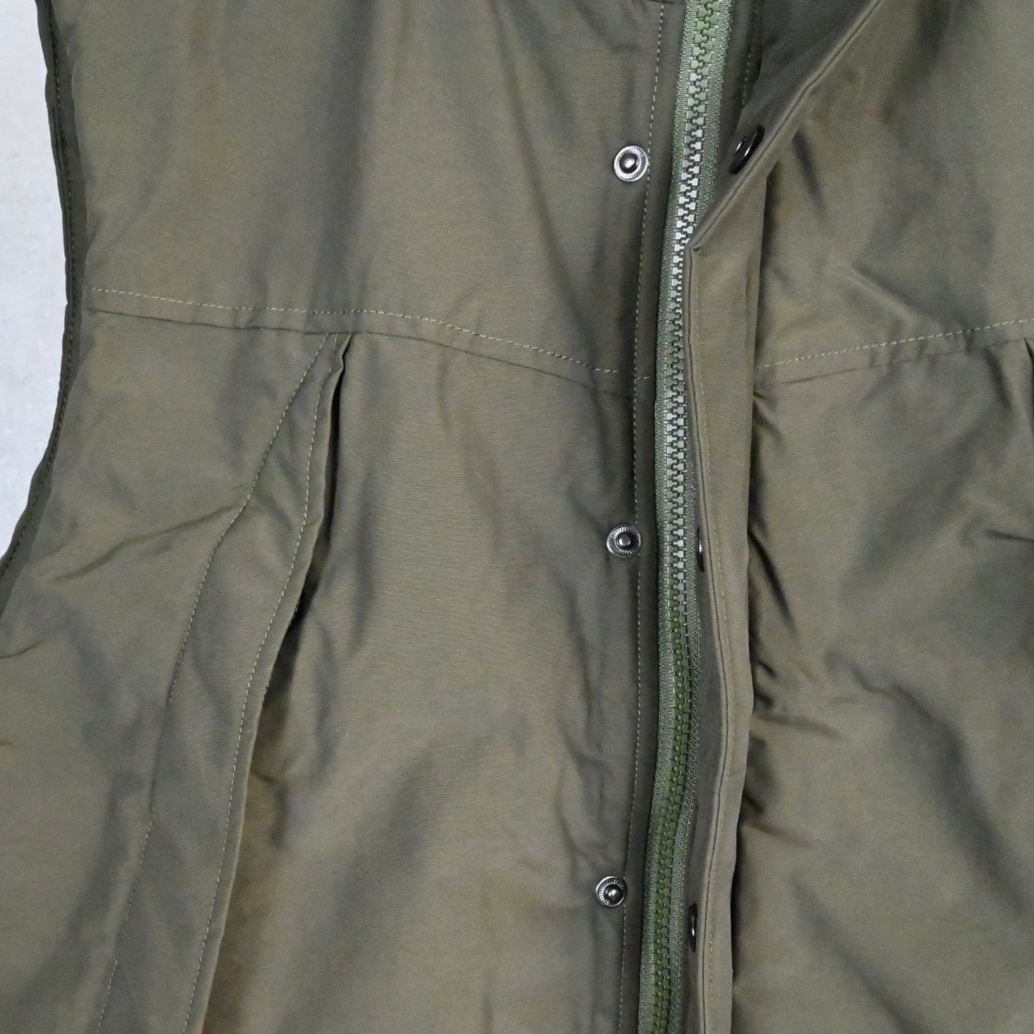 細かなディティールを踏襲しながら、現代的なシルエット、フィット感にアップデートしています。モンスターパーカーの仕様でもある、フロントジップを隠す前立てをプラスして、フロントジップを開けて着用した際のバランスも考慮。