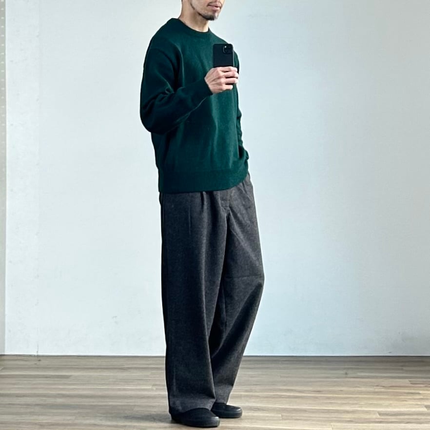 リラックス感とスッキリしたバランスを両立した、扱いやすいシルエットに仕上がっています。