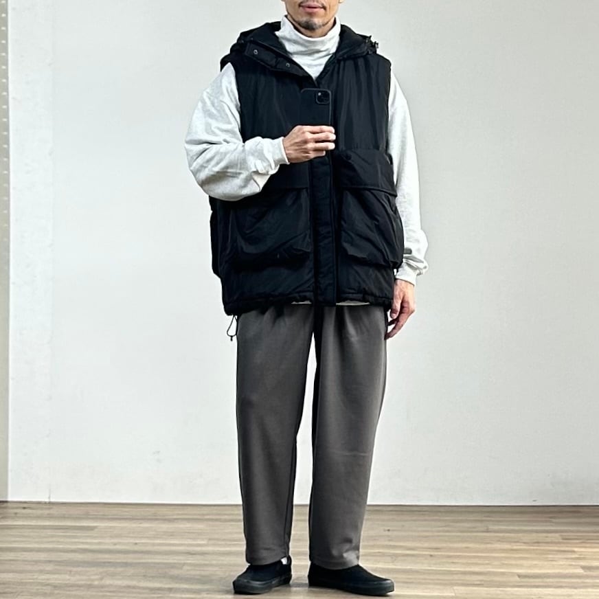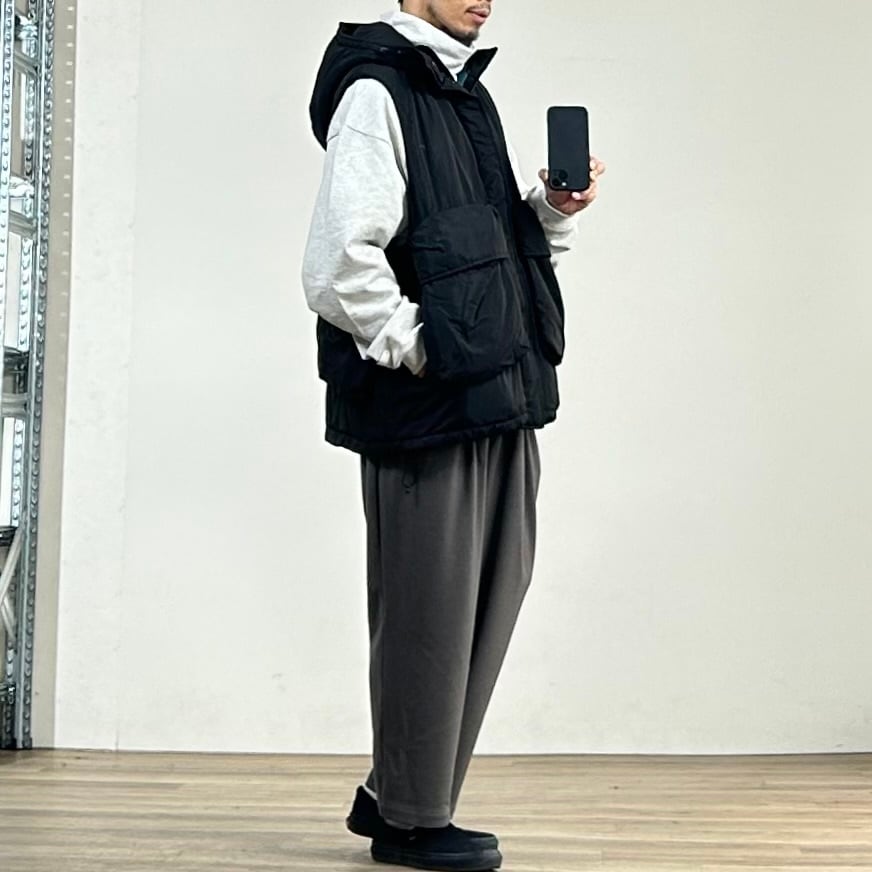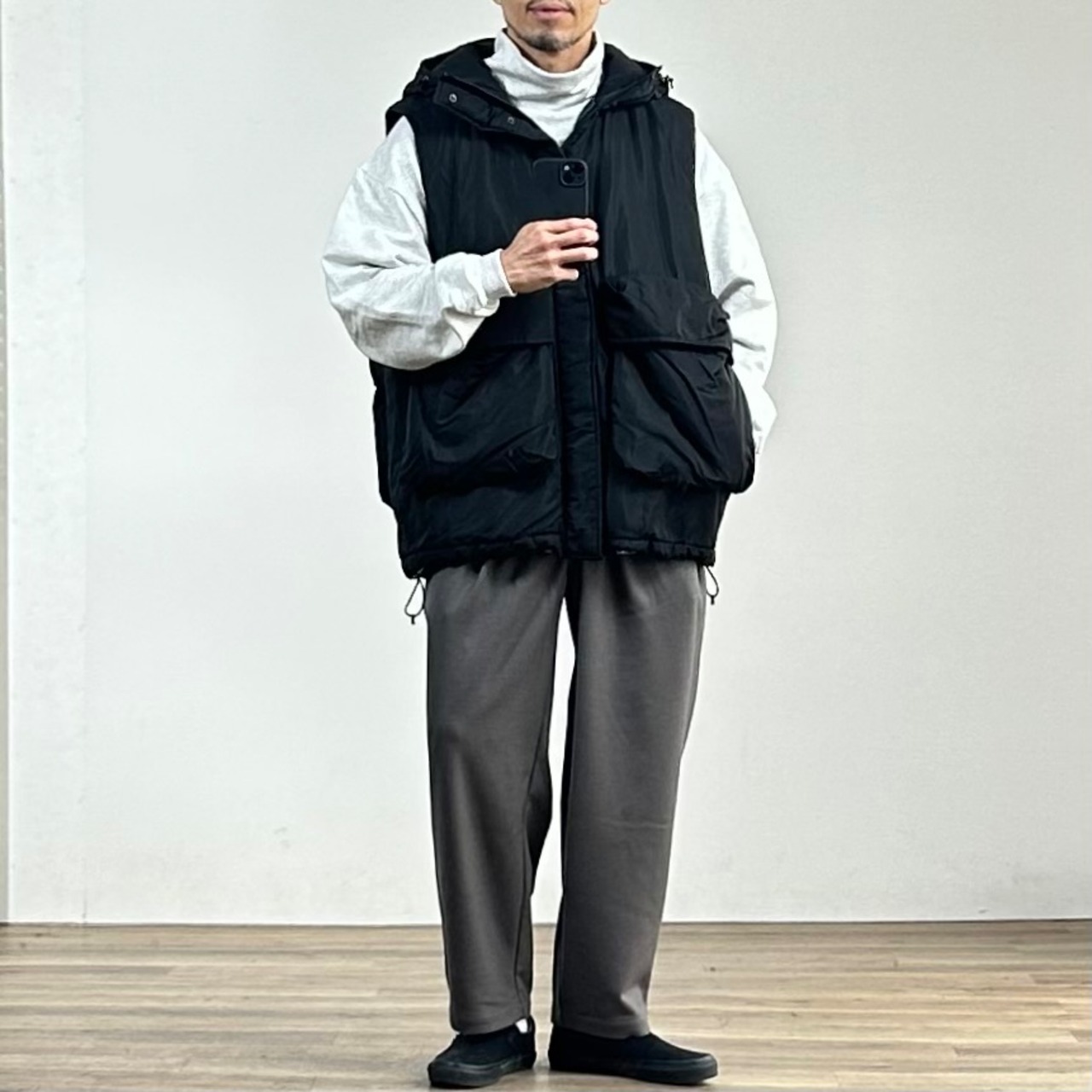 オーバーサイズのトップスとも好相性な大きめのアームホールに加え、裾のドローコードでシルエット調整が可能なため、スタイリングの表情を自在に変えられます。