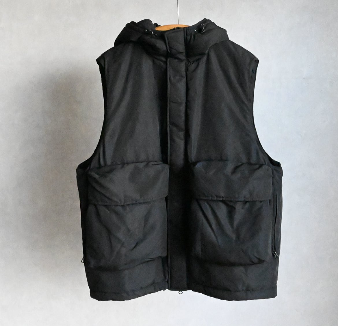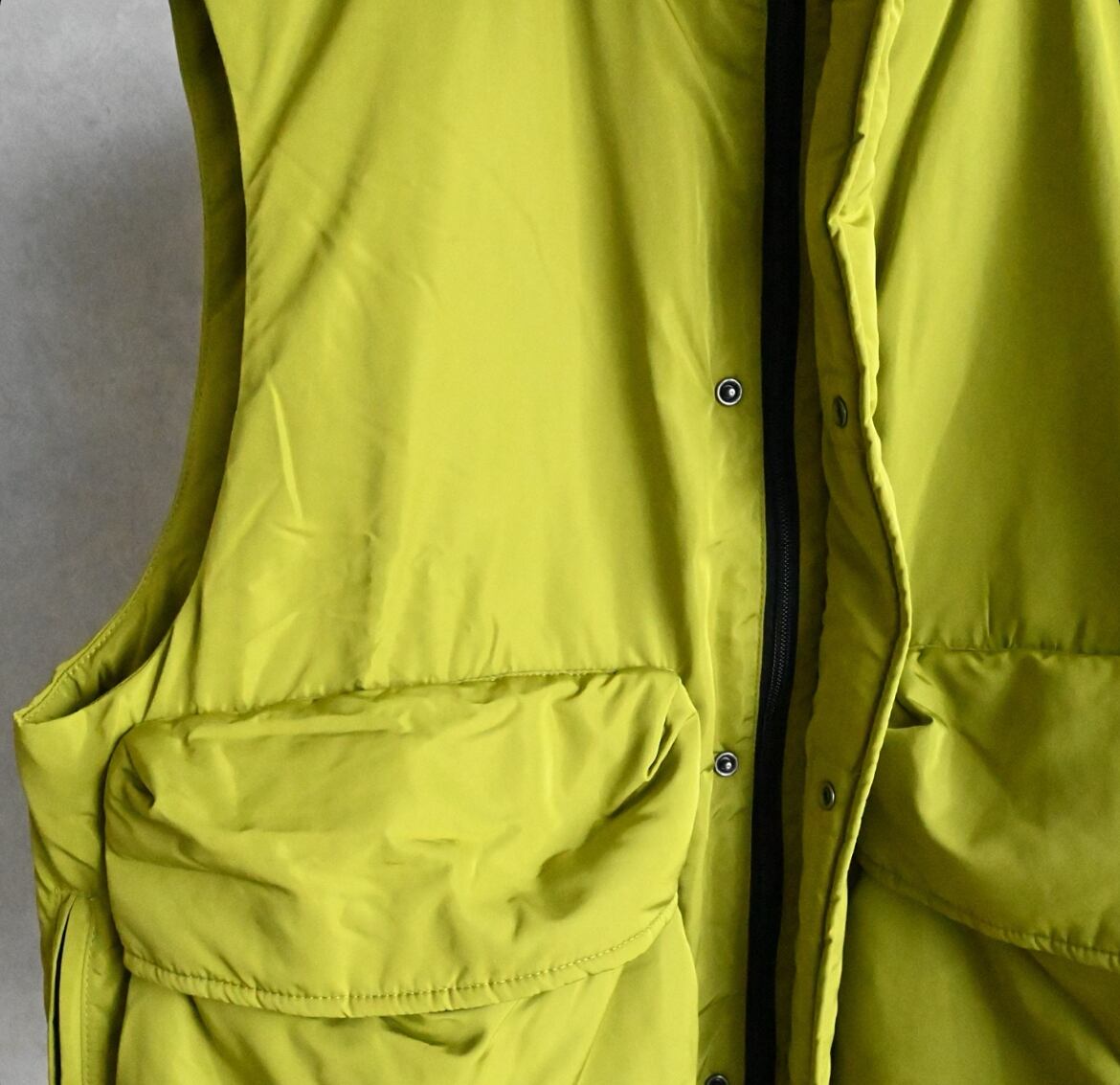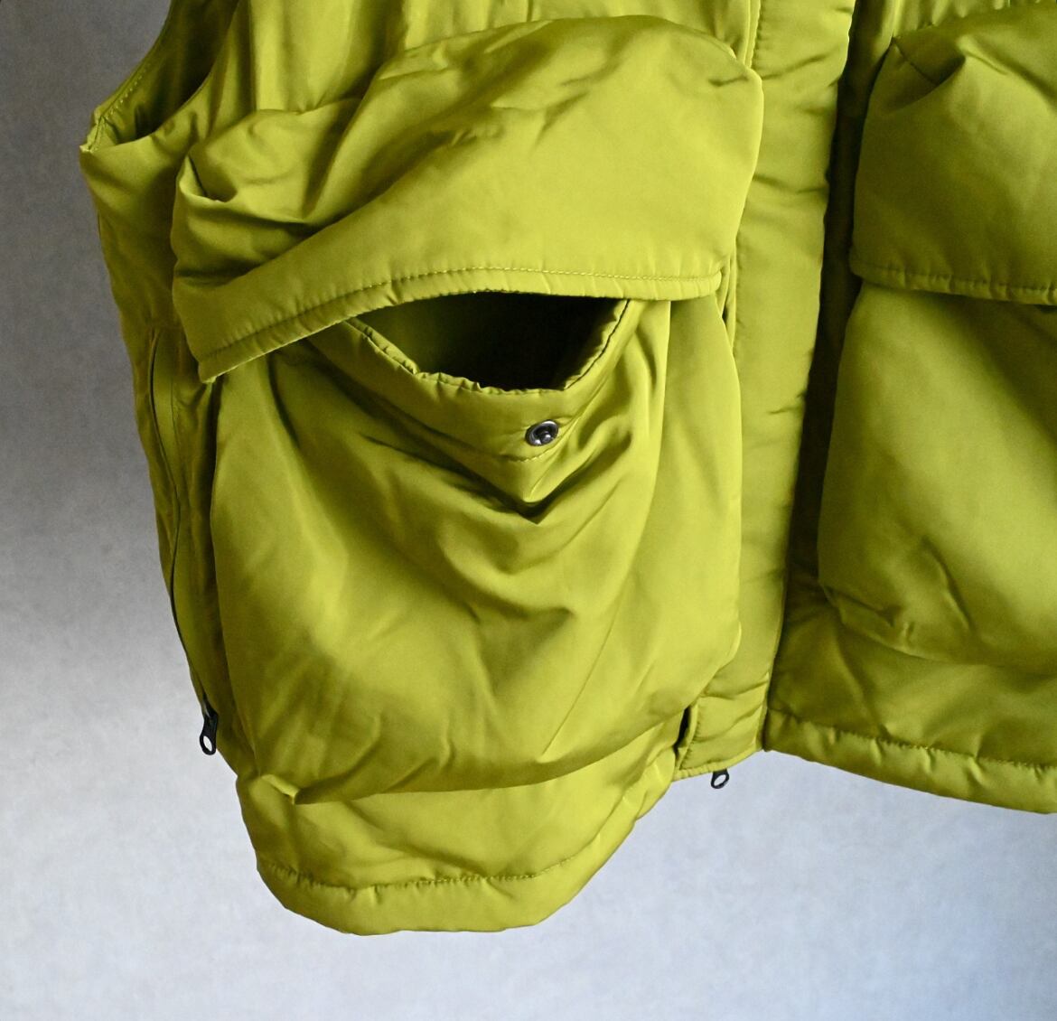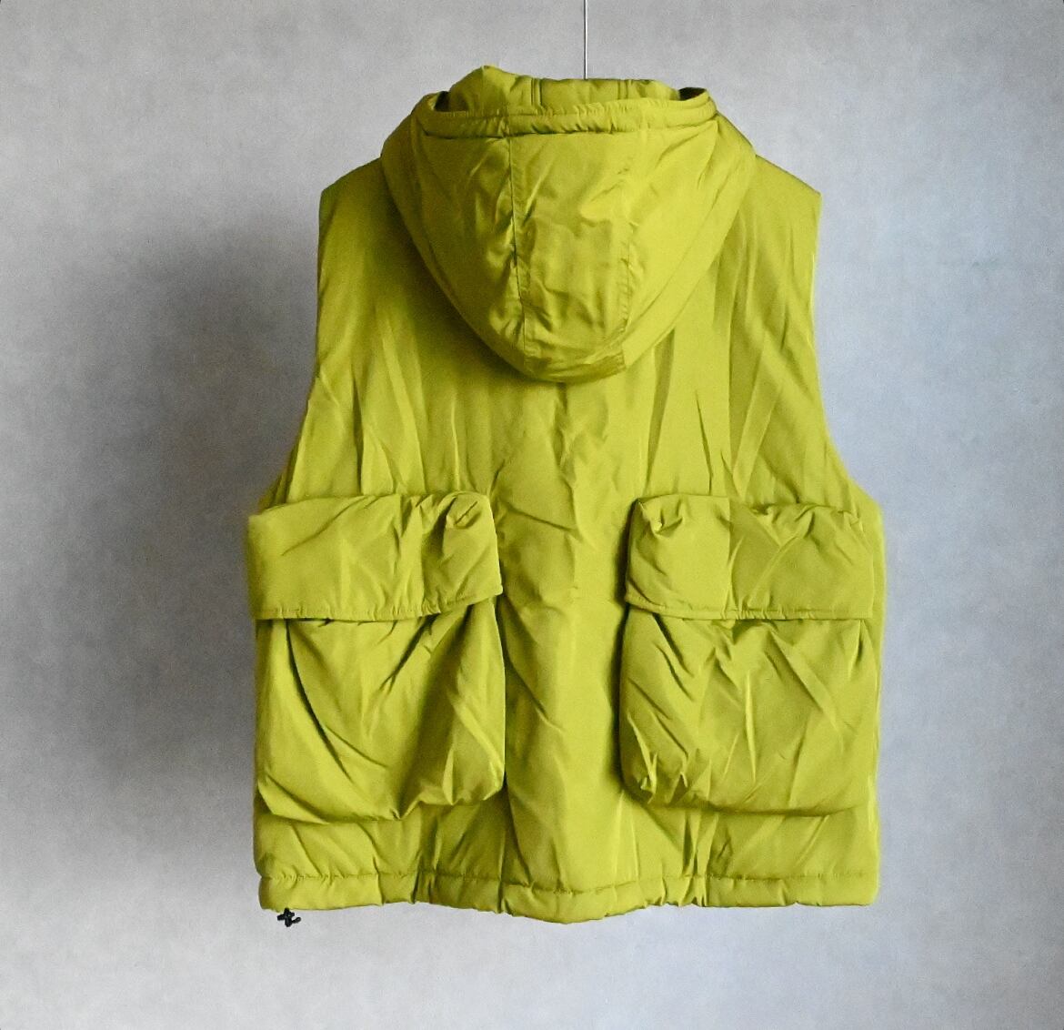 ボリューム感のある構築的なパフベスト。キャッチーな配色でスタイリングのポイントになるアイテムです。フロントとバックにつけたビッグポケットはデザインと収納を兼ね備えた嬉しいポイント。オーバーサイズのトップスを合わせやすい大きなアームホールと、スタイリングイメージを変える裾のドローコードがスタイリングの幅を広げてくれるベストです。