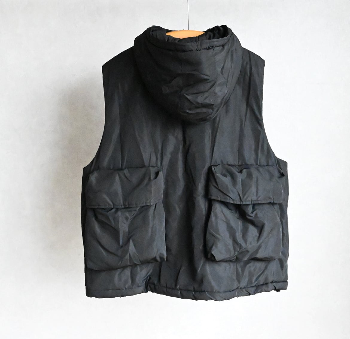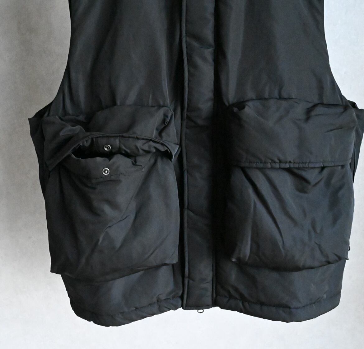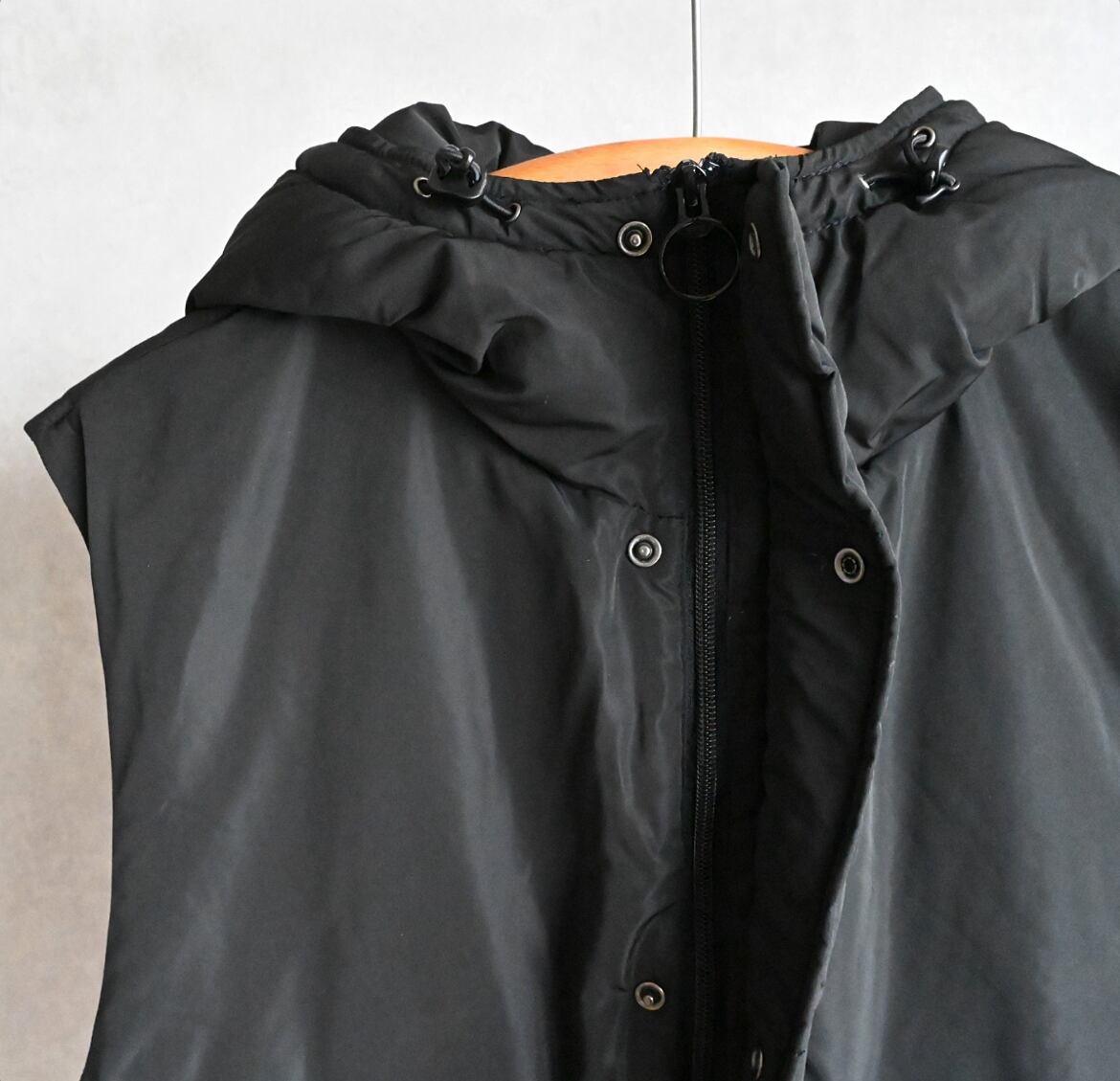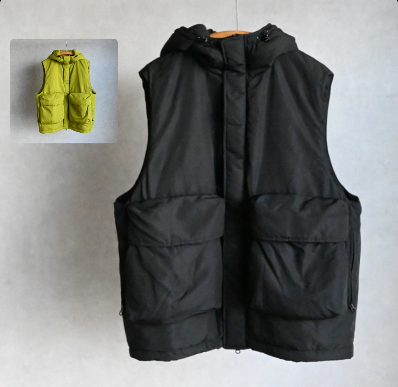 ボリューム感のある構築的なパフベスト。キャッチーな配色でスタイリングのポイントになるアイテムです。フロントとバックにつけたビッグポケットはデザインと収納を兼ね備えた嬉しいポイント。オーバーサイズのトップスを合わせやすい大きなアームホールと、スタイリングイメージを変える裾のドローコードがスタイリングの幅を広げてくれるベストです。