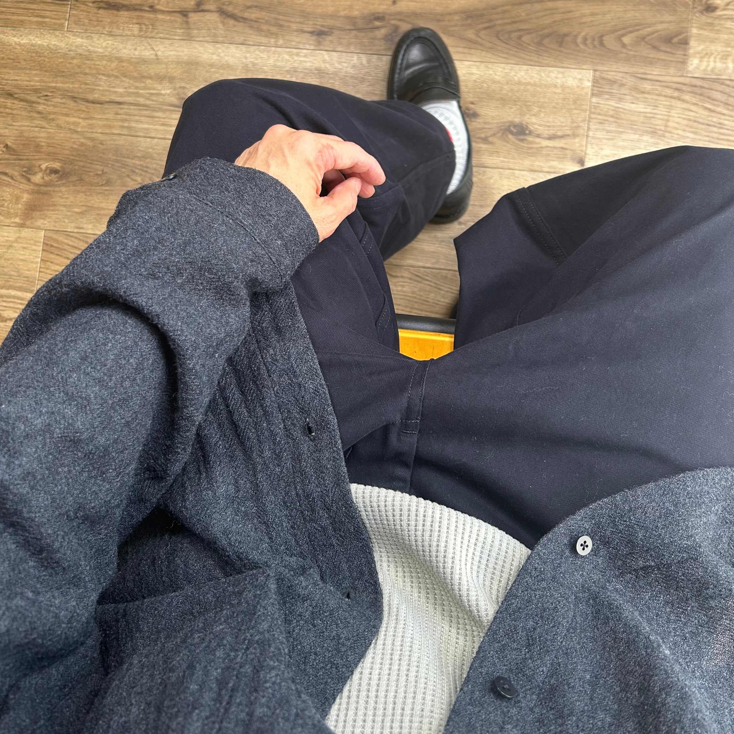 生地は比較的薄手でとても軽快。動いているうちにウール特有の熱がじんわり生まれるため、これ一枚で着ても、上にミドルレイヤーやアウターを重ねても快適。厚手ではないウールシャツは、冬のワードローブで一番出番が多くなるタイプかも?