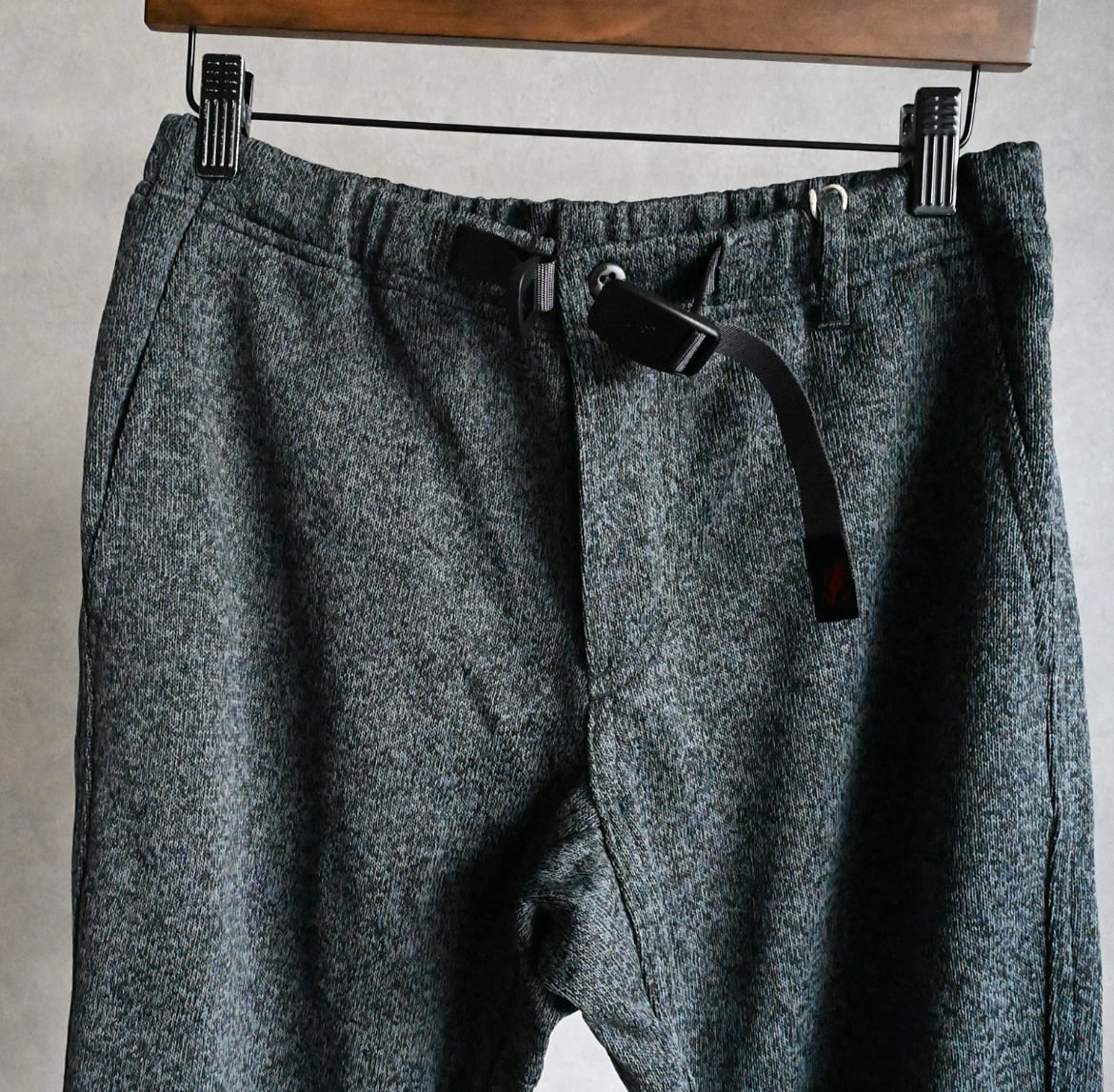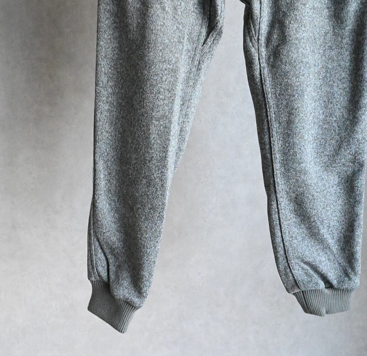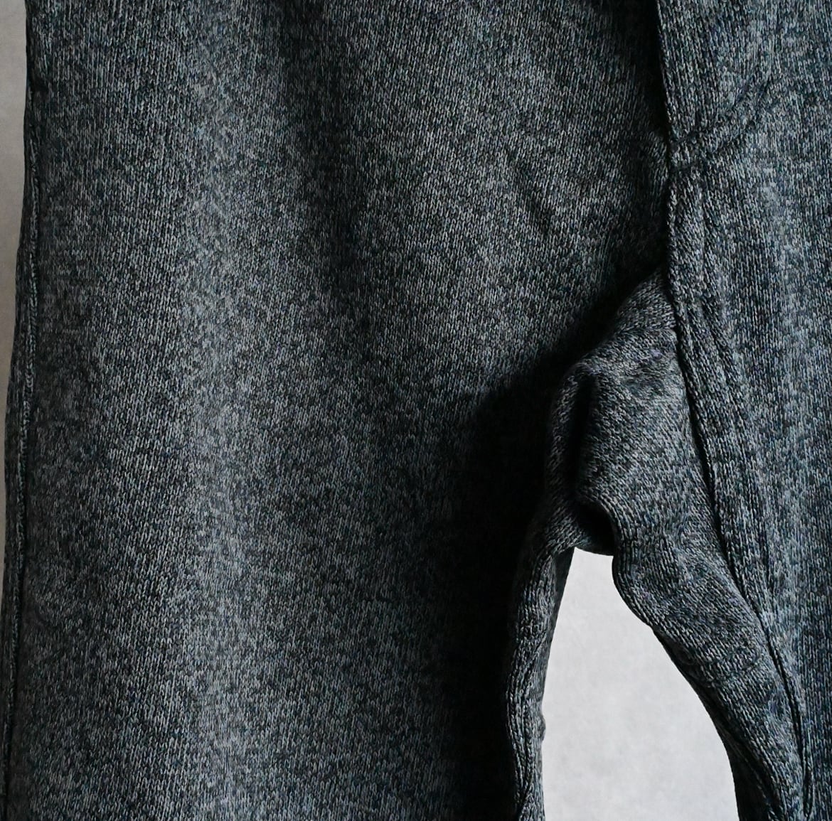 秋冬定番素材である、表面がニットのように見えるニットフリースは、伸縮性がありストレスなく着用いただけます。裏面にはマイクロフリースを貼り付け風を通しにくく保温性にも優れています。裾にかけて徐々に細くなリ裾口はリブ仕様になった細身のテーパードシルエットが特徴です。