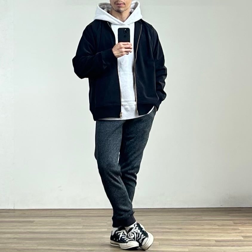 ワイドパンツが主軸の当店だからこそ、あえてこの“細さ”。ボリュームのあるアウターやニットと合わせたとき、スタイリングに自然なメリハリが生まれ、冬の装いを引き締めてくれる一本です。