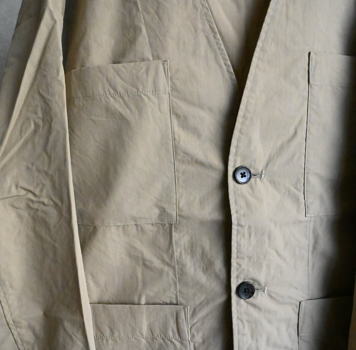 素材はタテ糸にコットン、ヨコ糸にナイロンを使い交織したウェザークロスで、コットンのナチュラルなタッチとナイロンの適度なハリ感を併せ持った素材です。